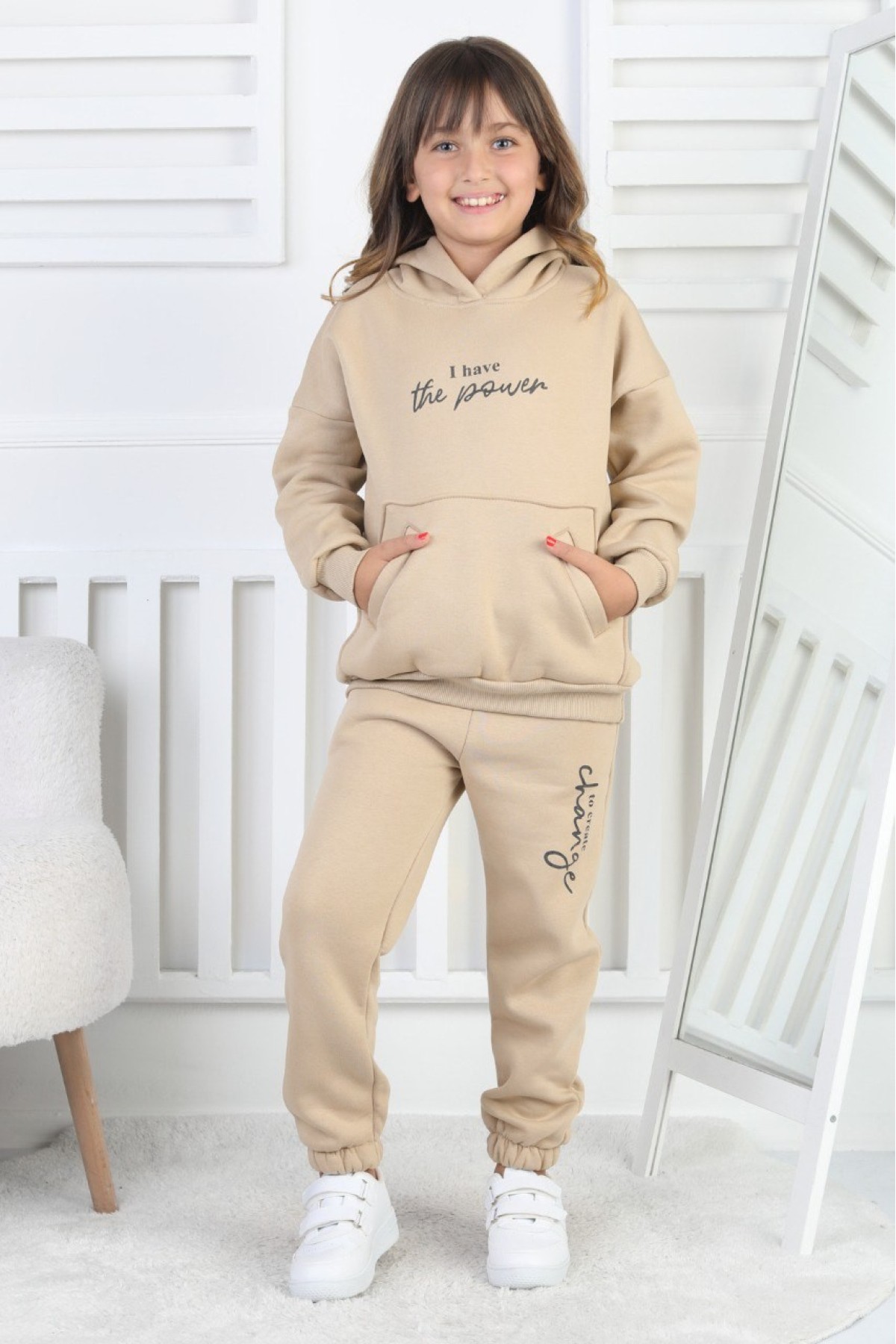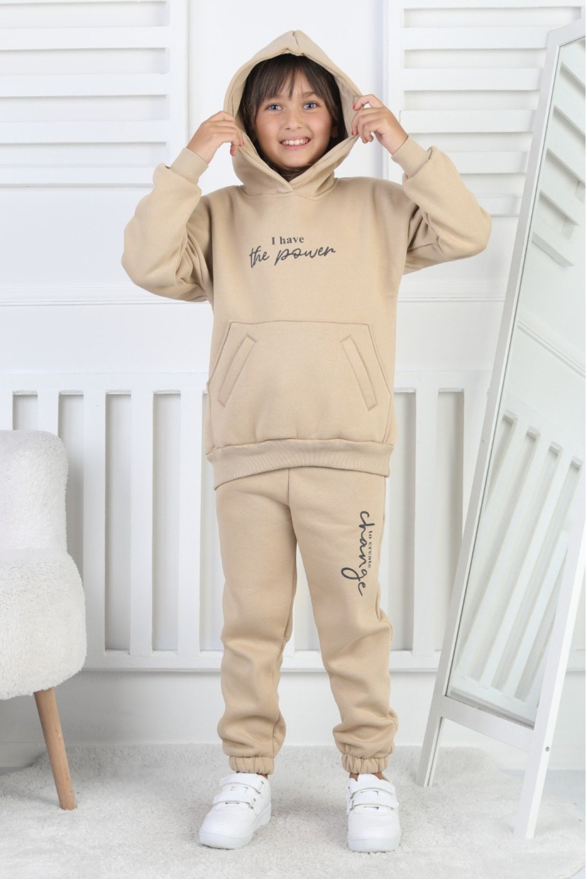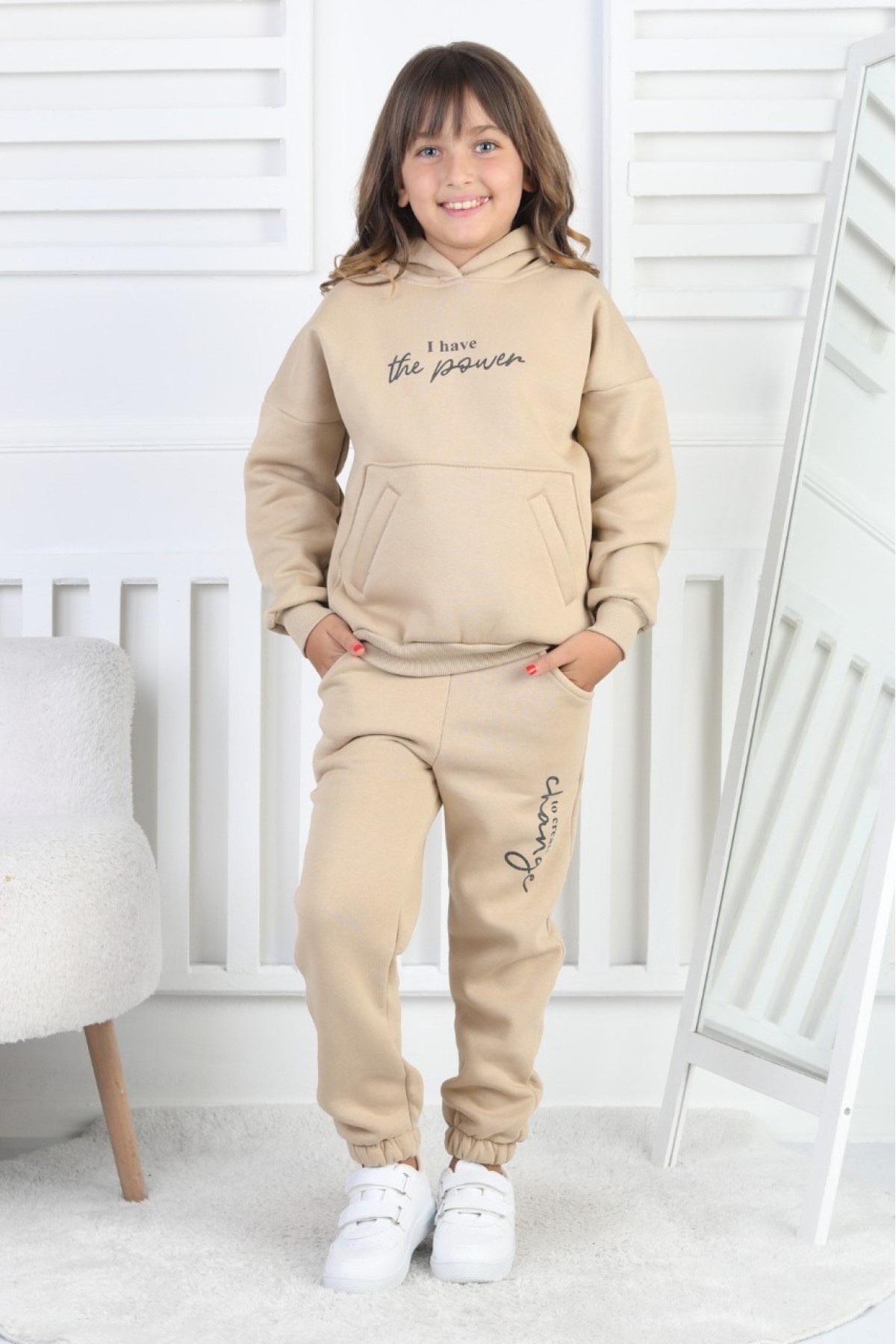 Şardonlu 3 İplik Baskılı Kız Çocuk Takım