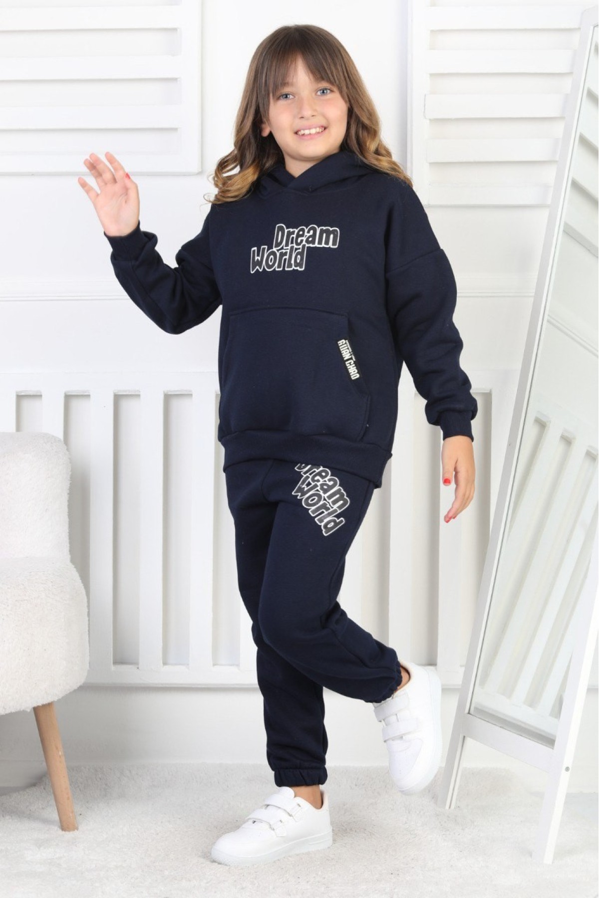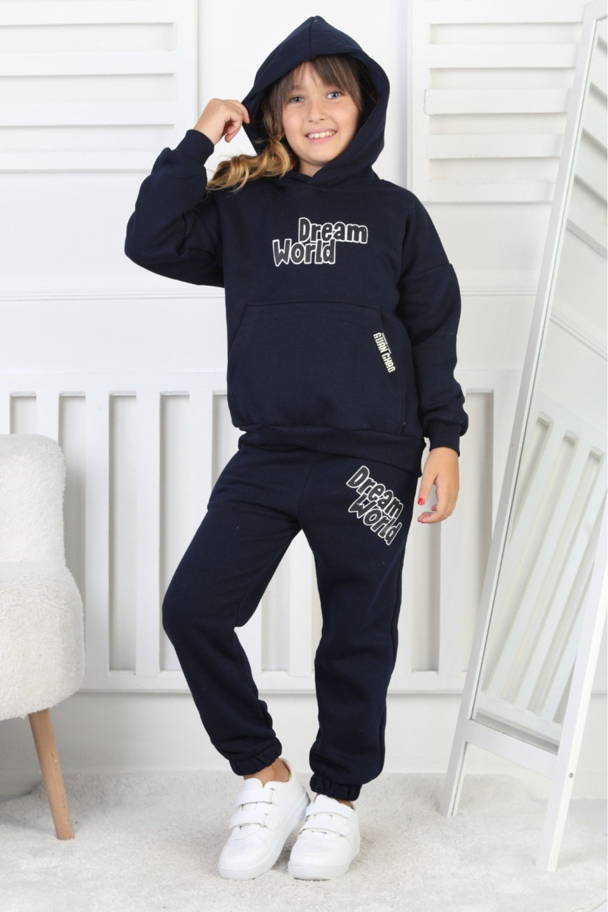 Şardonlu 3 İplik Baskılı Kapşonlu Kız Çocuk Takım
