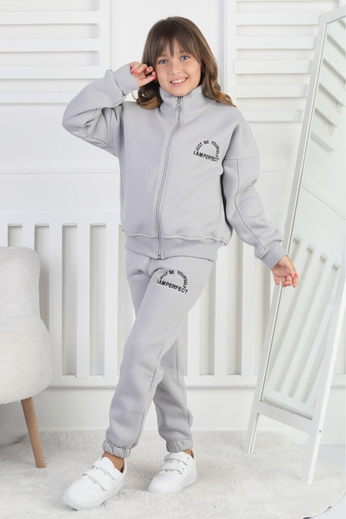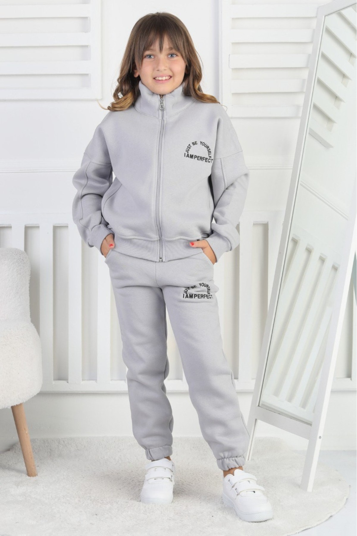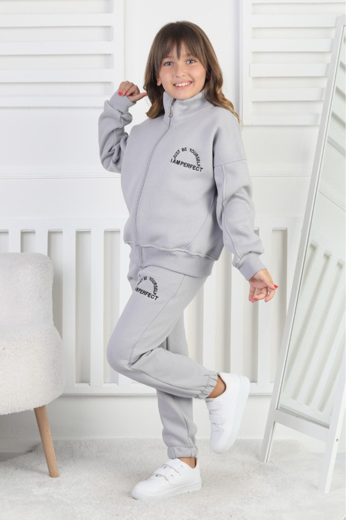 Üç İplik Fermuarlı Baskılı Kız Çocuk Takım