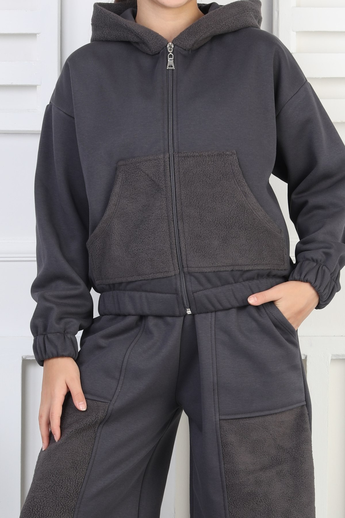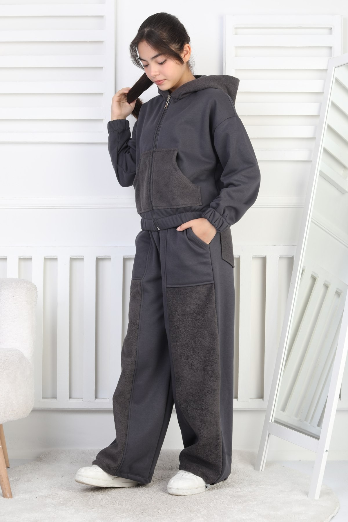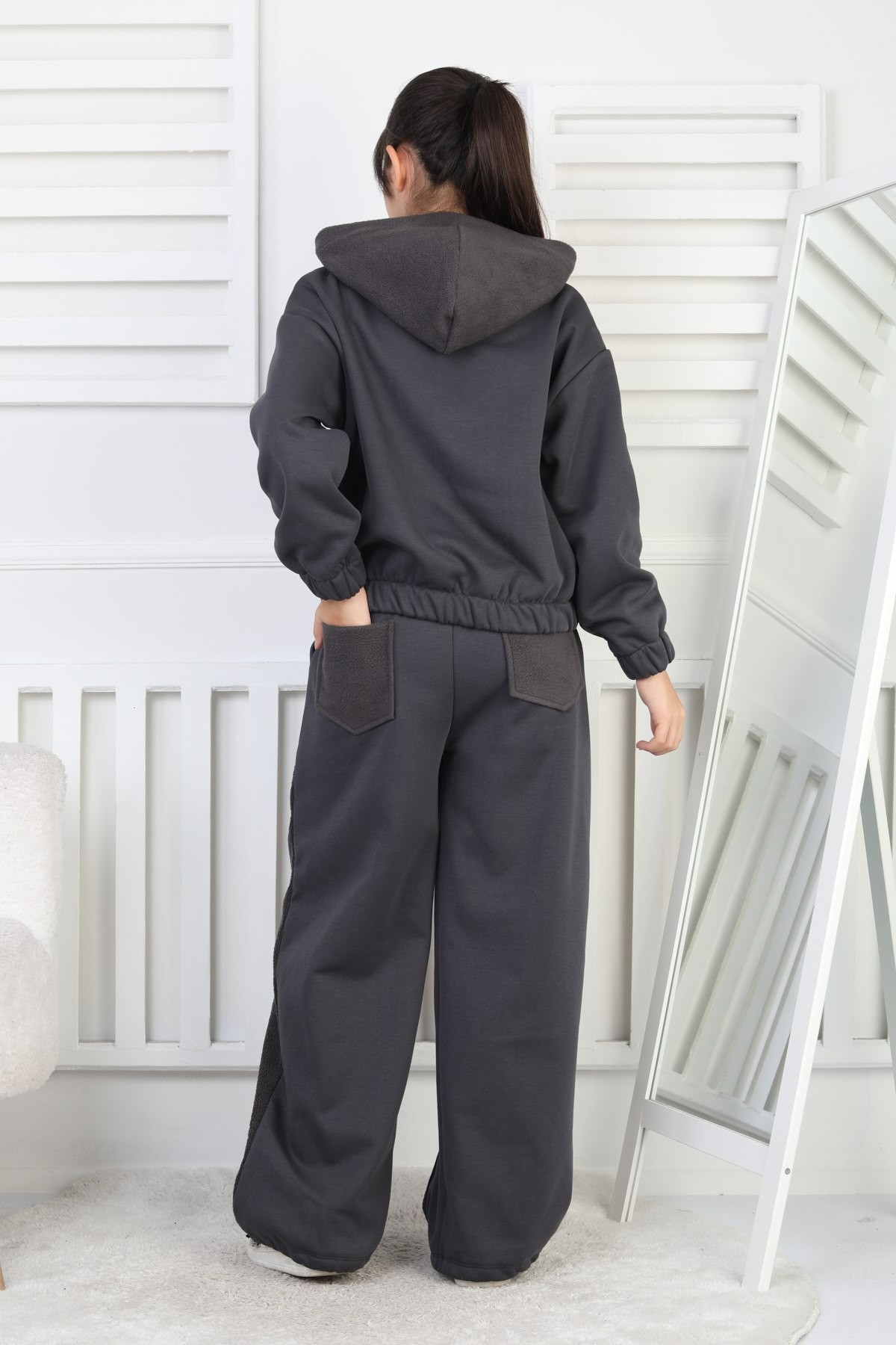 Üç İplik Şardonlu Kapüşonlu Kız Çocuk Takım