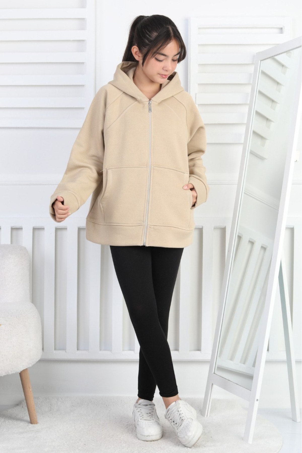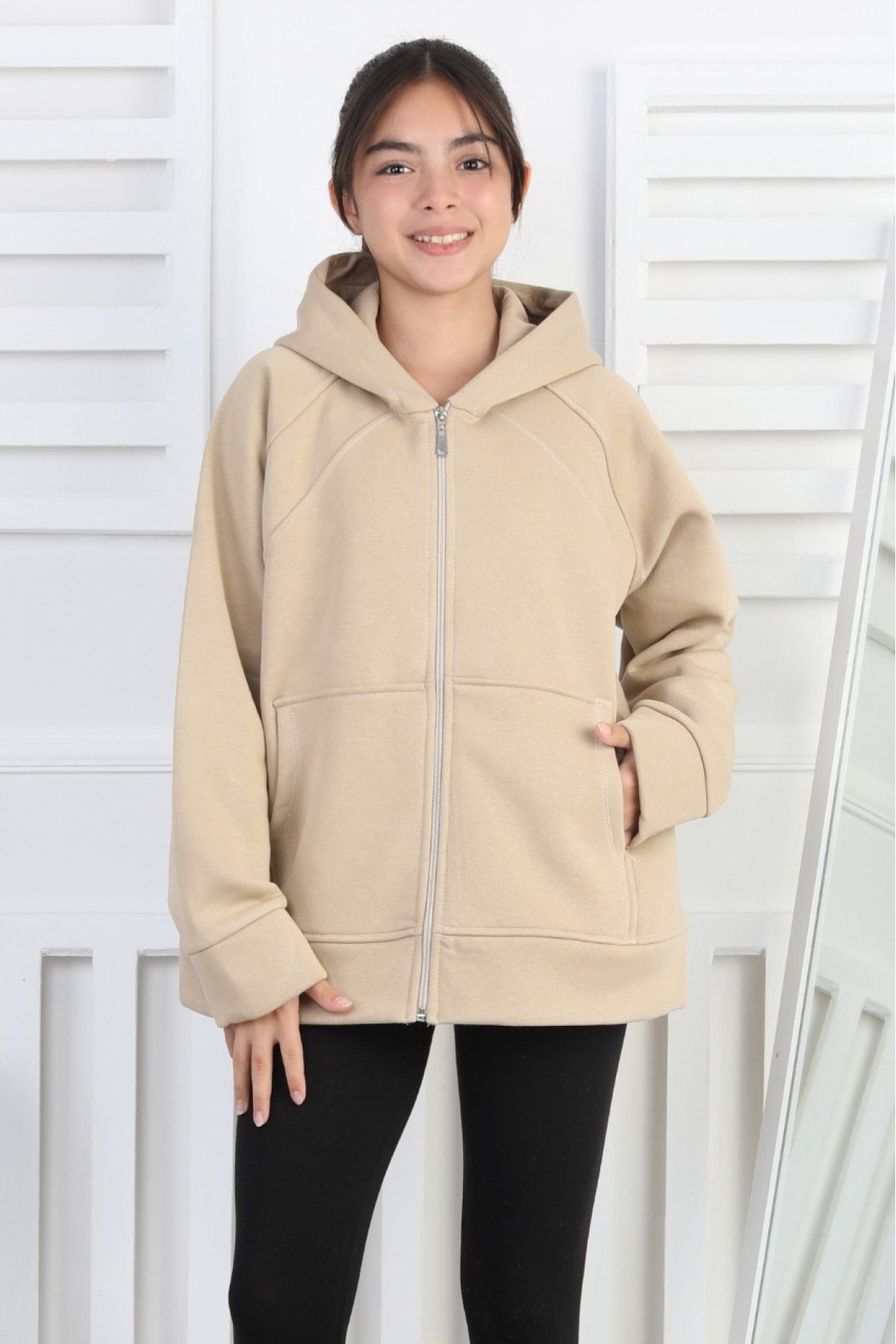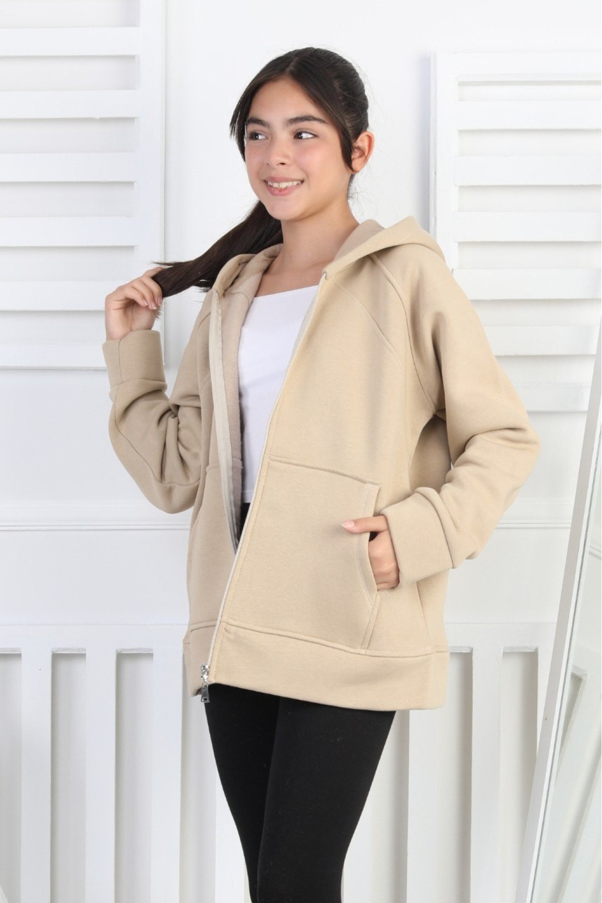 Üç İplik Şardonlu Kapşonlu Kız Çocuk Sweatshirt