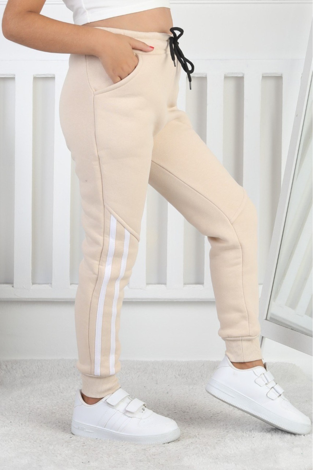 Üç İplik Şardonlu Dar Paça Kız Çocuk Eşofman Altı