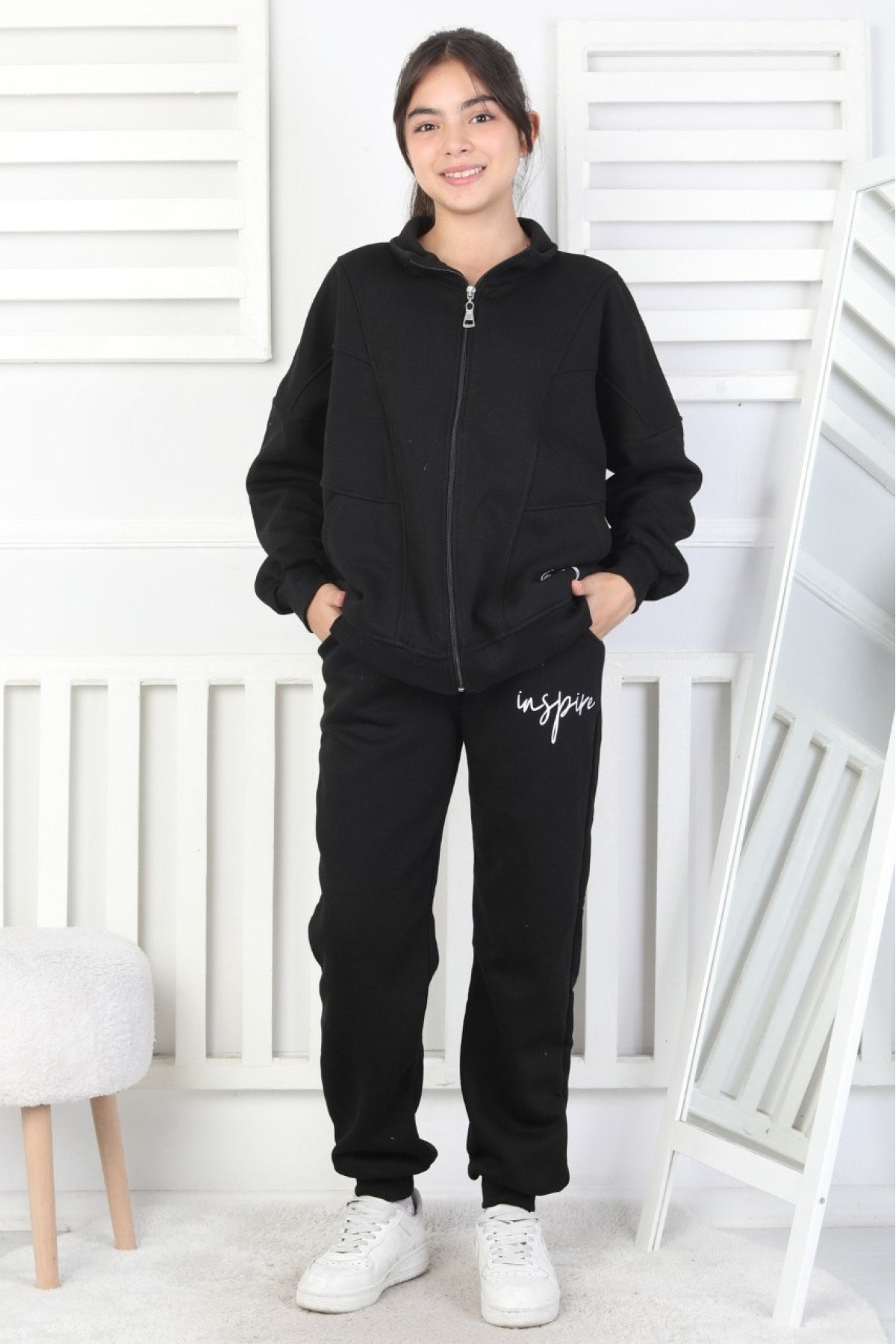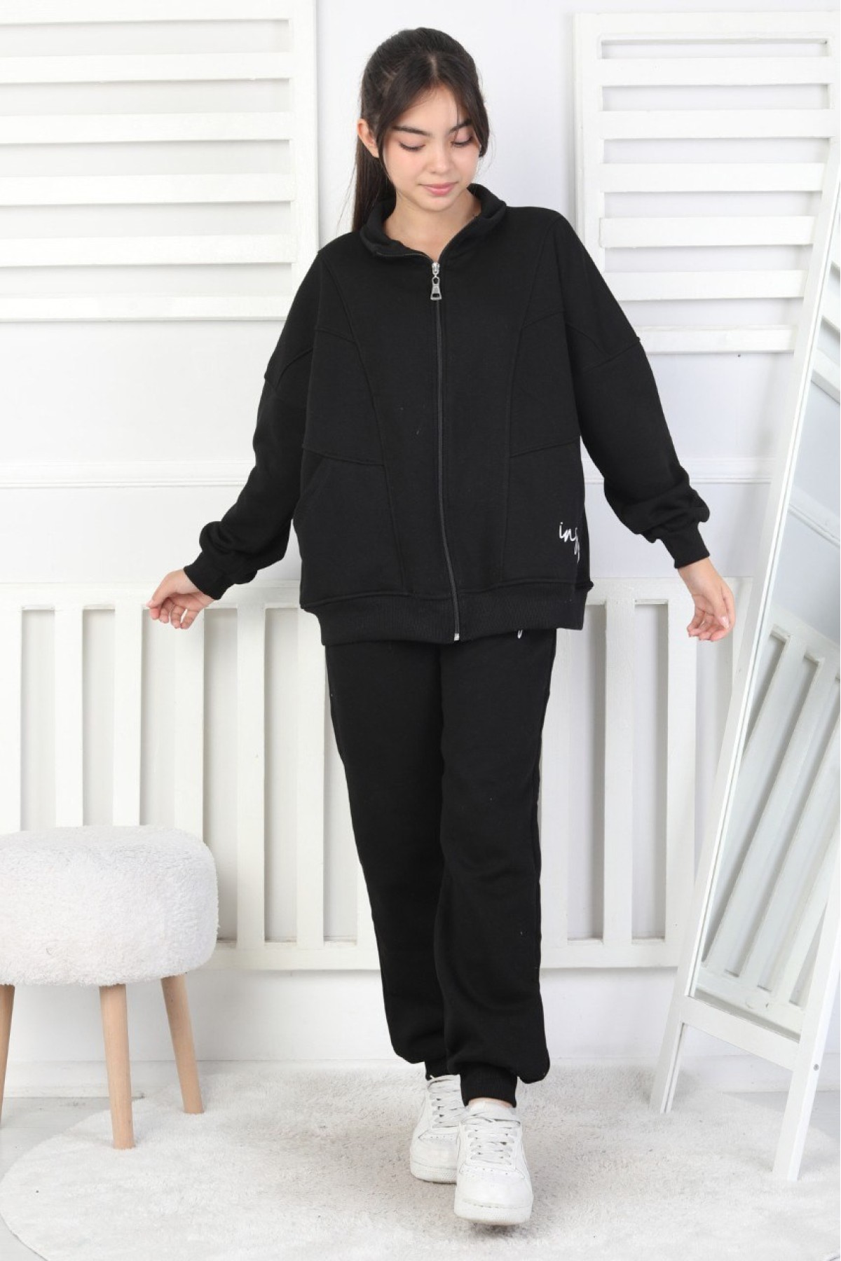 Üç İplik Fermuarlı Kız Çocuk Takım