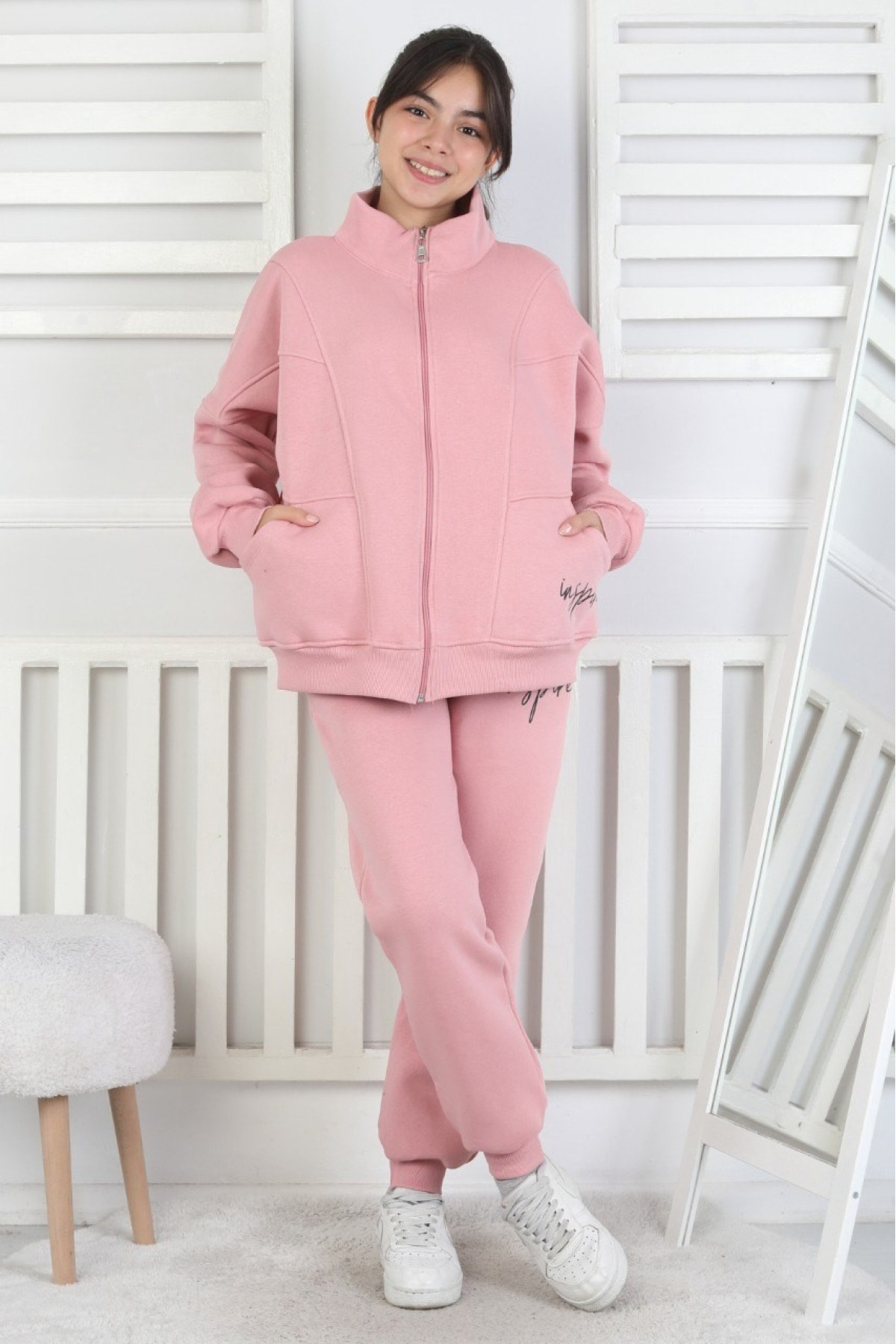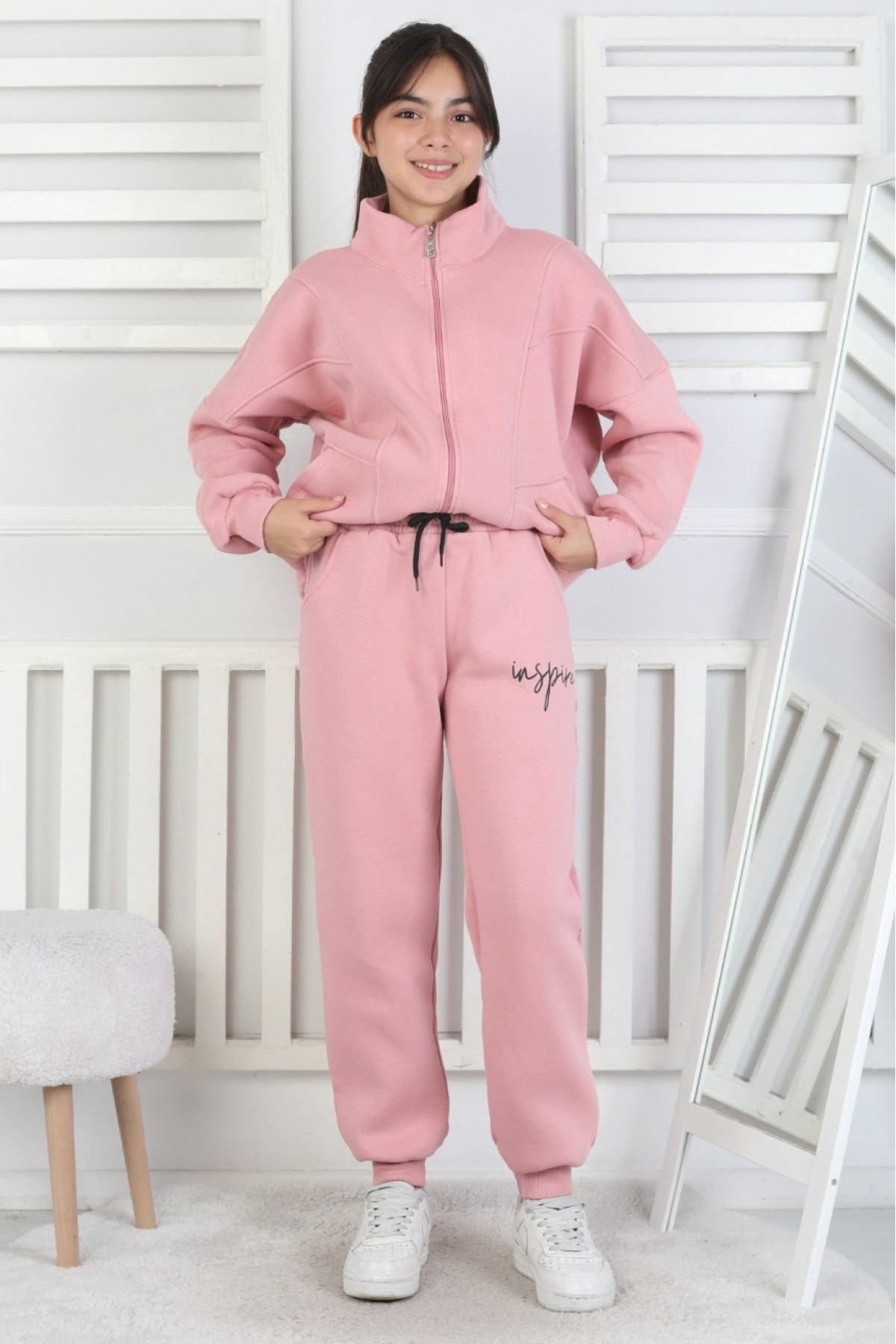 Üç İplik Fermuarlı Kız Çocuk Takım