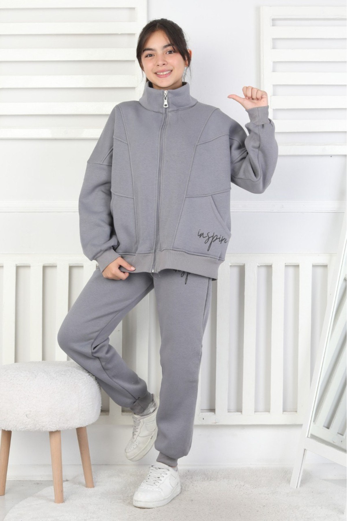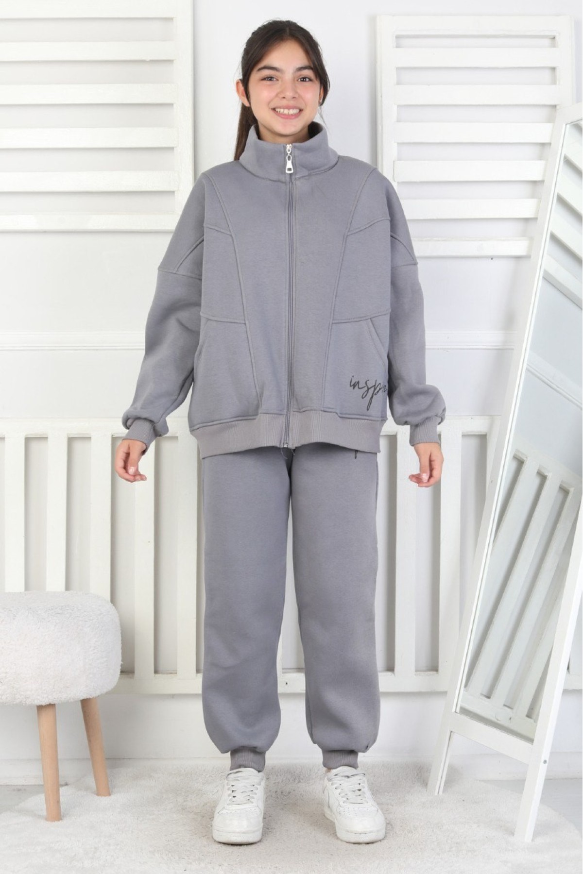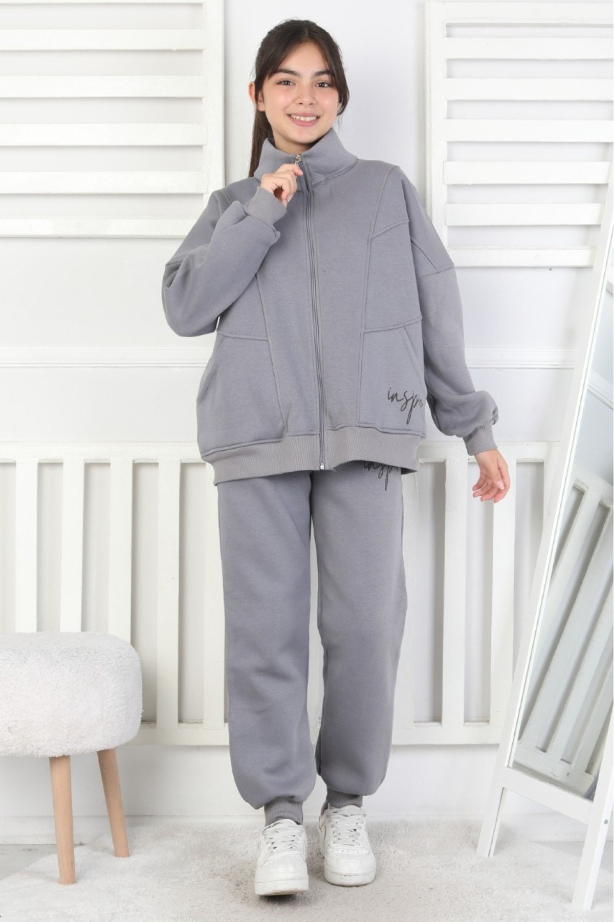 Üç İplik Fermuarlı Kız Çocuk Takım