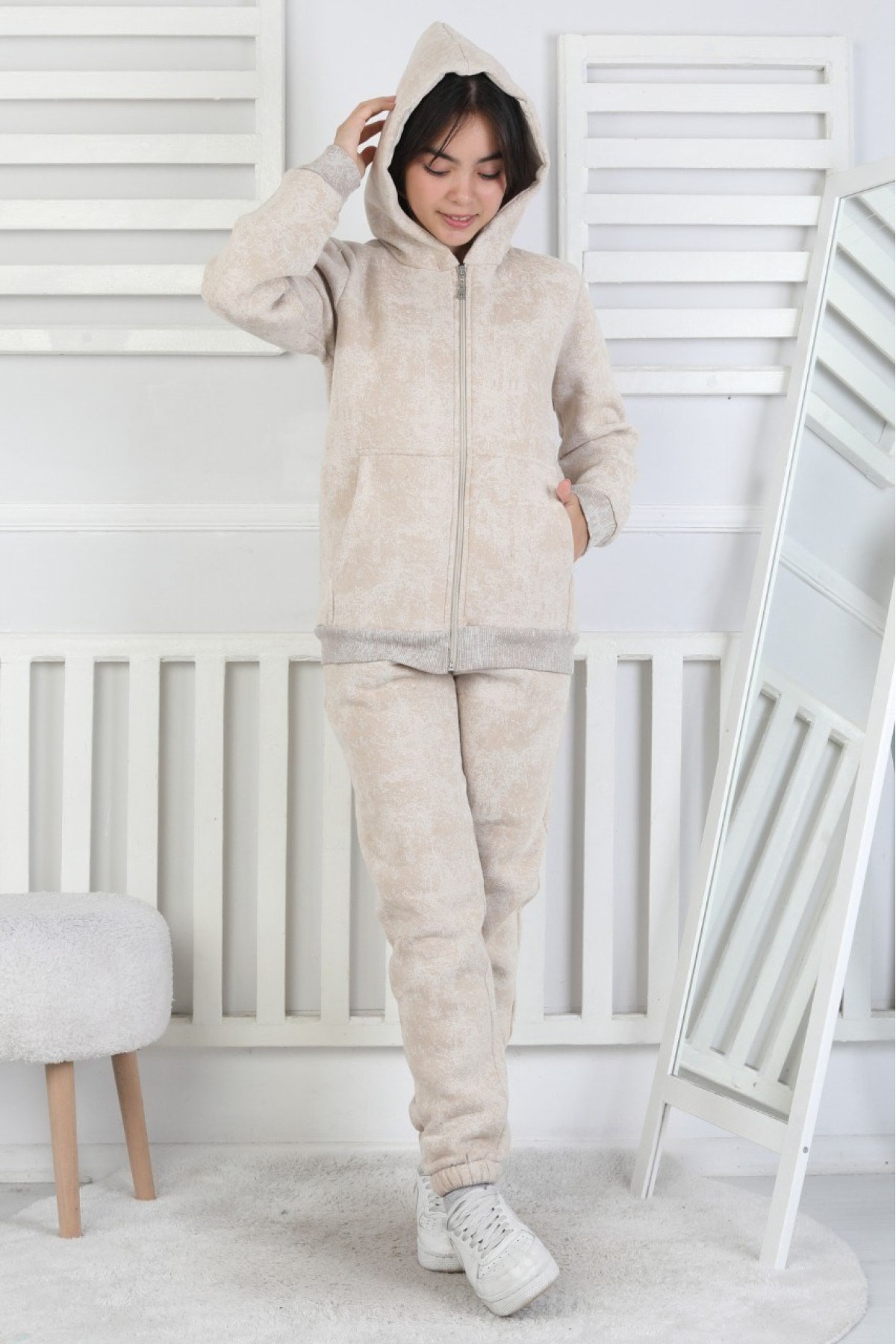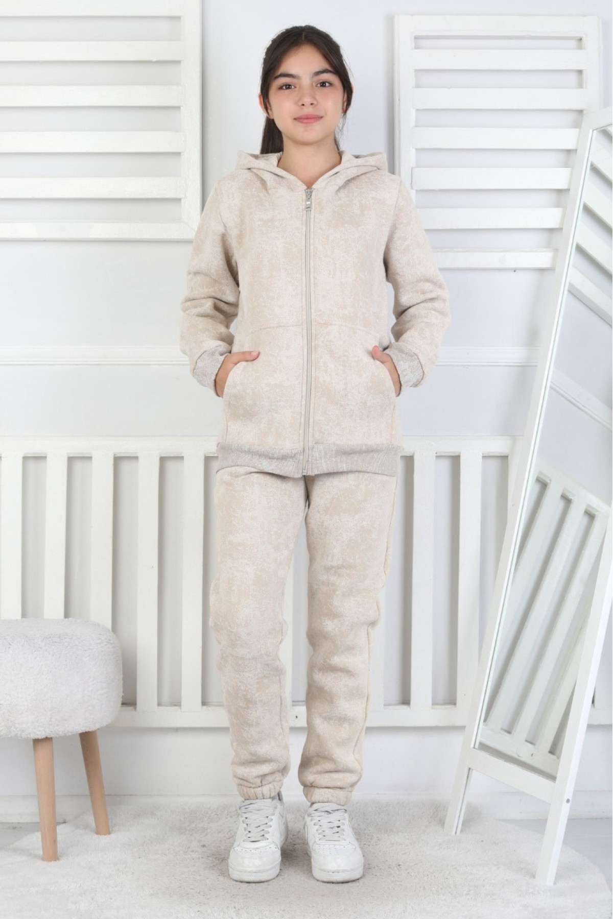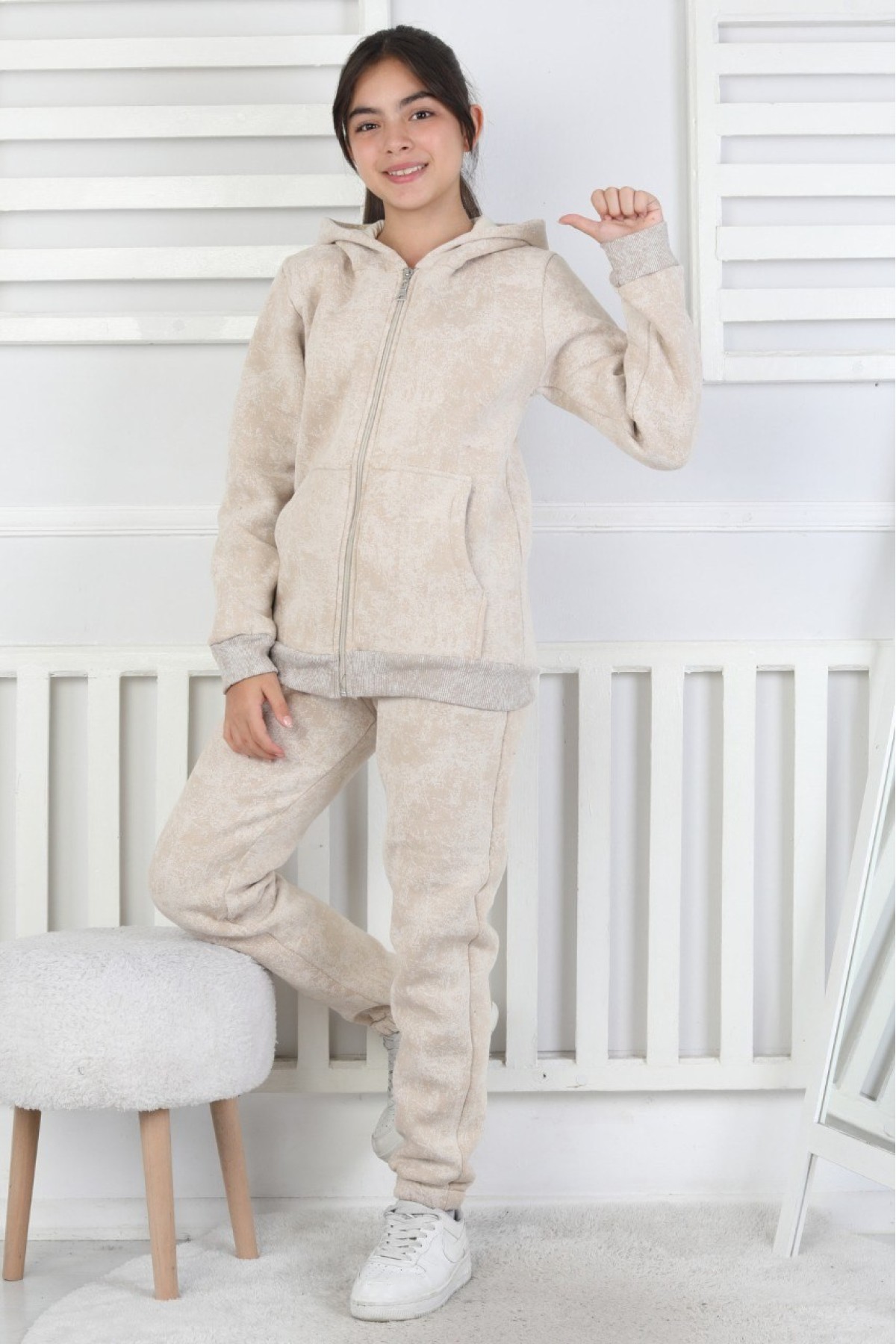 Üç İplik Fermuarlı Kapüşonlu Kız Çocuk Takım