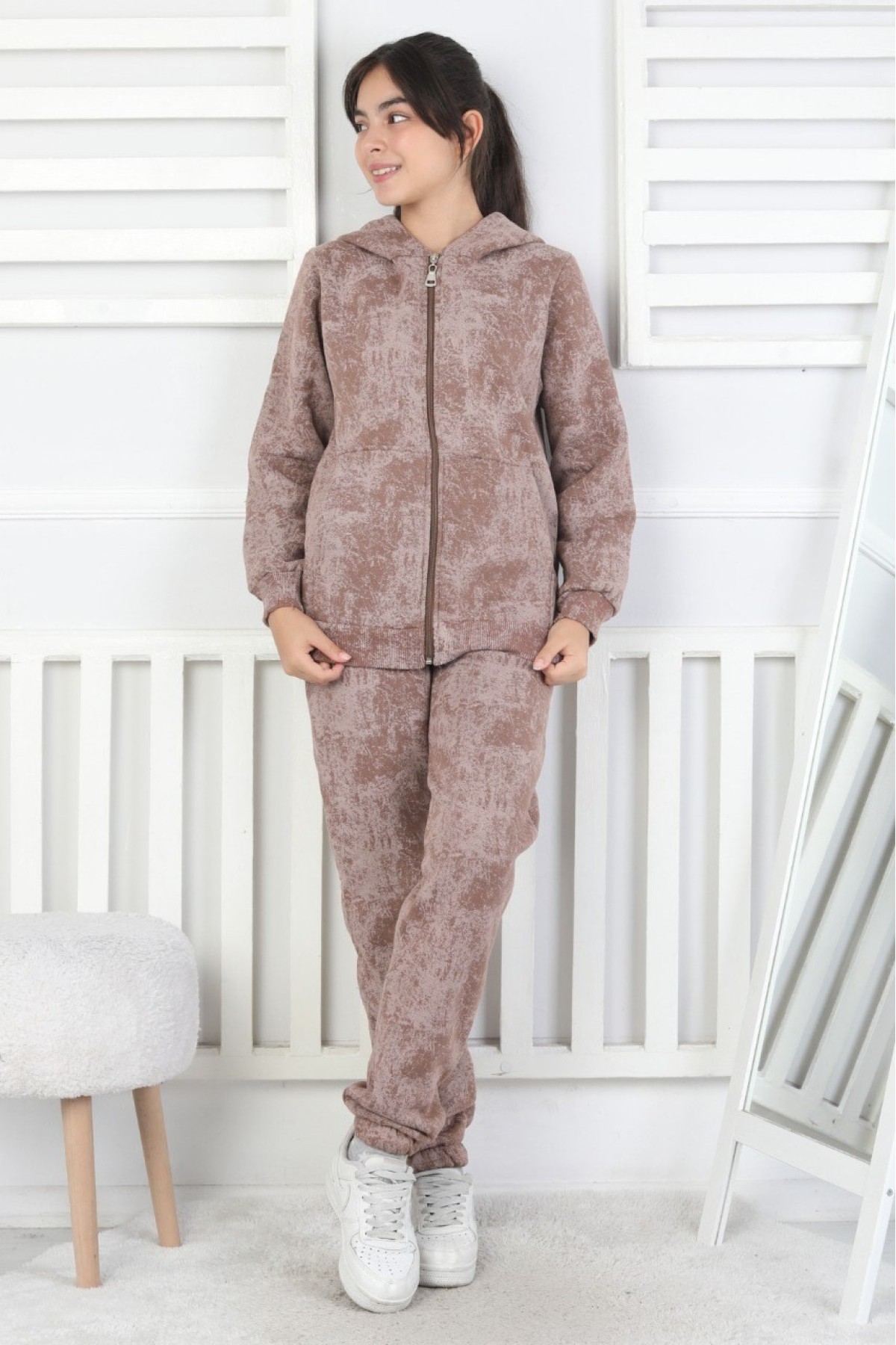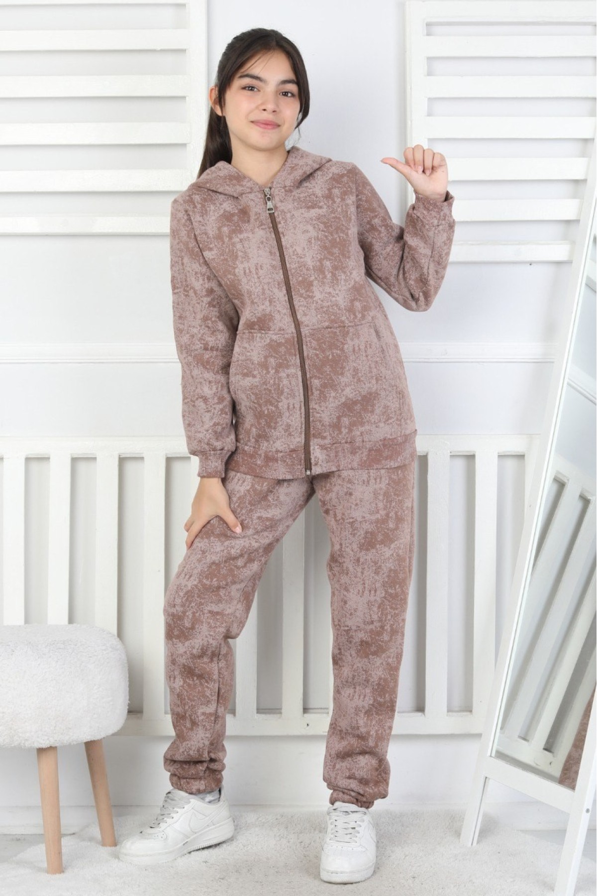 Üç İplik Fermuarlı Kapüşonlu Kız Çocuk Takım