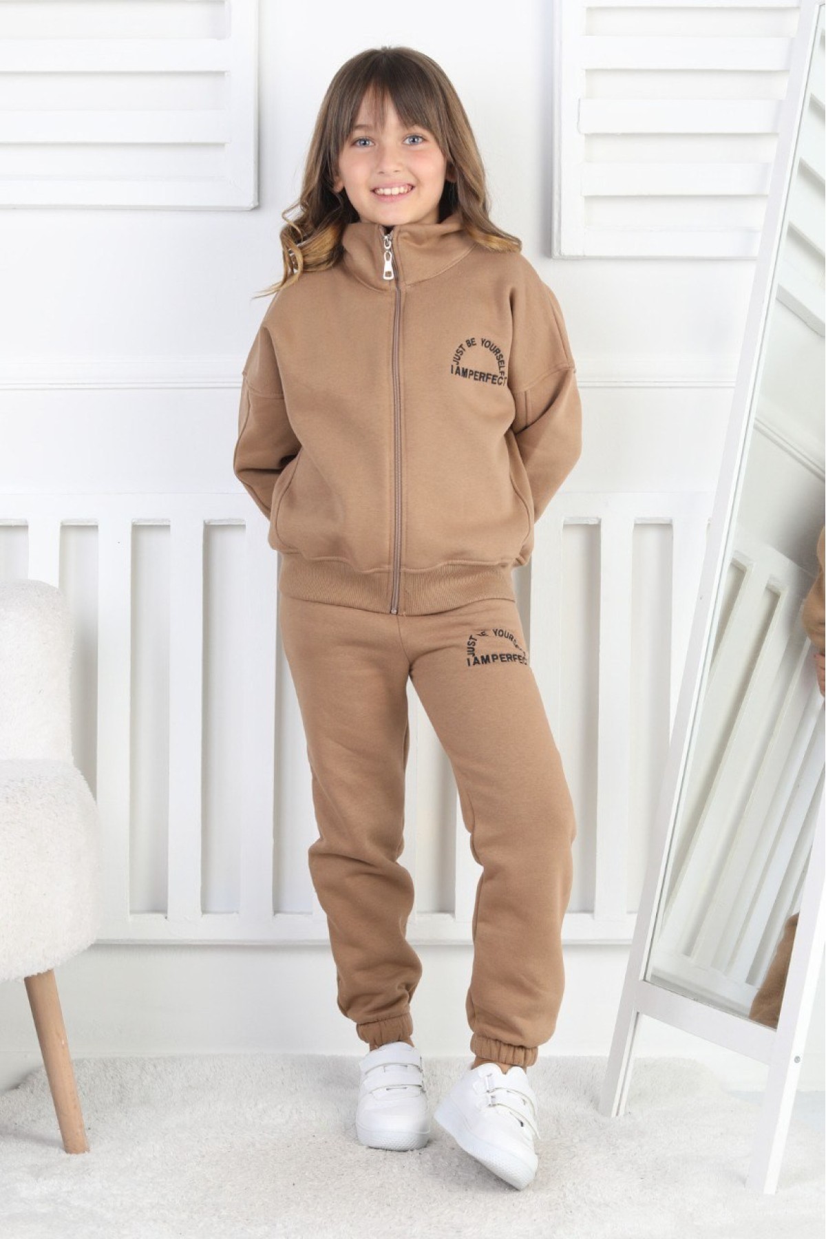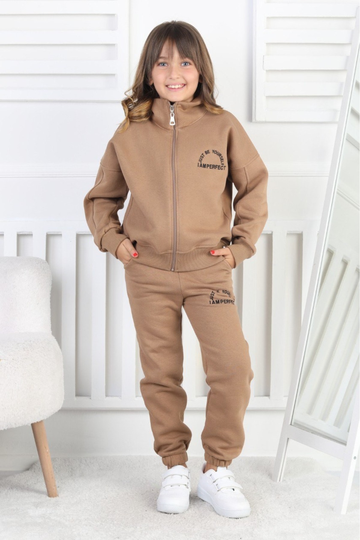 Üç İplik Fermuarlı Baskılı Kız Çocuk Takım
