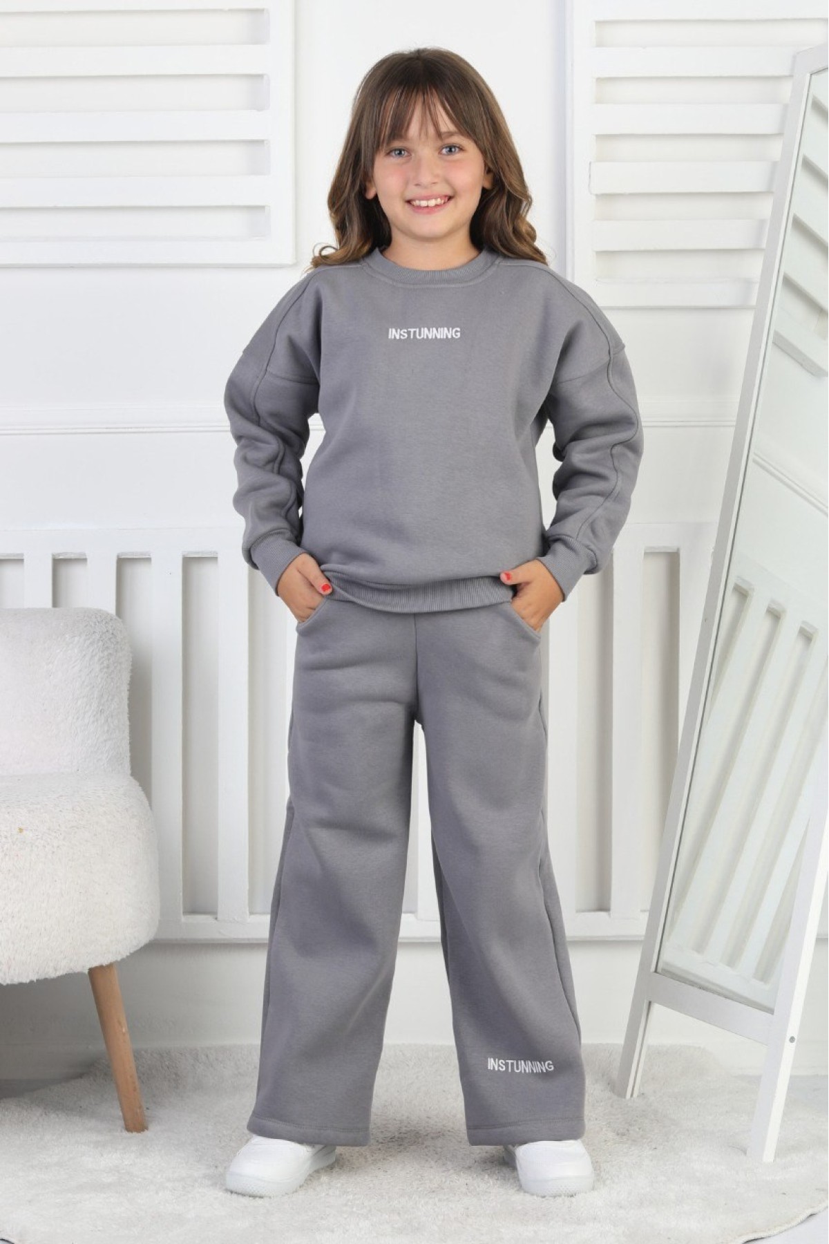 Üç İplik Baskılı Kız Çocuk Takım
