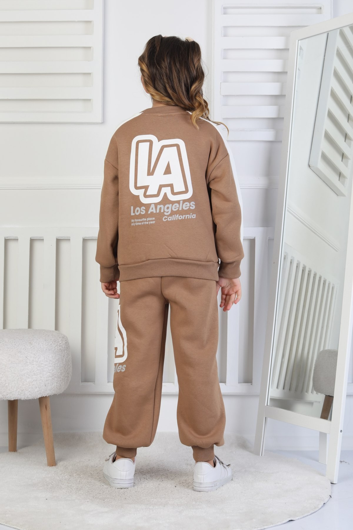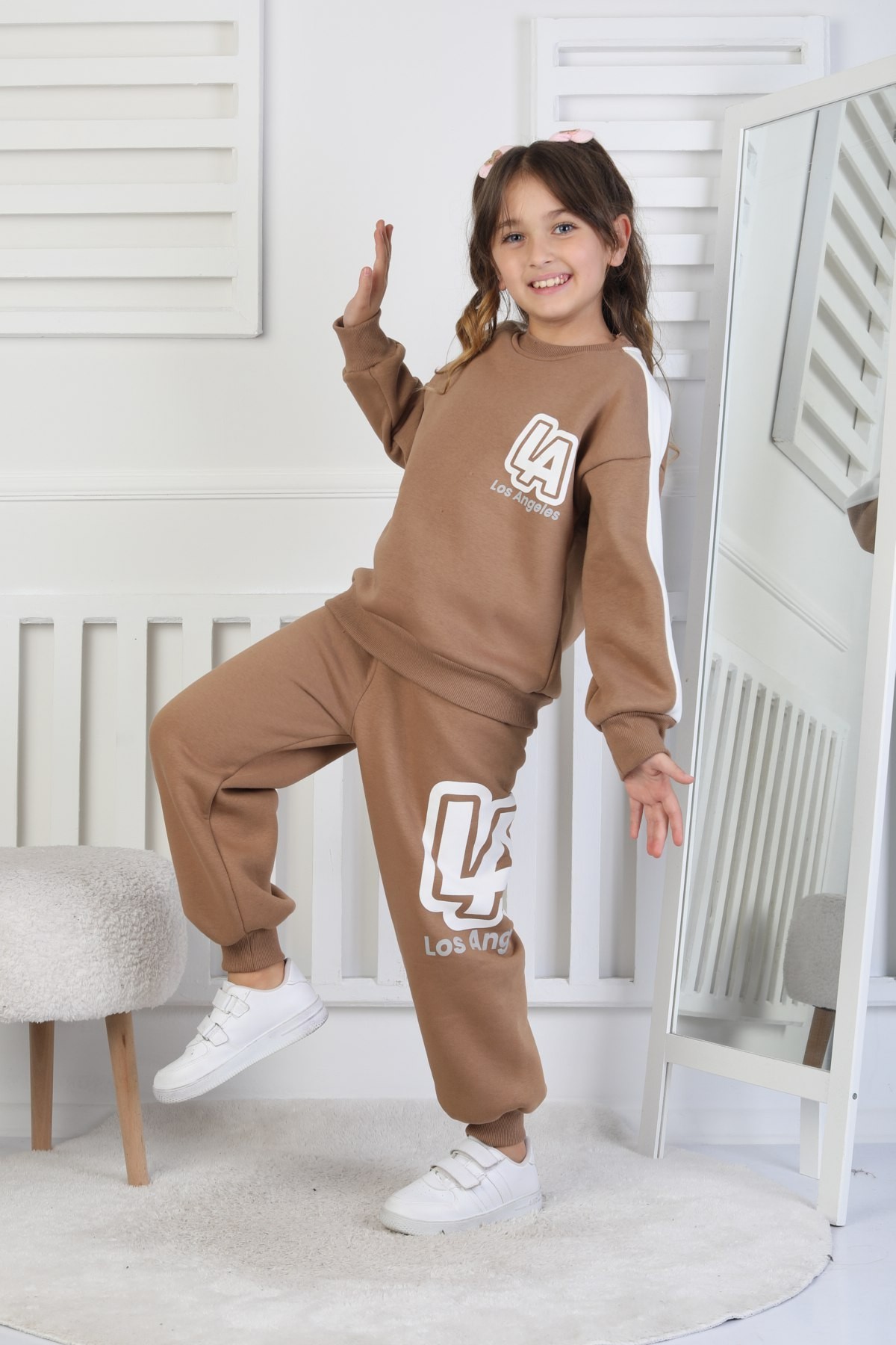 Üç İplik Şardonlu Arkası Baskılı Kız Çocuk Takım