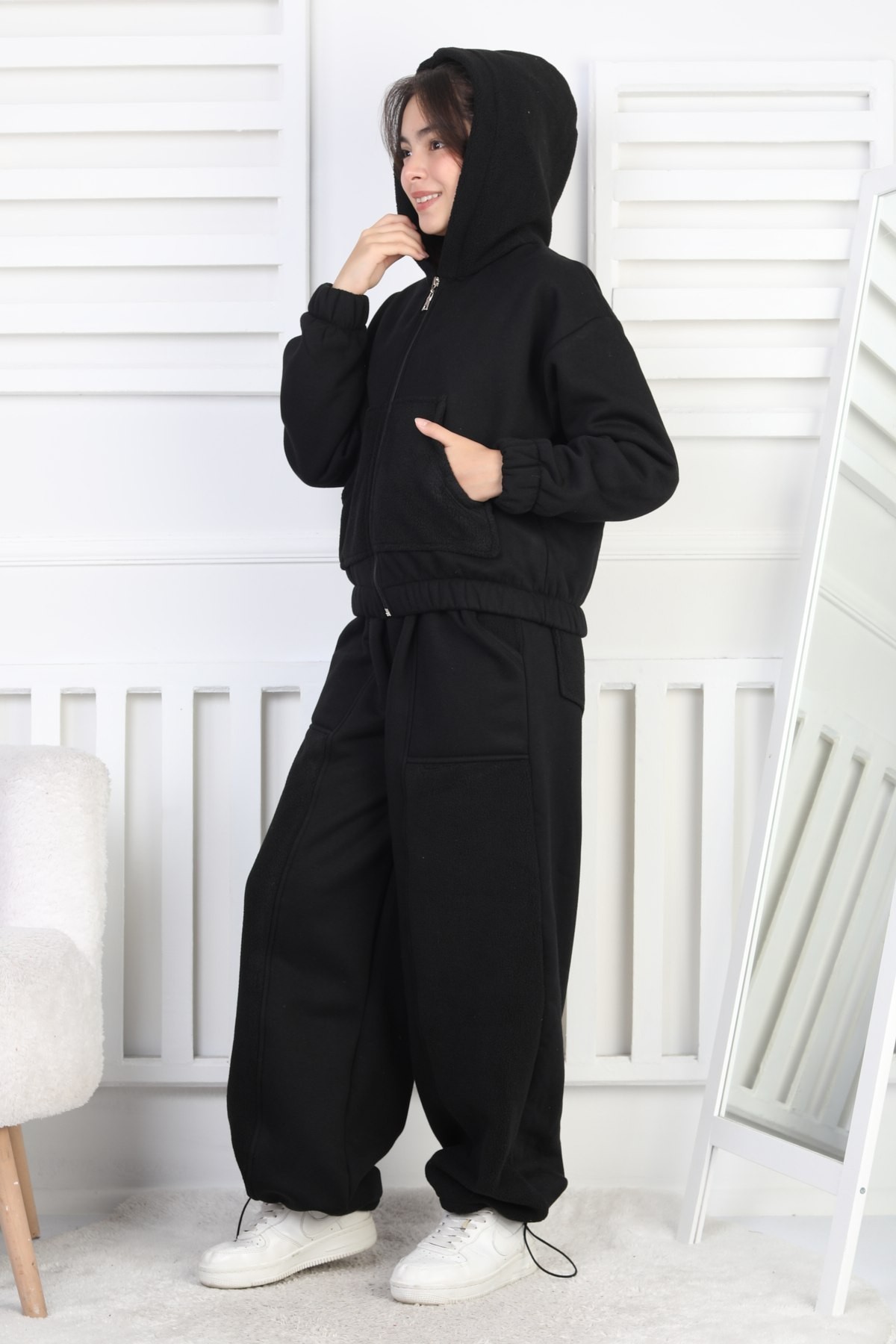 Üç İplik Şardonlu Kapüşonlu Kız Çocuk Takım