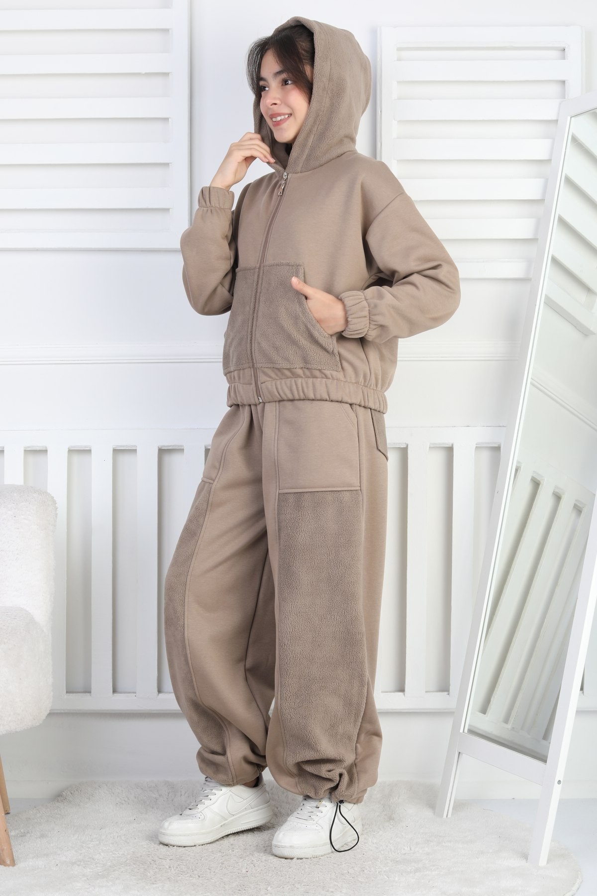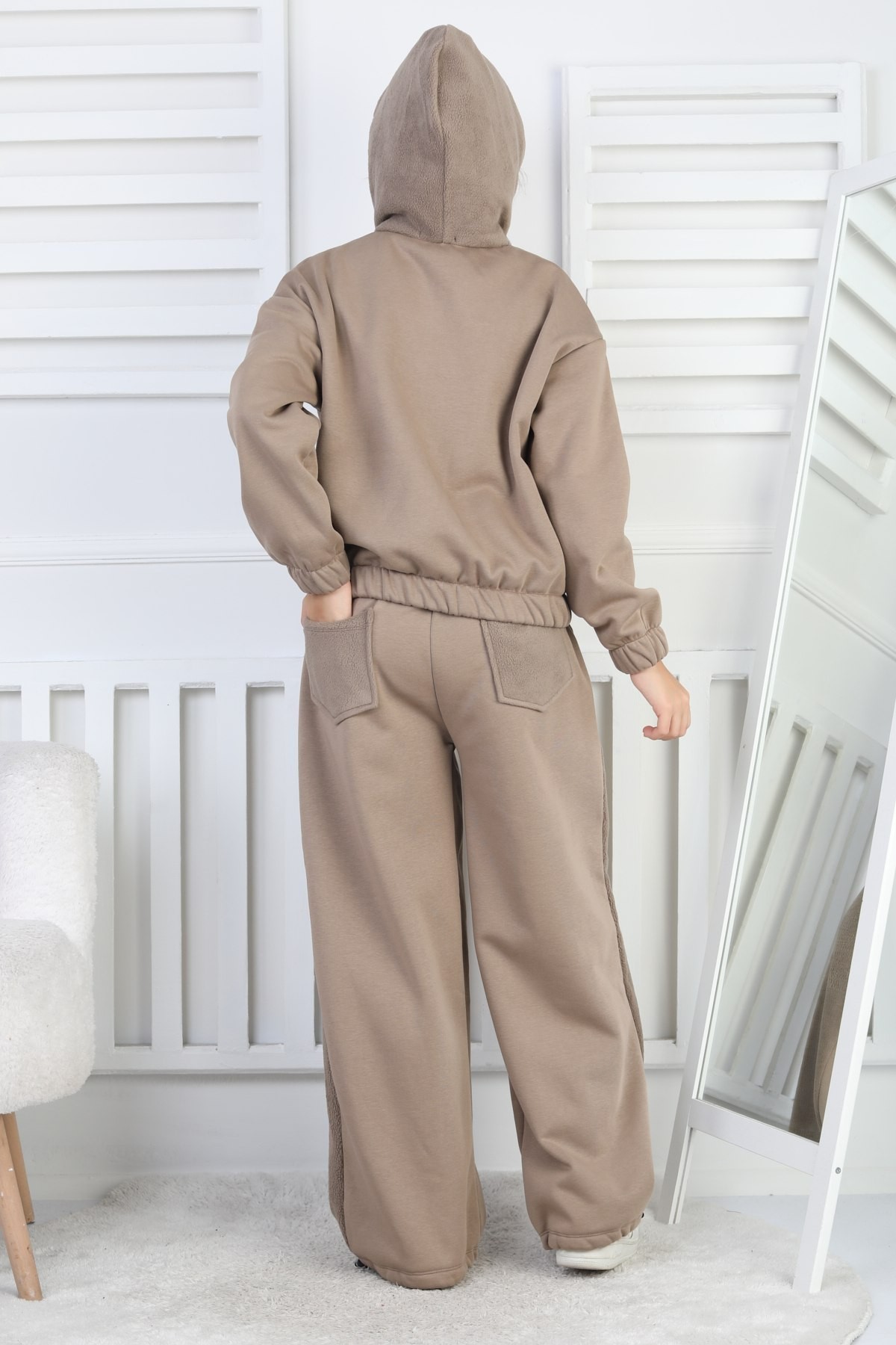 Üç İplik Şardonlu Kapüşonlu Kız Çocuk Takım