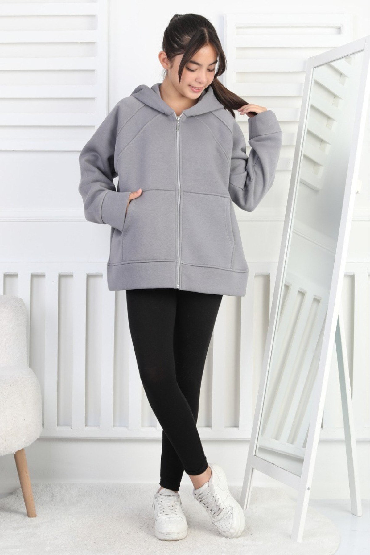 Üç İplik Şardonlu Kapşonlu Kız Çocuk Sweatshirt
