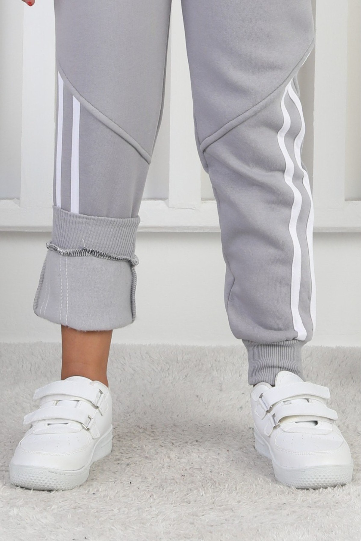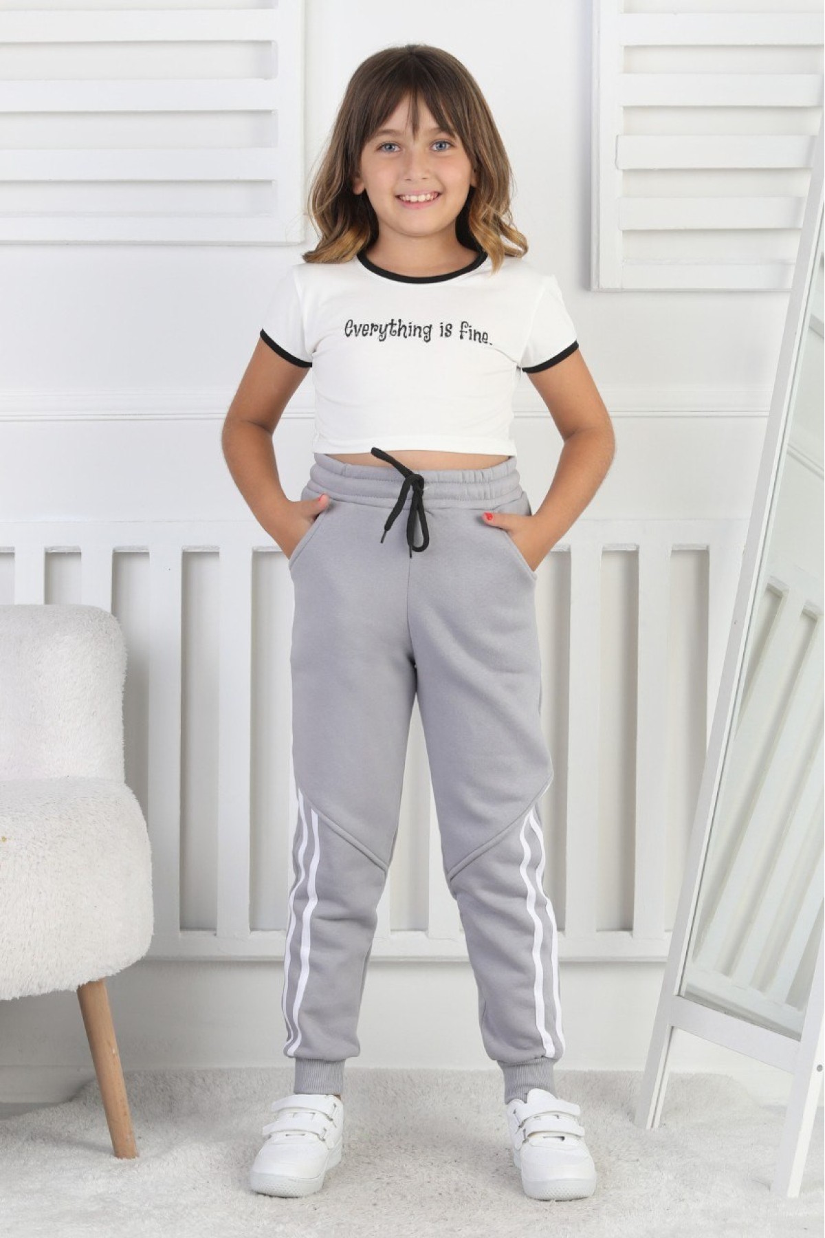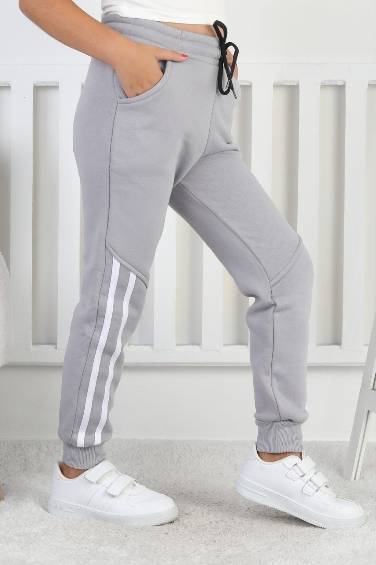 Üç İplik Şardonlu Dar Paça Kız Çocuk Eşofman Altı