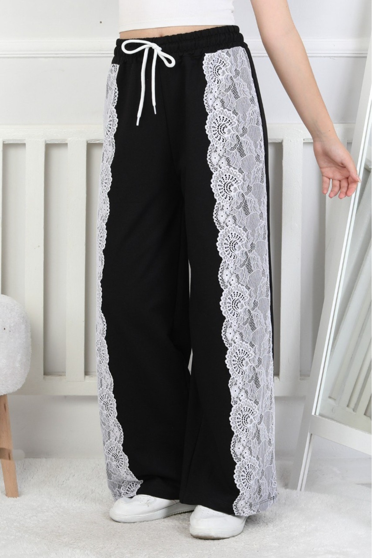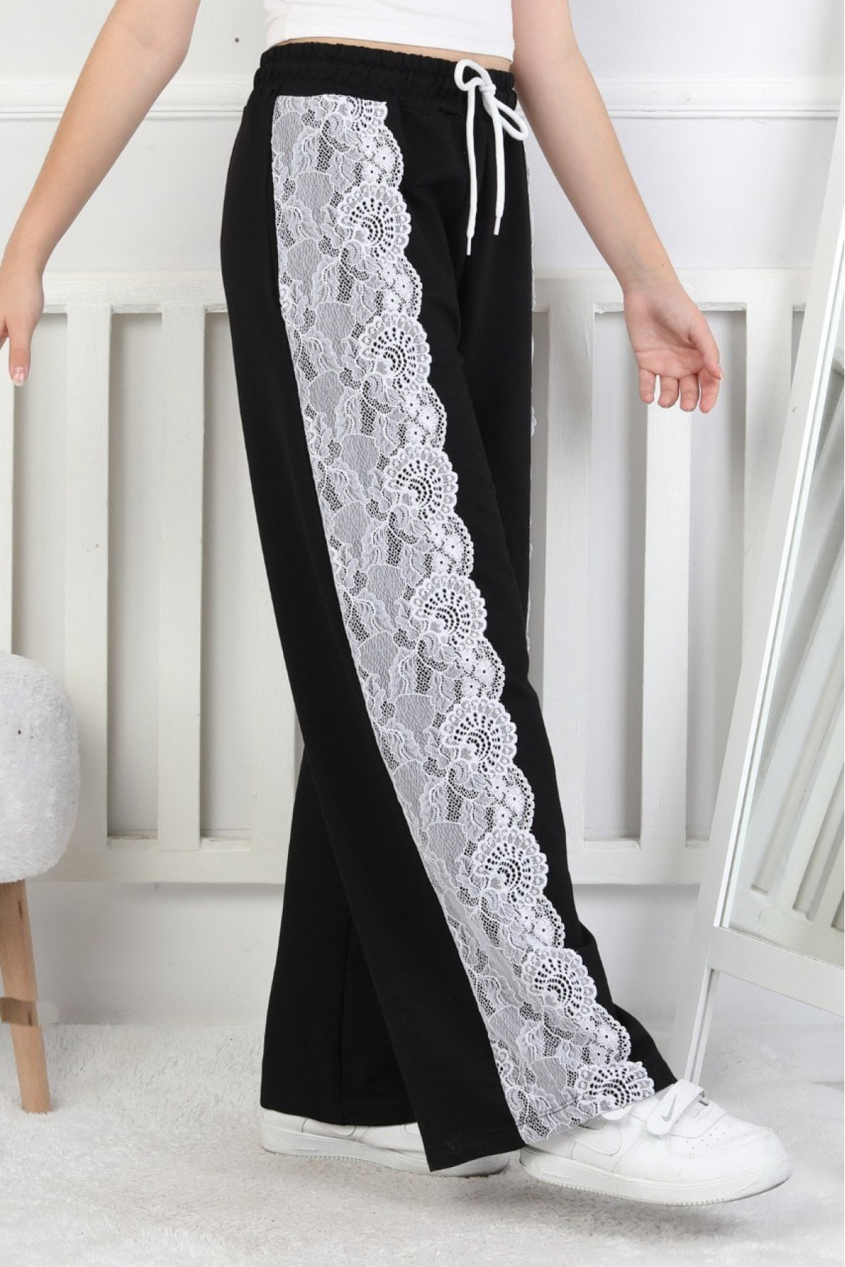 İki İplik Güpürlü Bol Paça Kız Çocuk Eşofman Altı