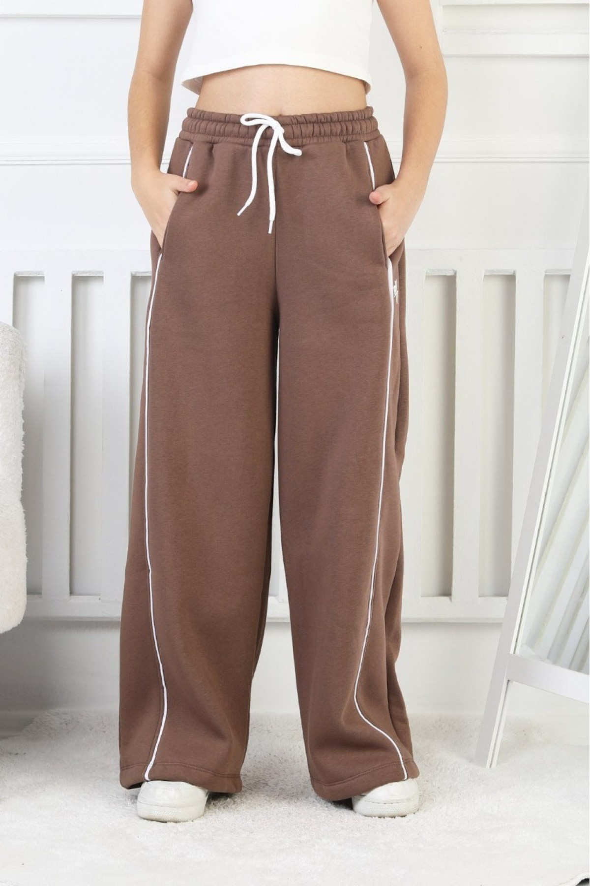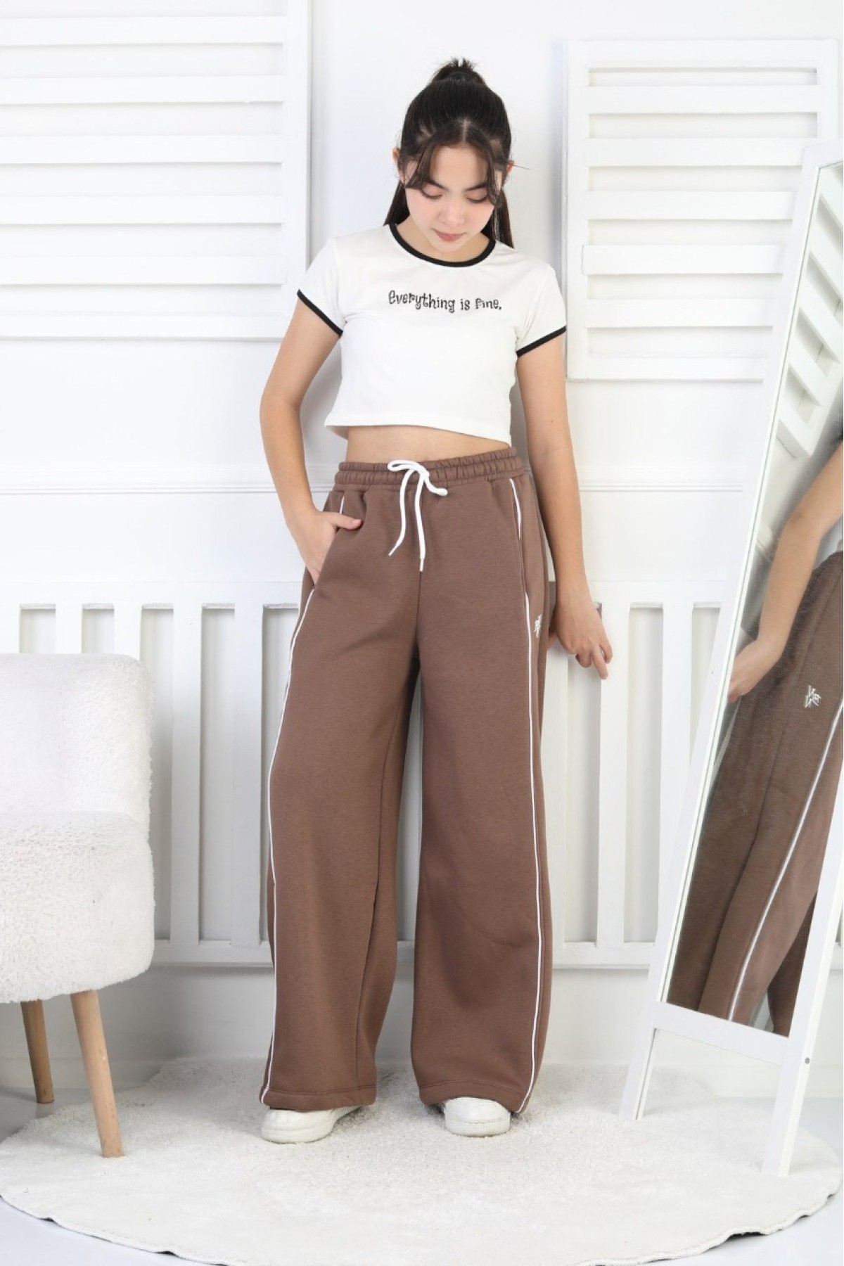 Üç İplik Şardonlu Bol Paça Tek Çizgi Kız Çocuk Eşofman Altı