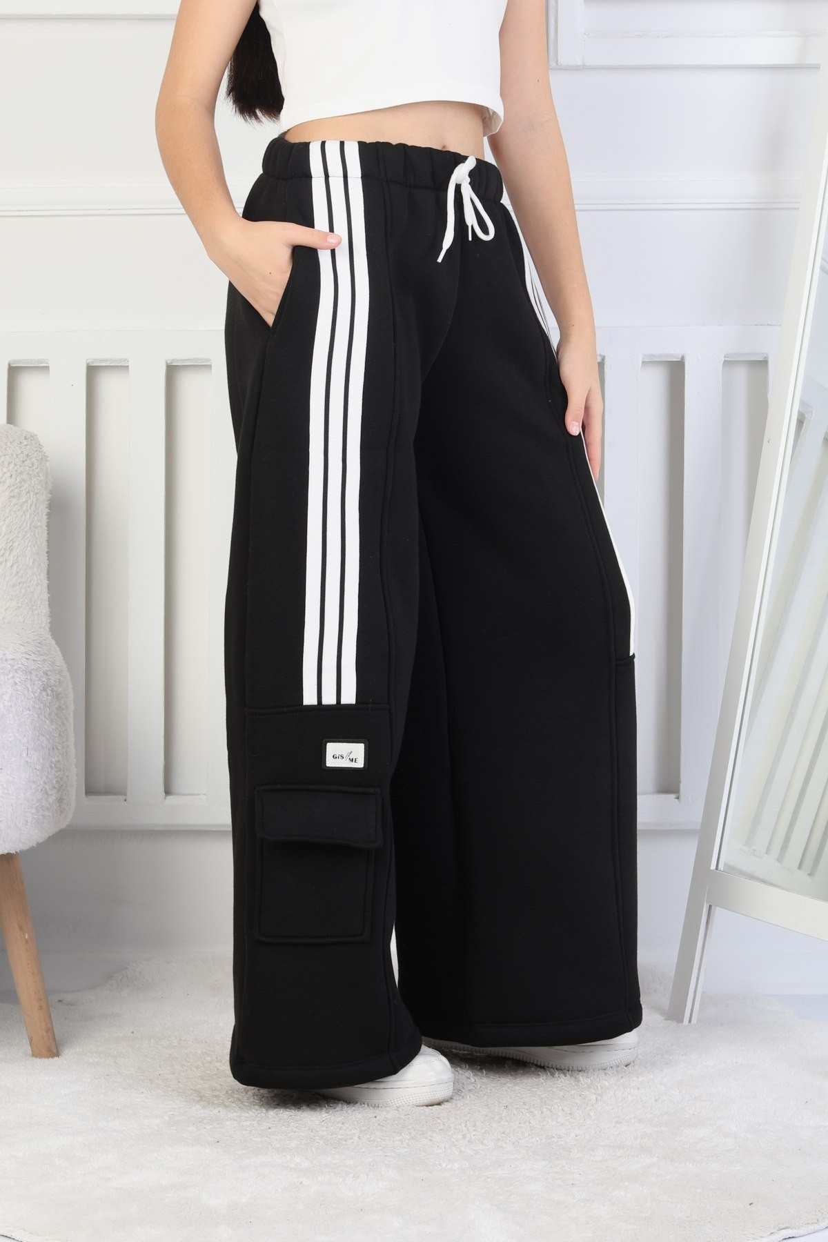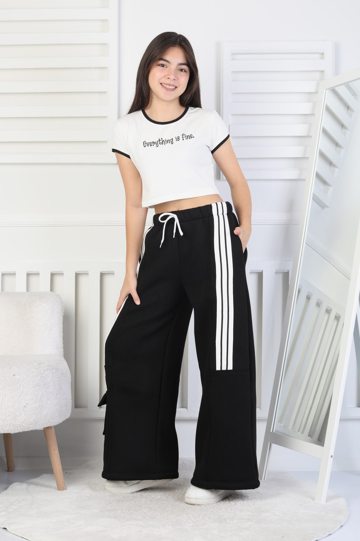 Üç İplik Şardonlu Çep Detaylı Bol Paça Kız Çocuk Eşofman Altı