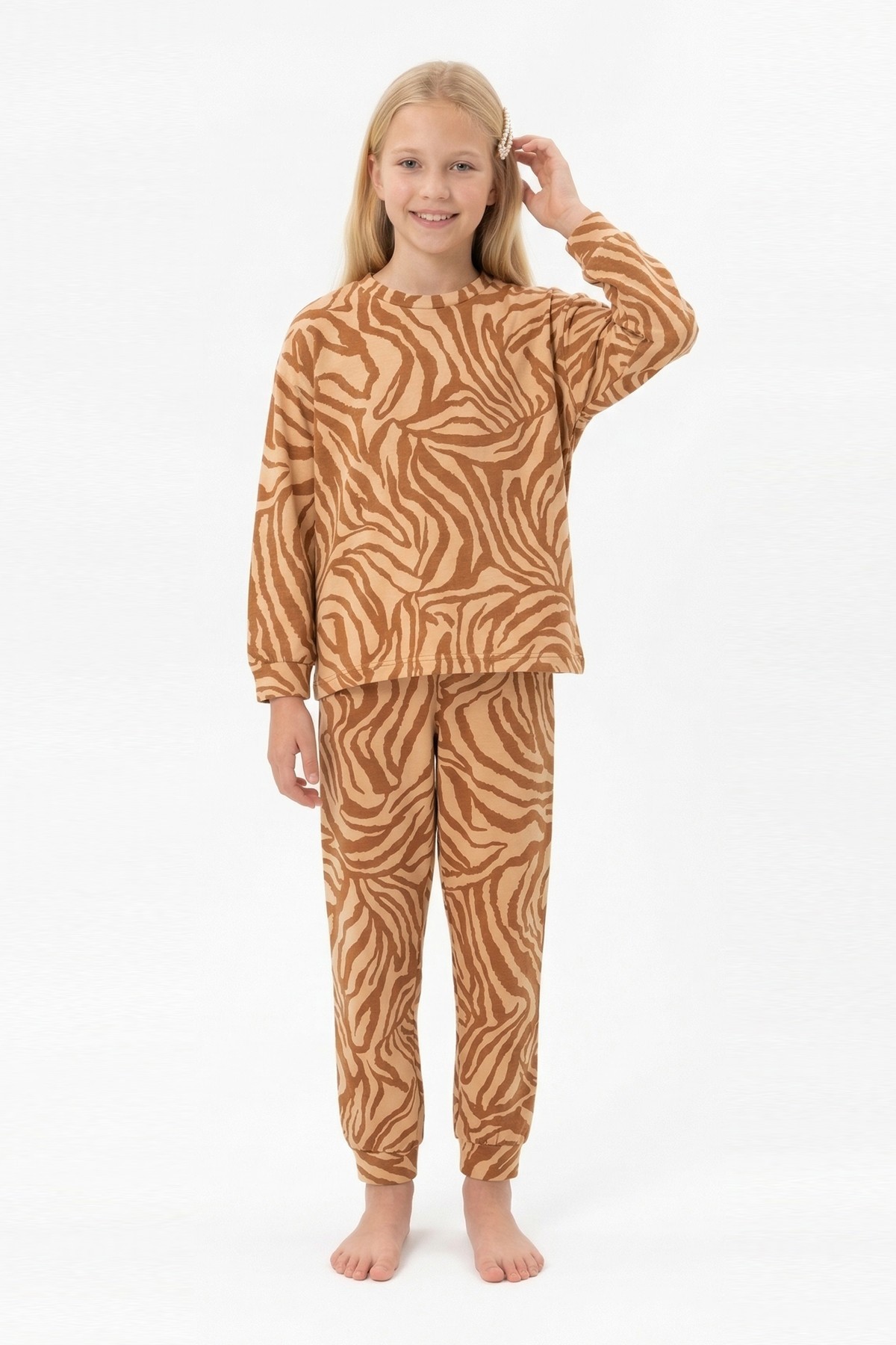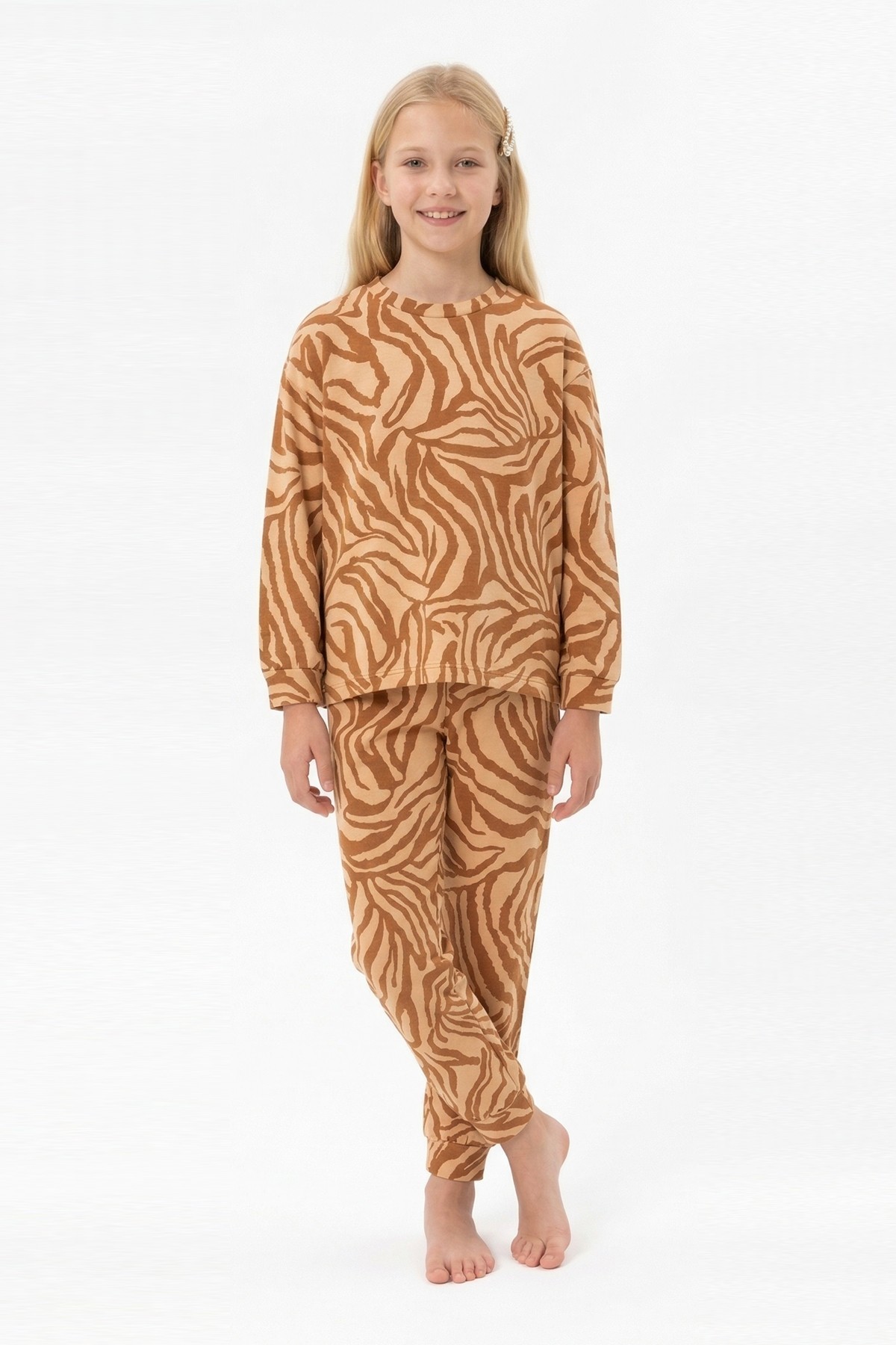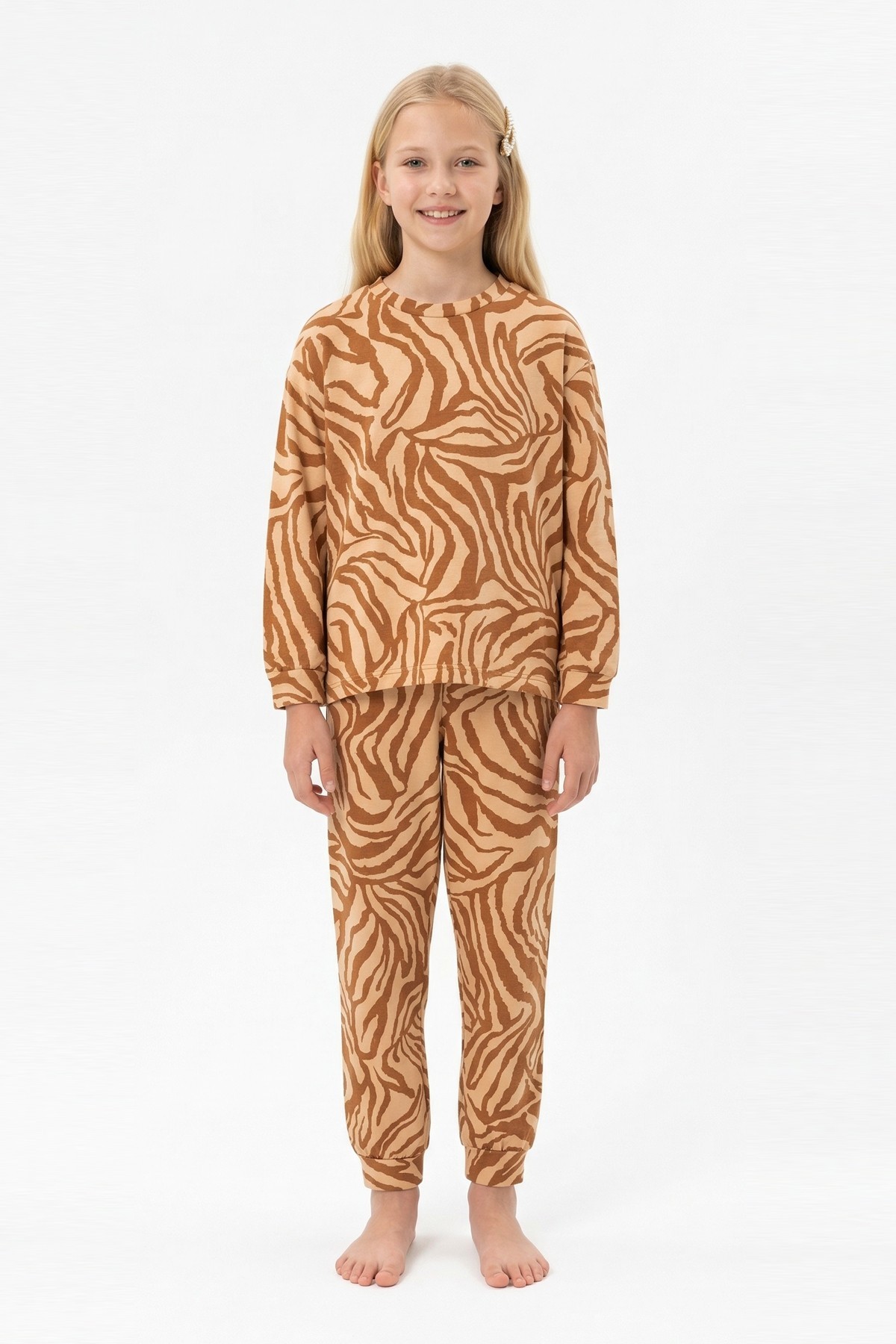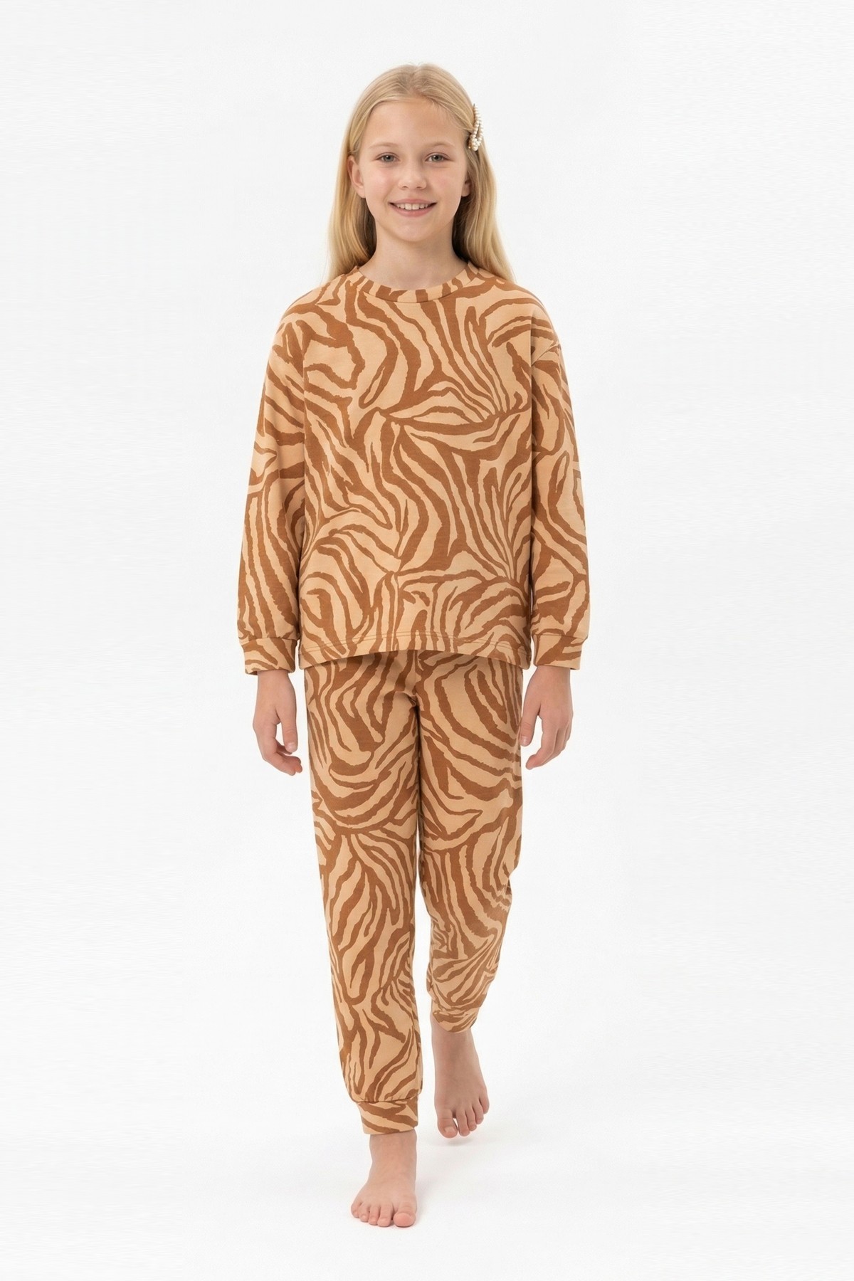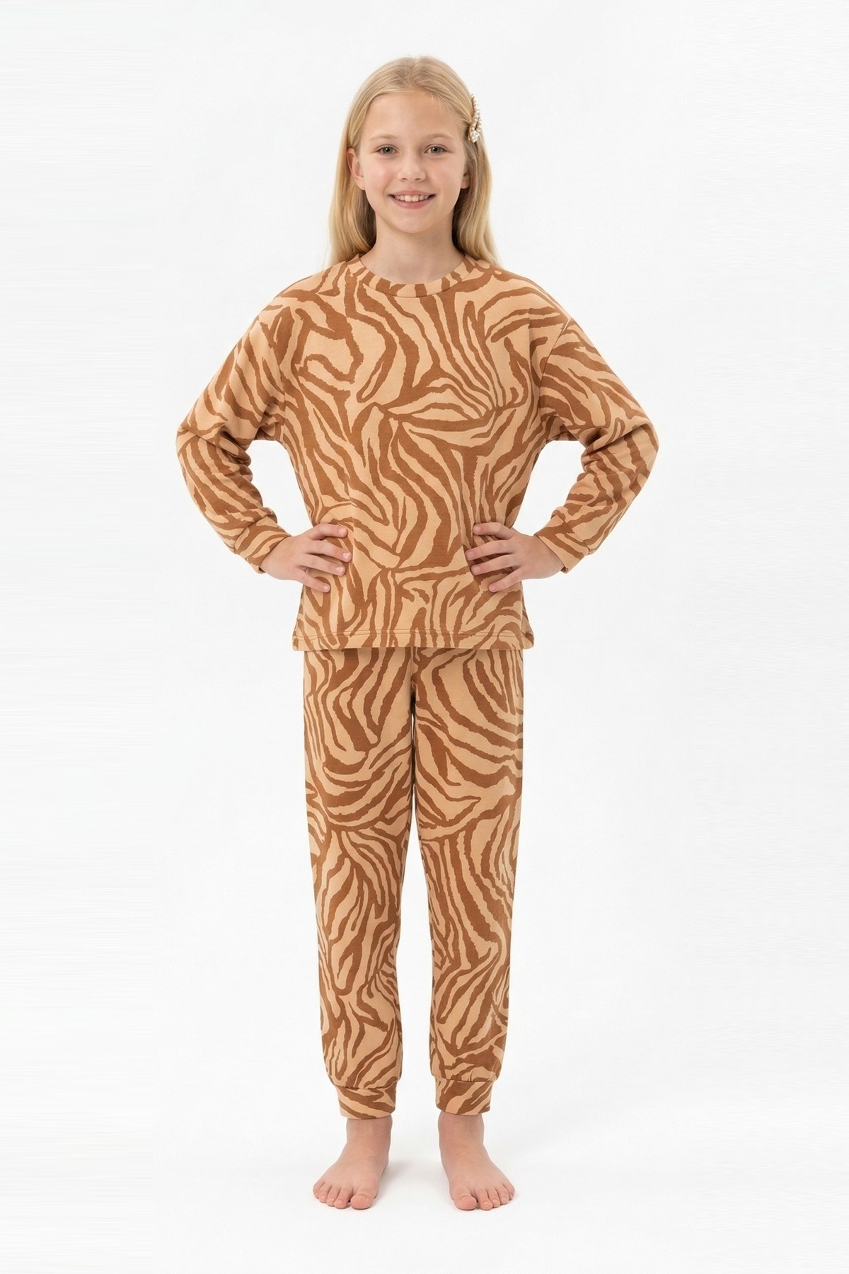 Garson Kız Çocuk Baskılı %100 Pamuk Reaktif Boyalı Süprem Kumaş Uzun Kollu Pijama Takımı