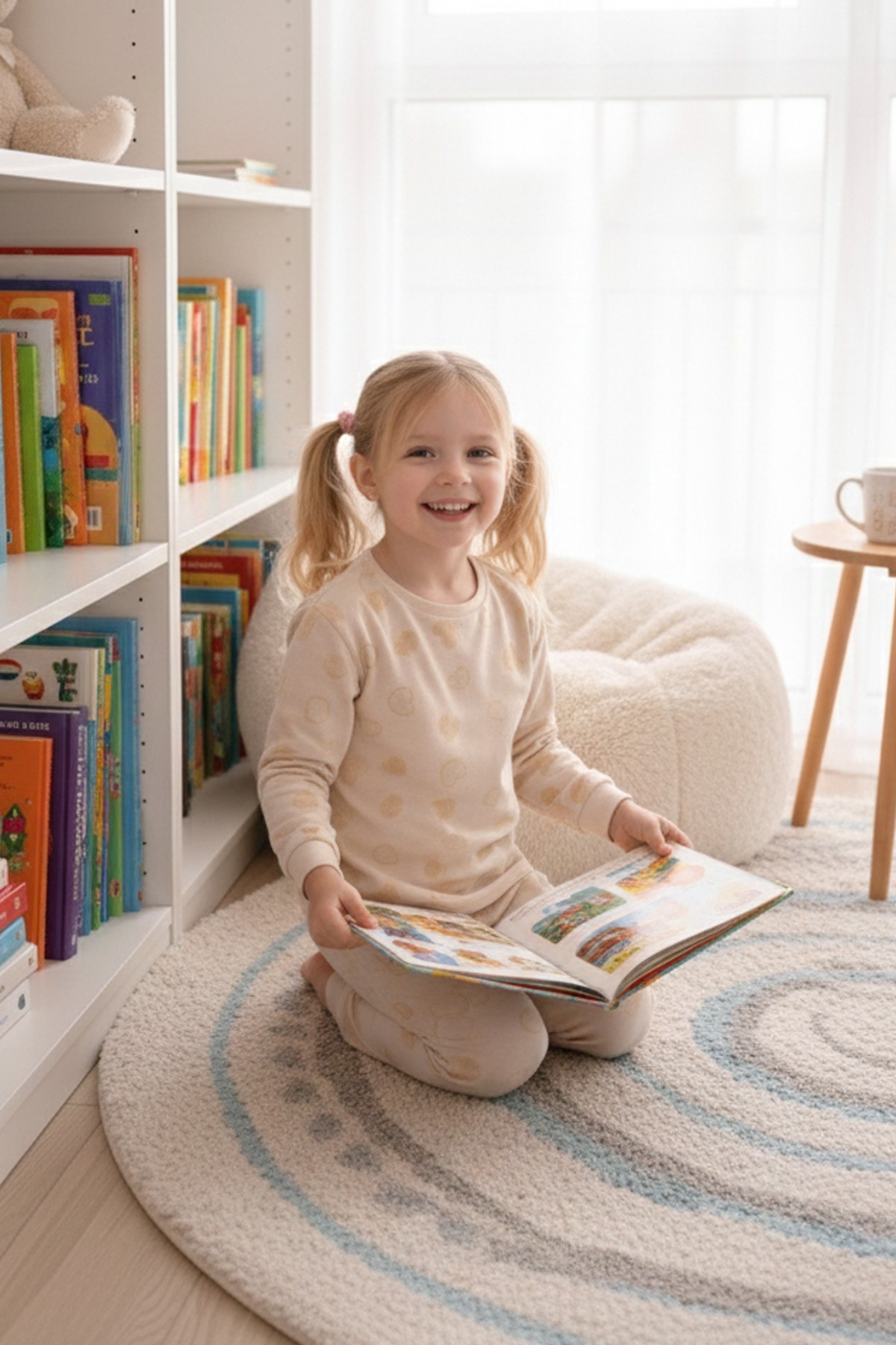 Kız Çocuk Desenli %100 Pamuk Reaktif Boyalı Süprem Kumaş Uzun Kollu Pijama Takımı
