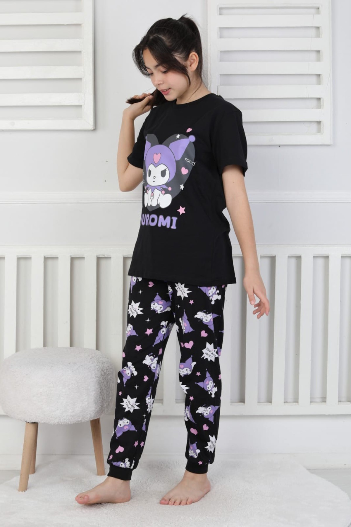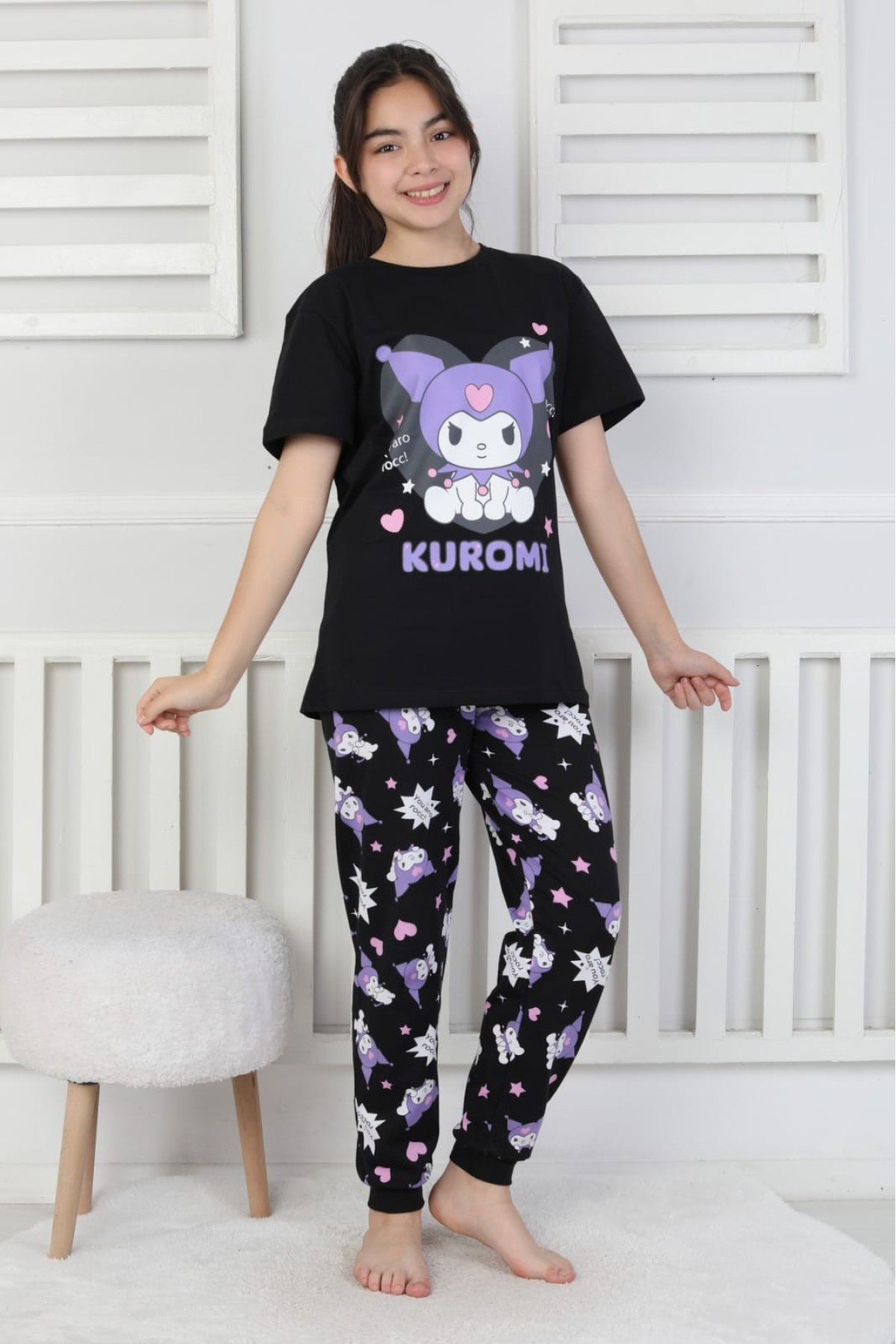 Garson Kız Çocuk Baskılı %100 Pamuk Reaktif Boyalı Süprem Kumaş Kısa Kollu Pijama Takımı
