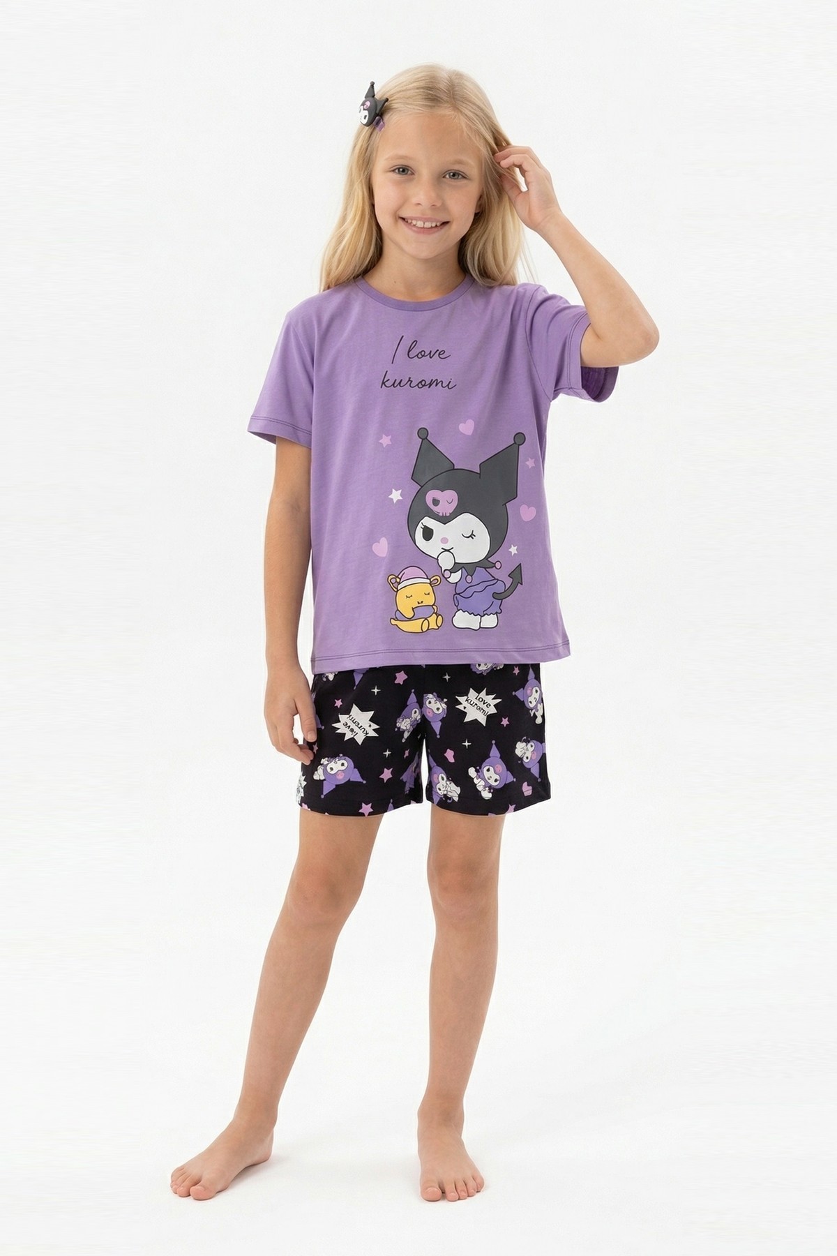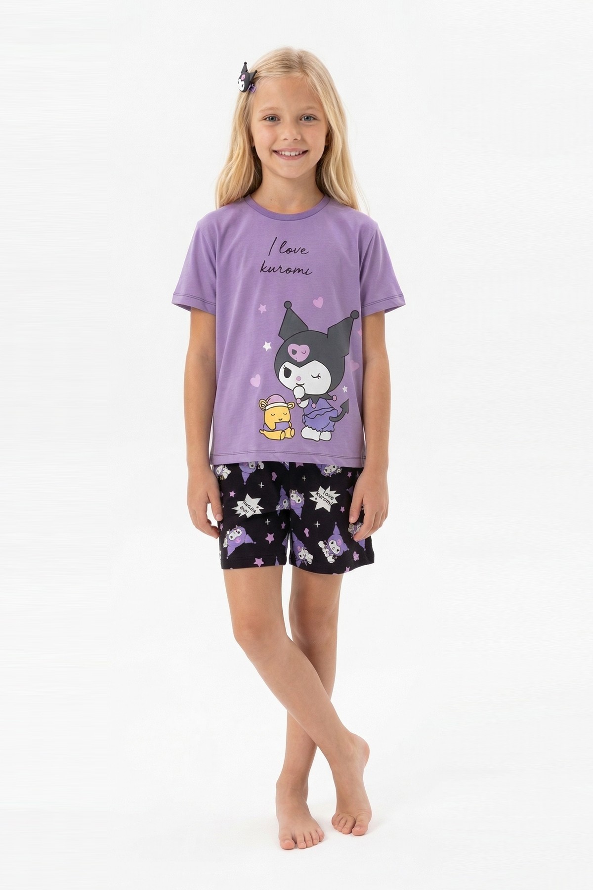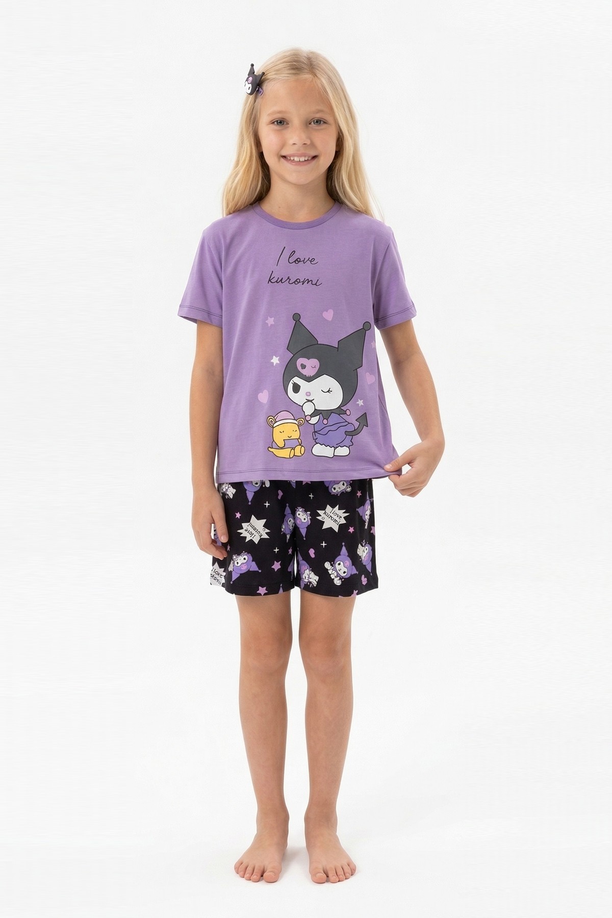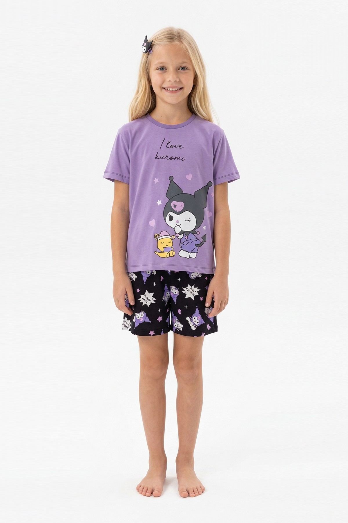 Garson Kız Çocuk Baskılı %100 Pamuk Reaktif Boyalı Süprem Kumaş Kısa Kollu Şortlu Pijama Takımı