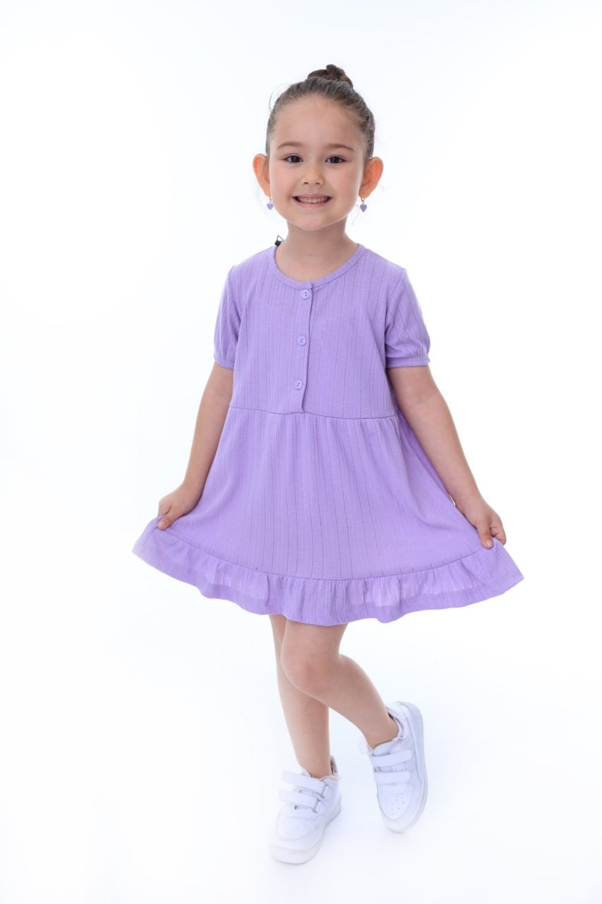 Kız Çocuk Kısa Kollu Düğme Detaylı Ve Etek Ucu Fırfırlı Pamuklu Yazlık Elbise