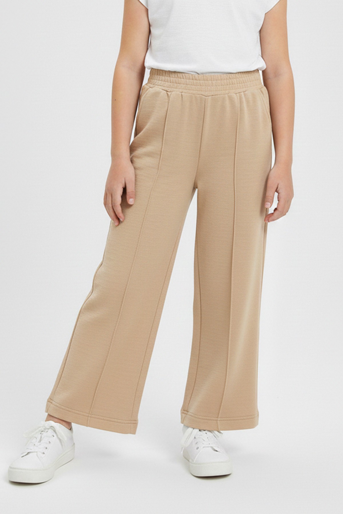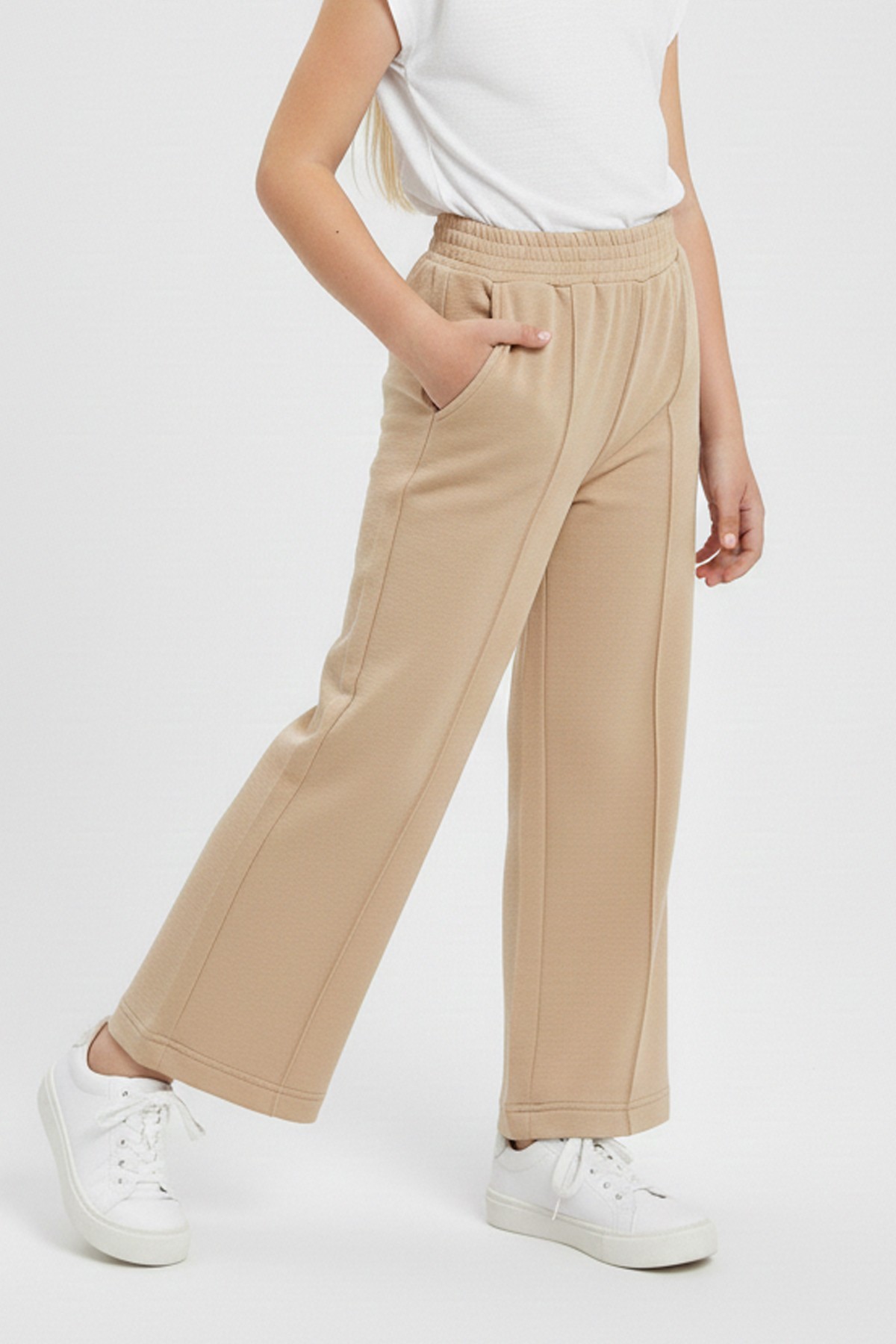 Kız Çocuk Önden Çizgi Detaylı Beli Lastikli Bol Paça Rahat Kesim Pantolon