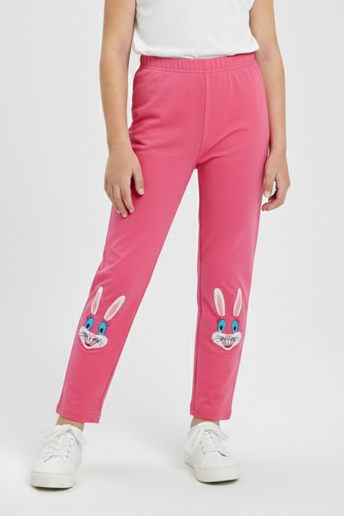 Kız Çocuk Tavşan Nakışlı Fiyonk Detaylı Esnek Pamuklu Tayt