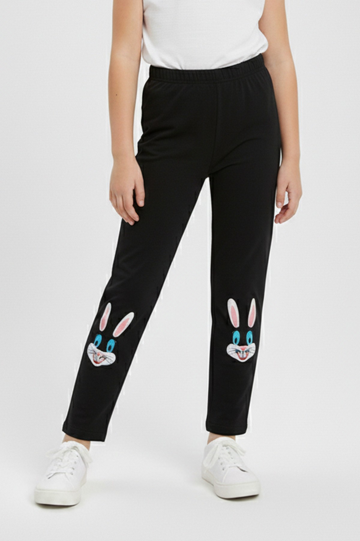 Kız Çocuk Tavşan Nakışlı Fiyonk Detaylı Esnek Pamuklu Tayt