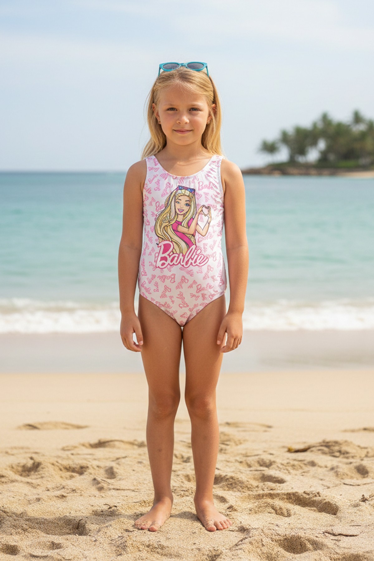 Garson Kız Çocuk Polyester + Elastan Lisanslı Logolu ve Karakter Baskılı Esnek Yüzücü Mayosu