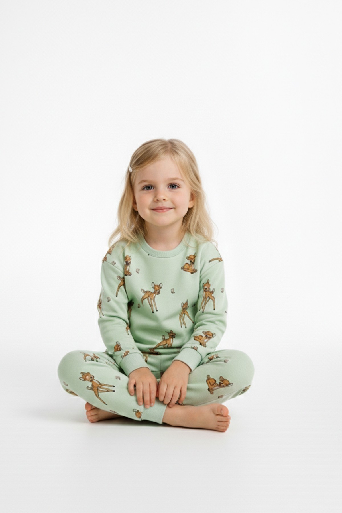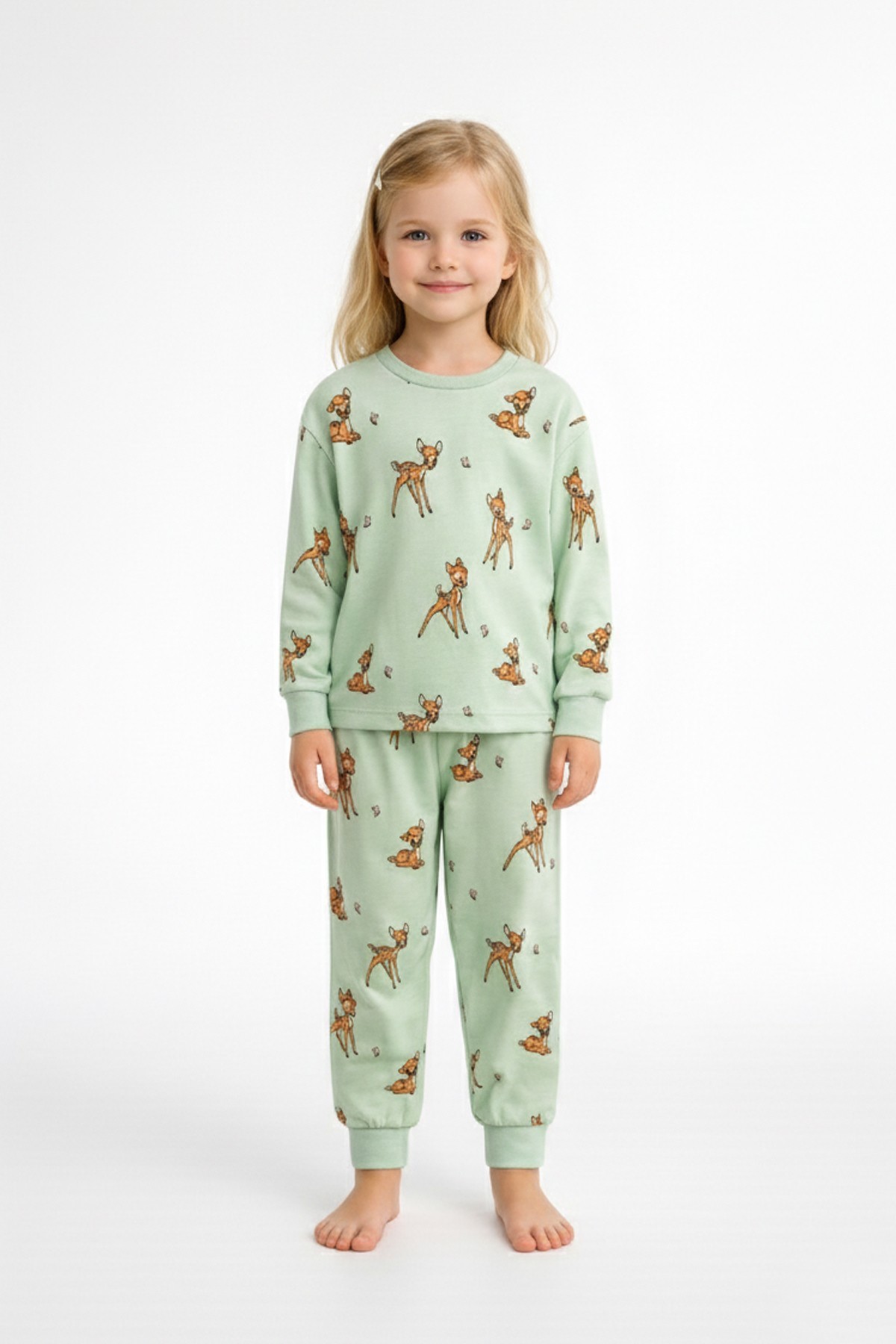 Kız Çocuk Baskılı %100 Pamuk Reaktif Boyalı Süprem Kumaş Uzun Kollu Pijama Takımı