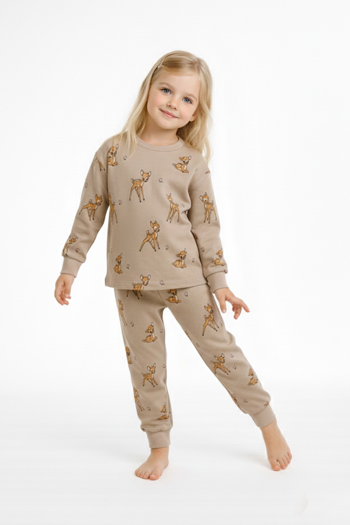 Kız Çocuk Baskılı %100 Pamuk Reaktif Boyalı Süprem Kumaş Uzun Kollu Pijama Takımı