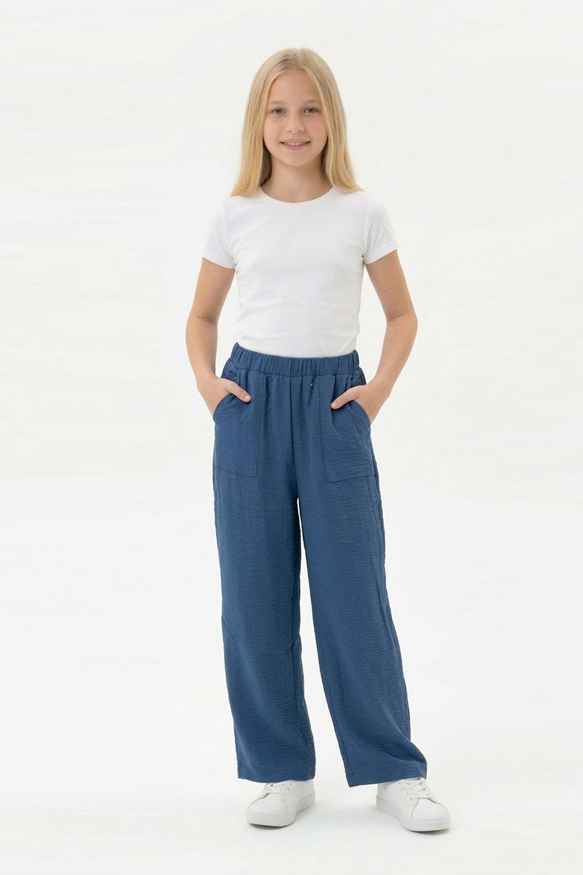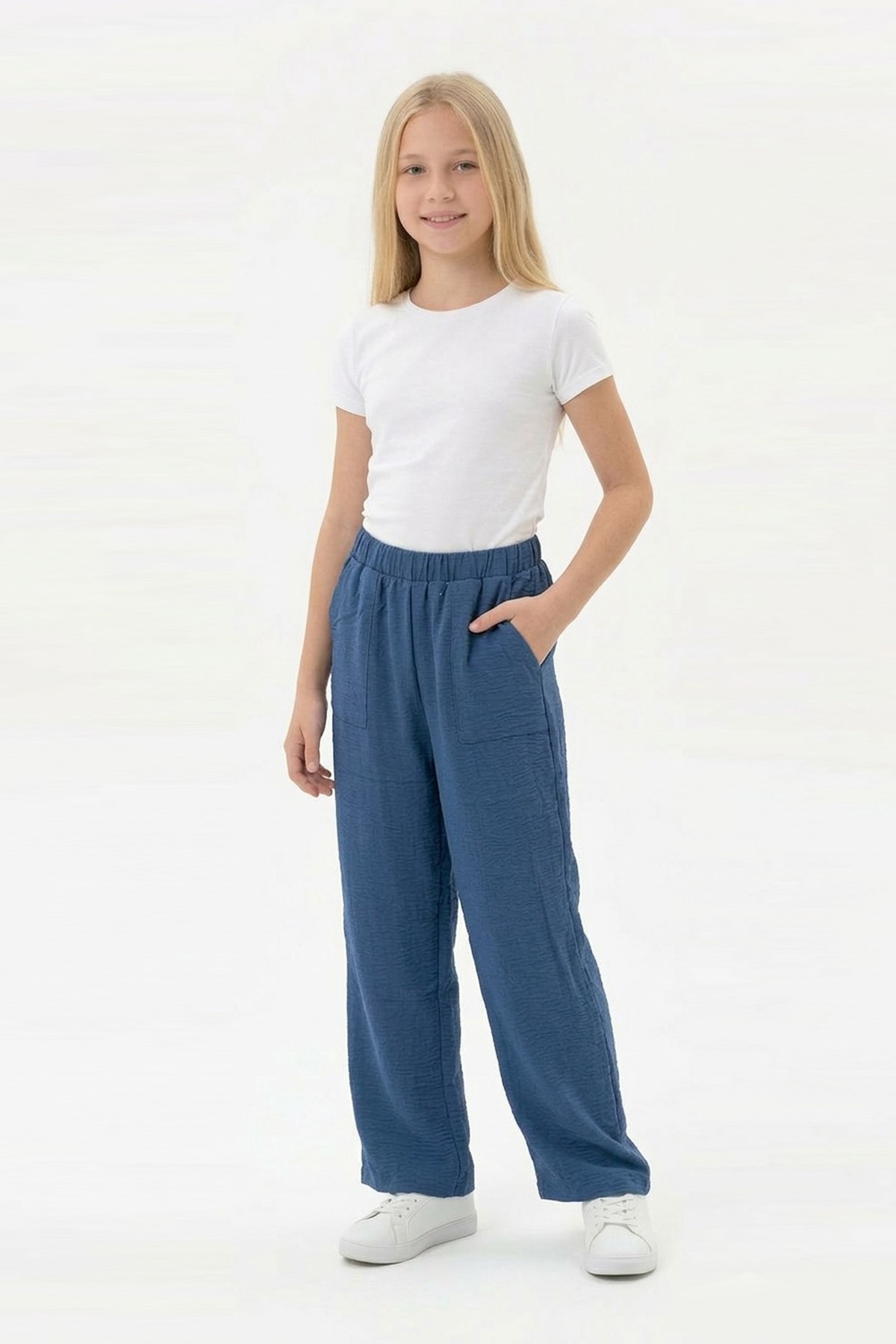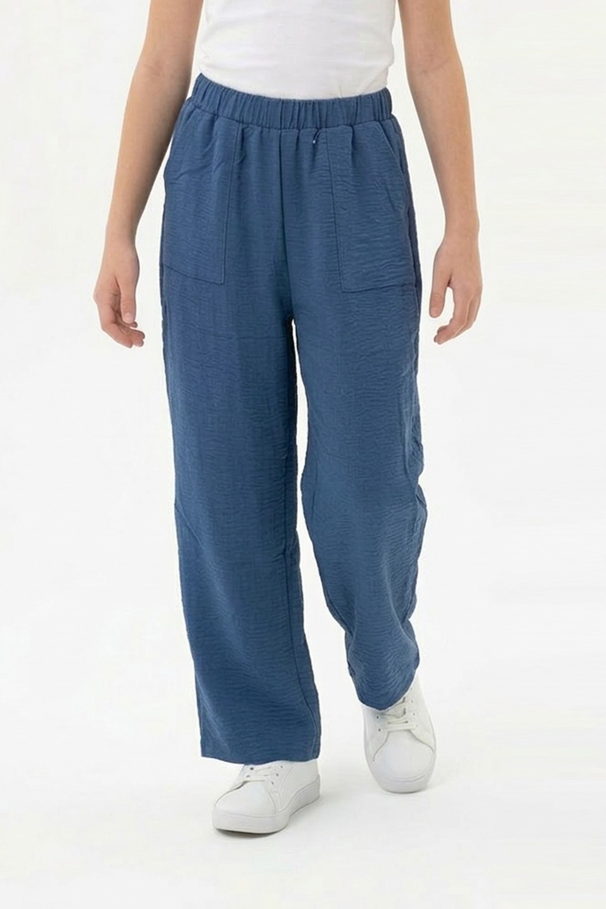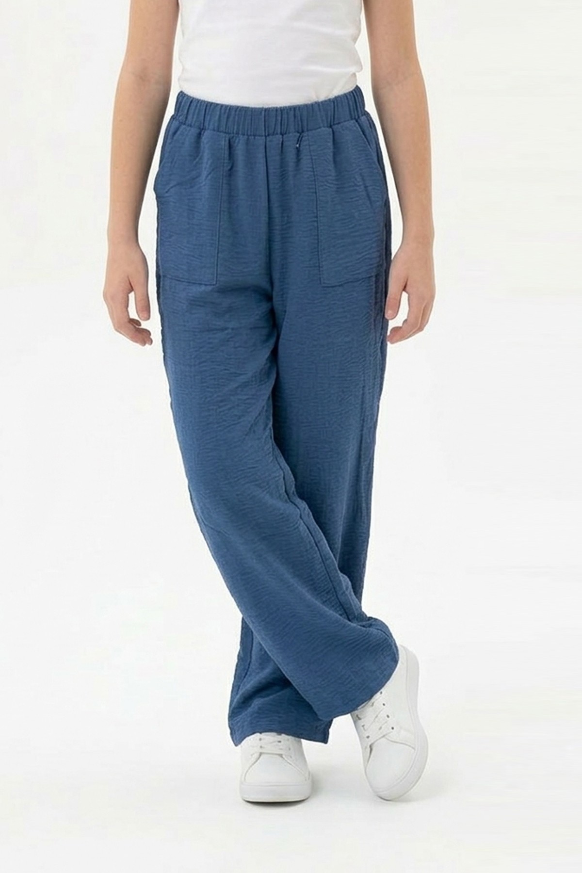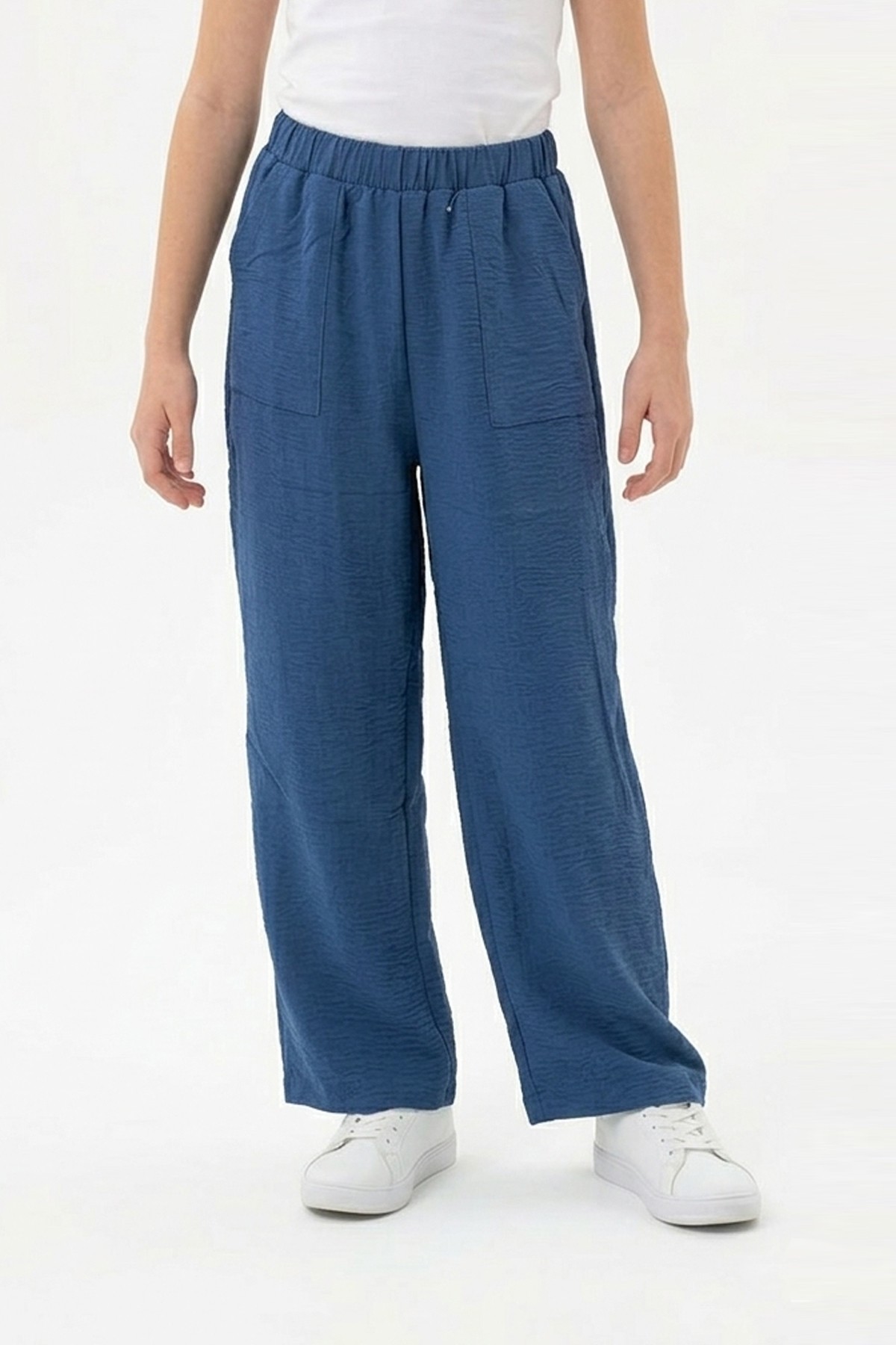 Garson Kız Çocuk Aerobin Kumaş Geniş Paça Cepli Beli Lastikli Rahat Kesim Bol Pantolon