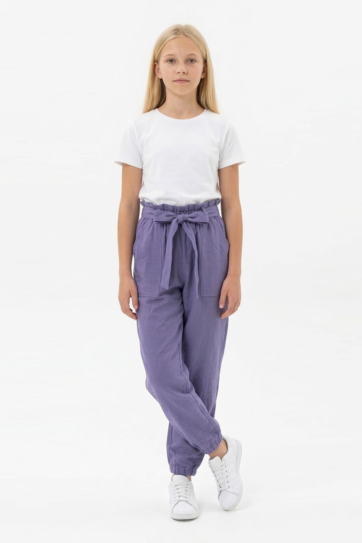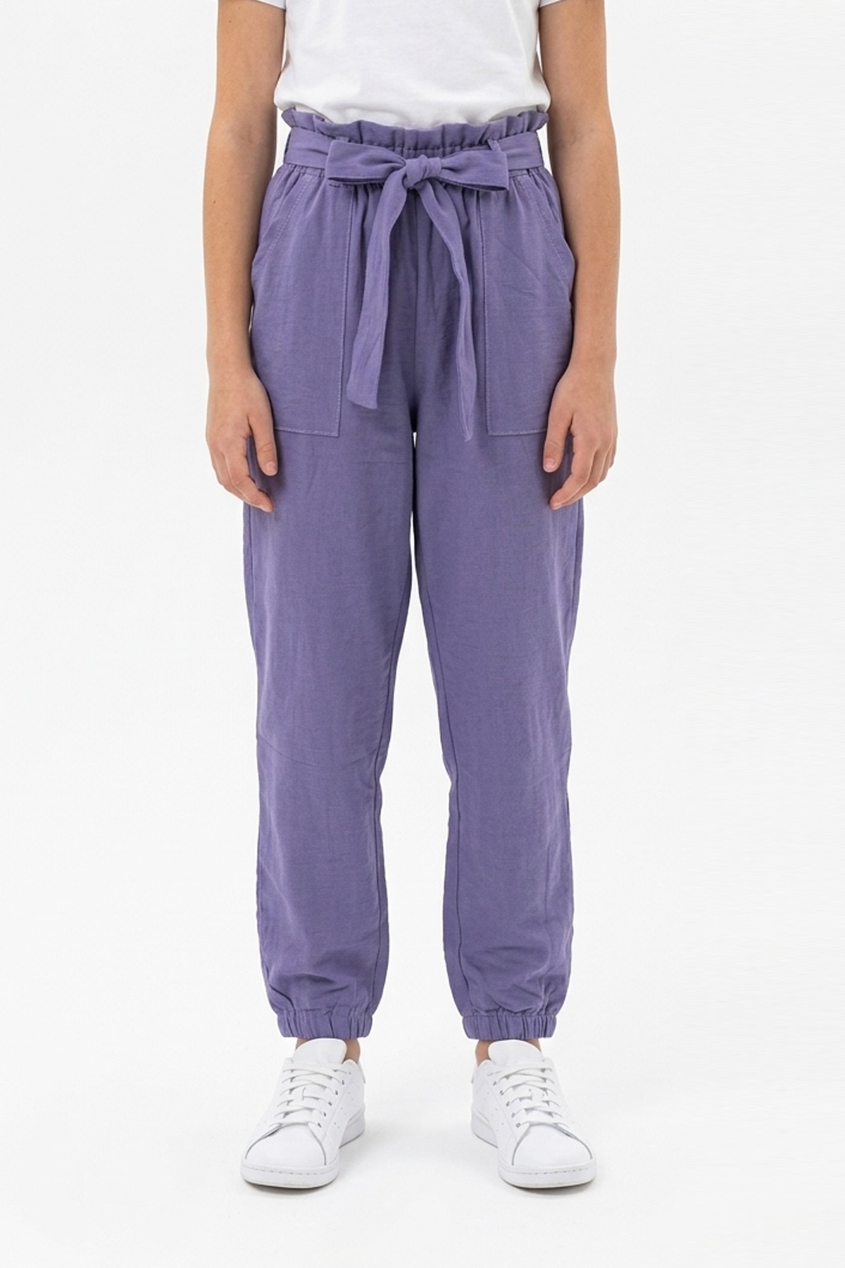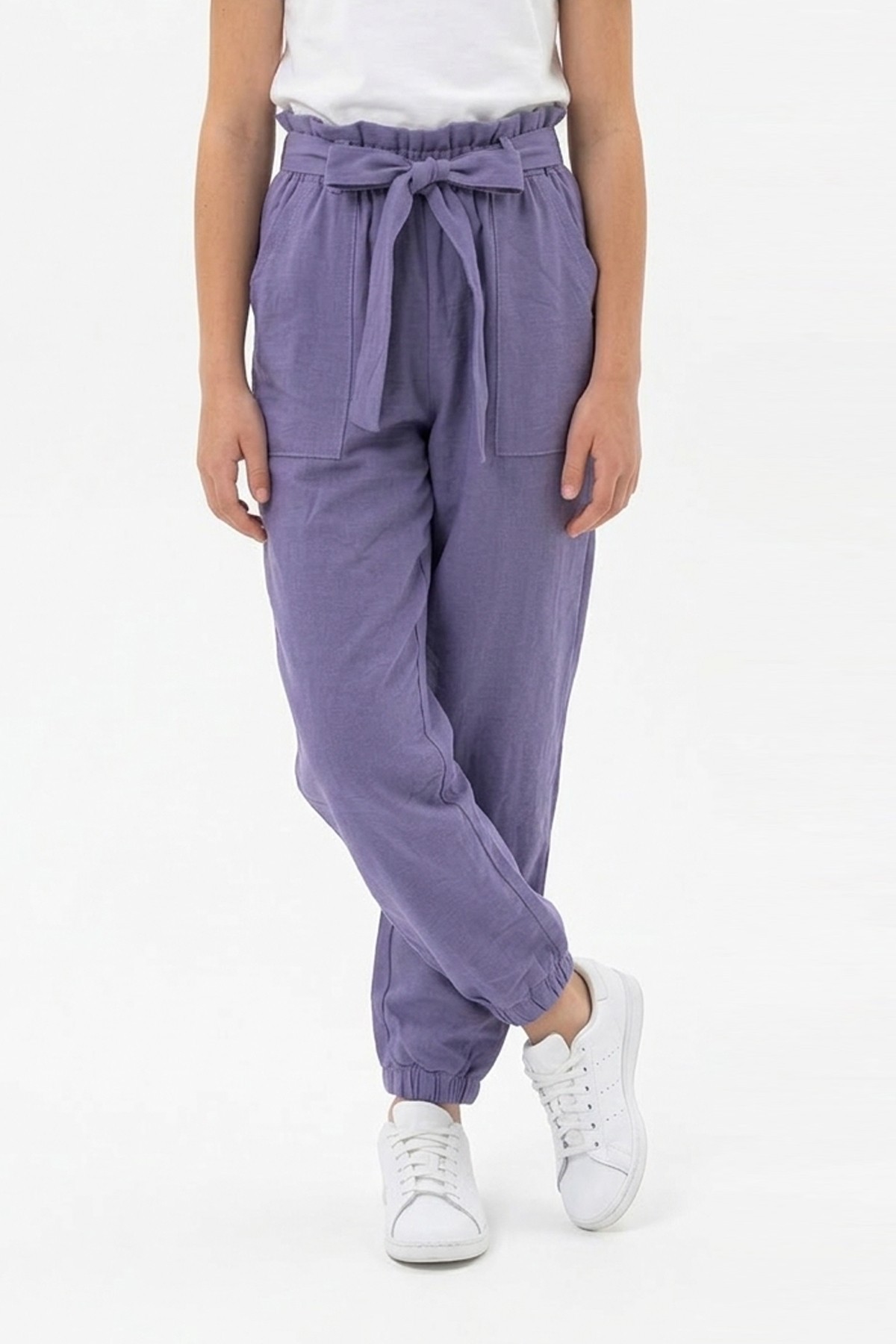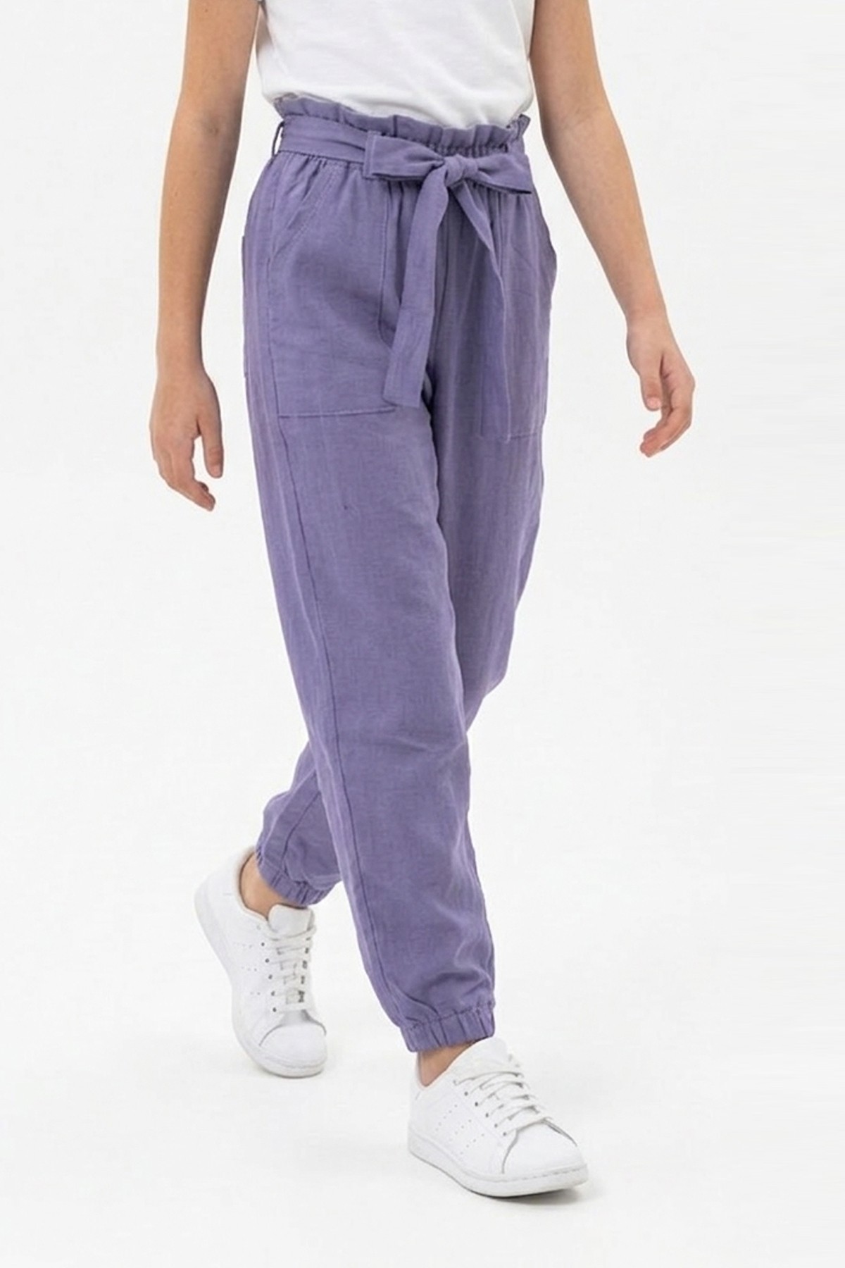 Garson Kız Çocuk Aerobin Kumaş Beli Lastikli ve Kuşaklı Paçası Lastikli Cepli Rahat Kesim Pantolon