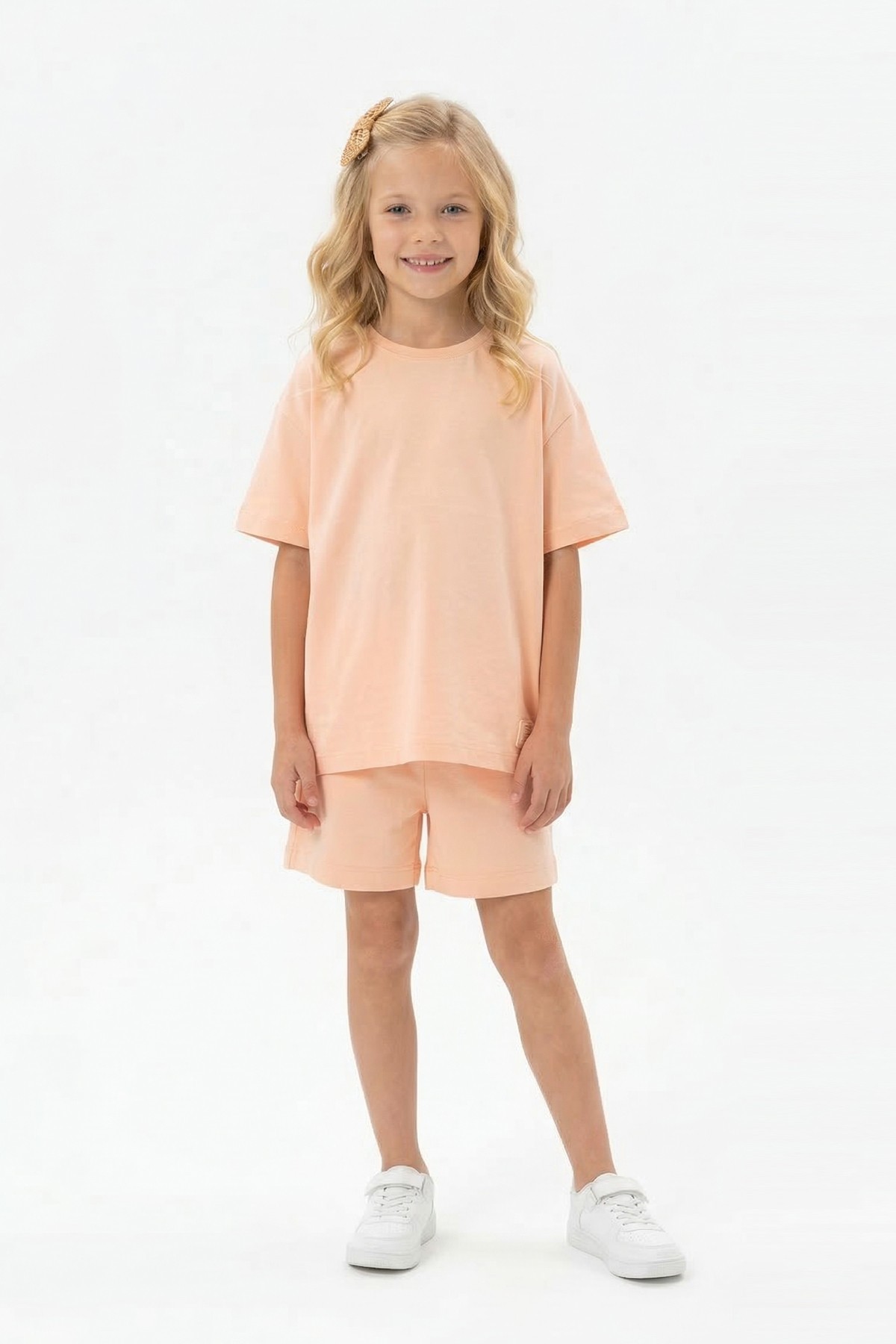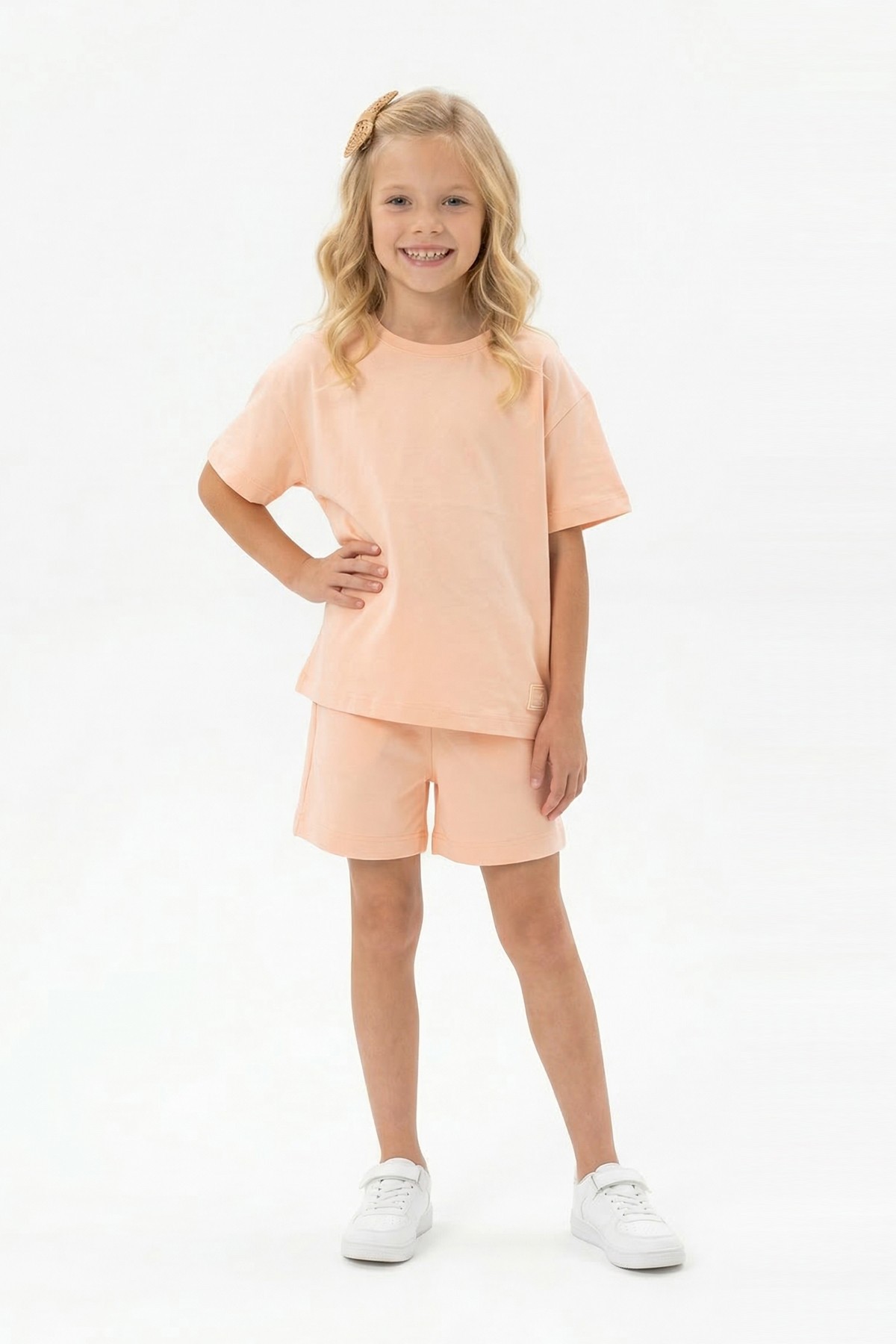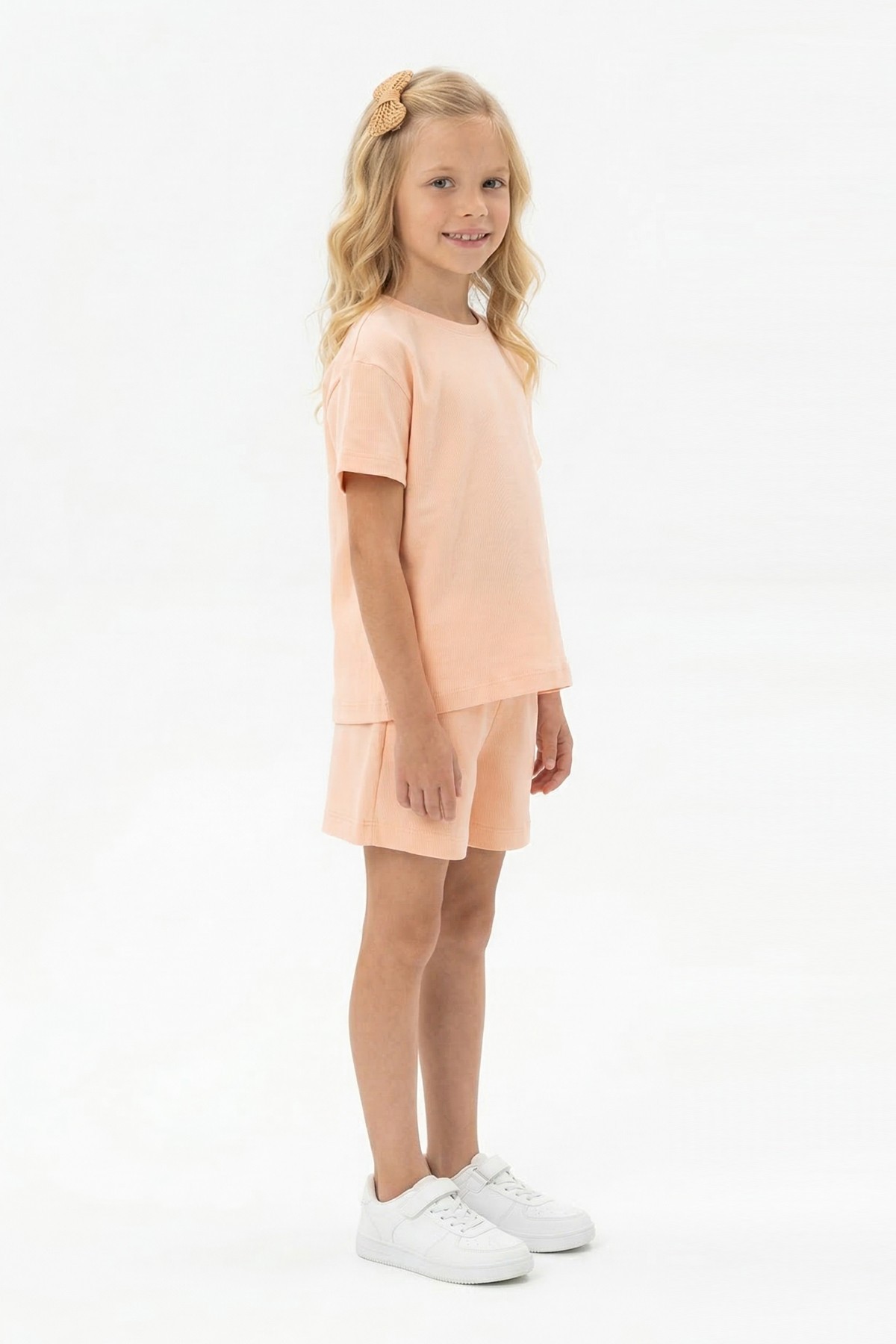 Kız Çocuk %100 Pamuk Reaktif Boyama Süprem Kumaş Kısa Kollu Şortlu Takım