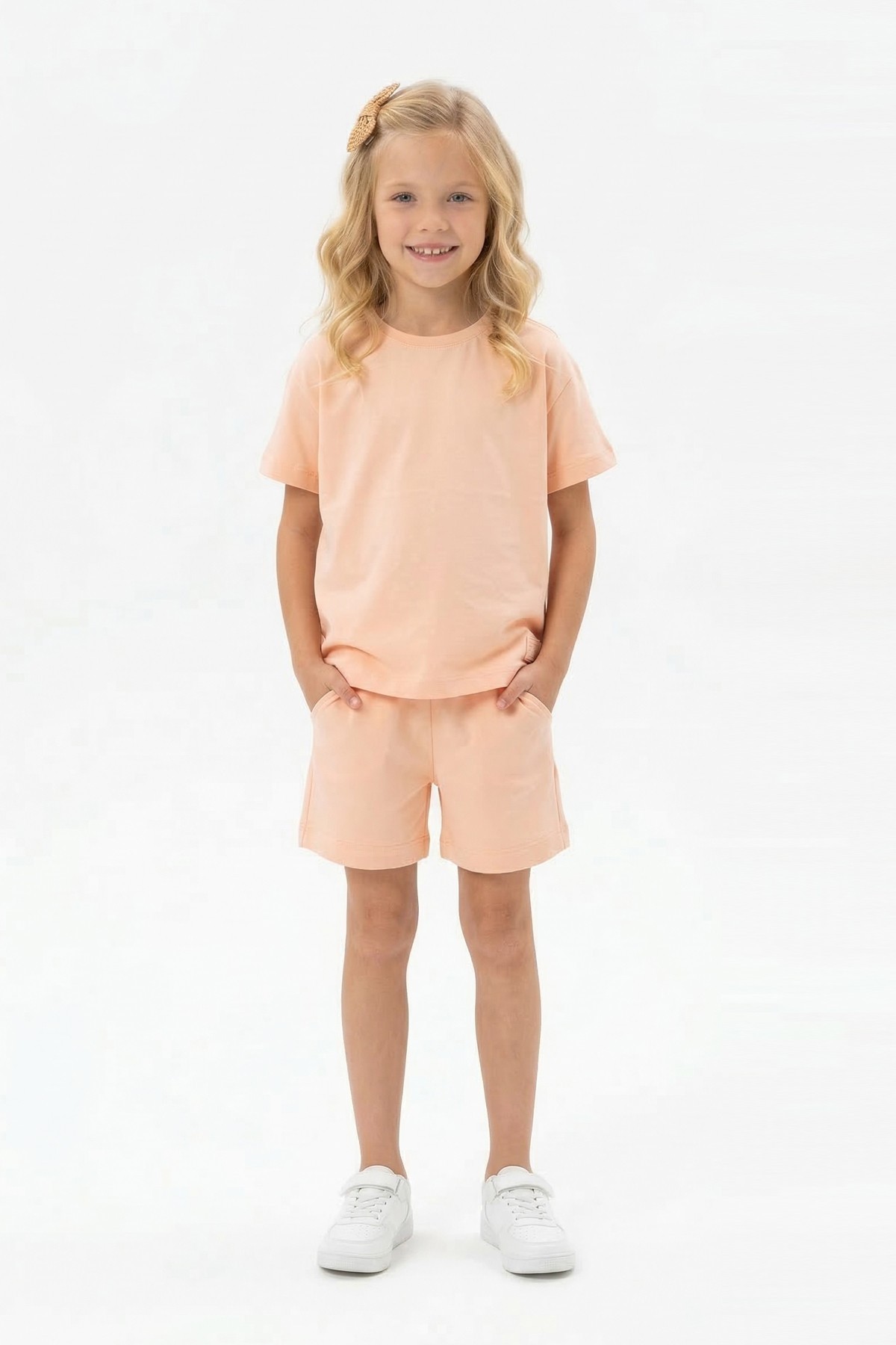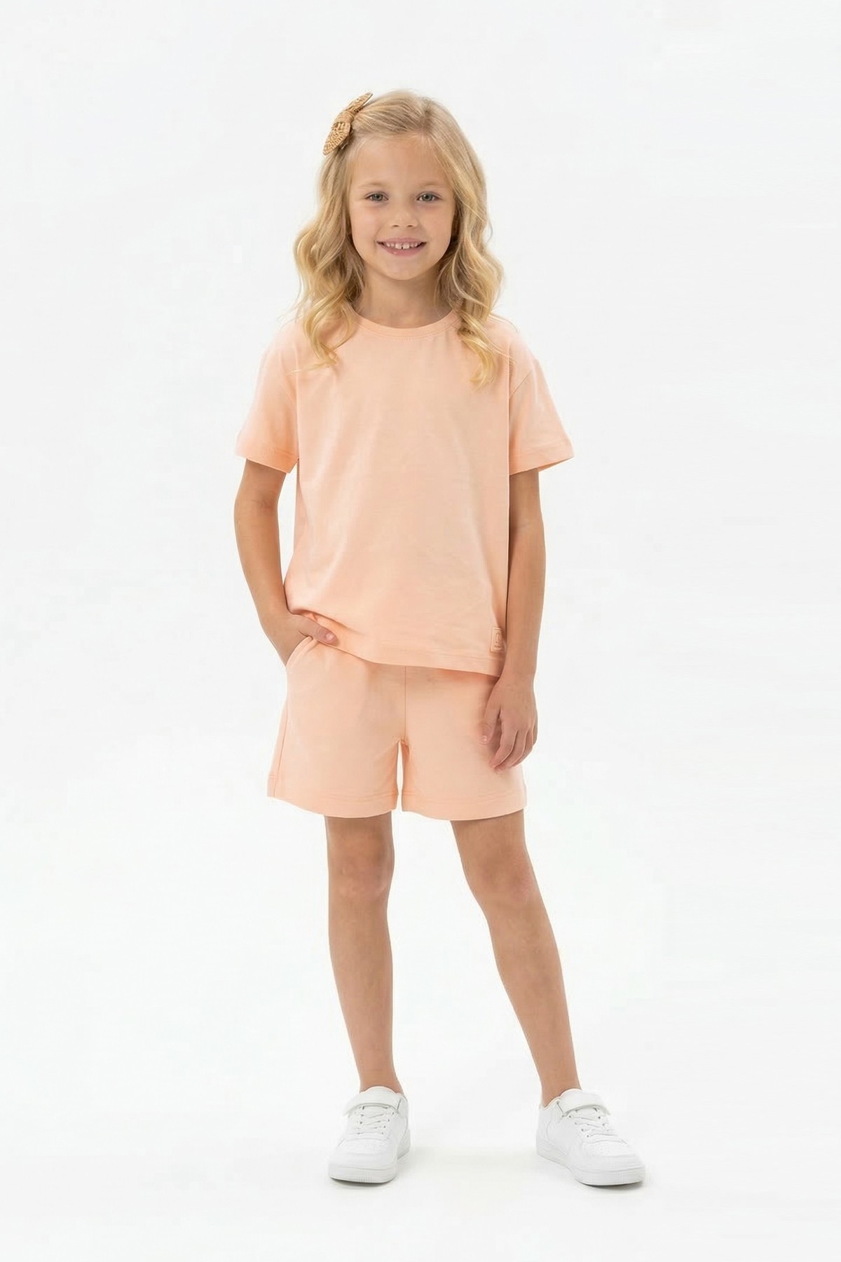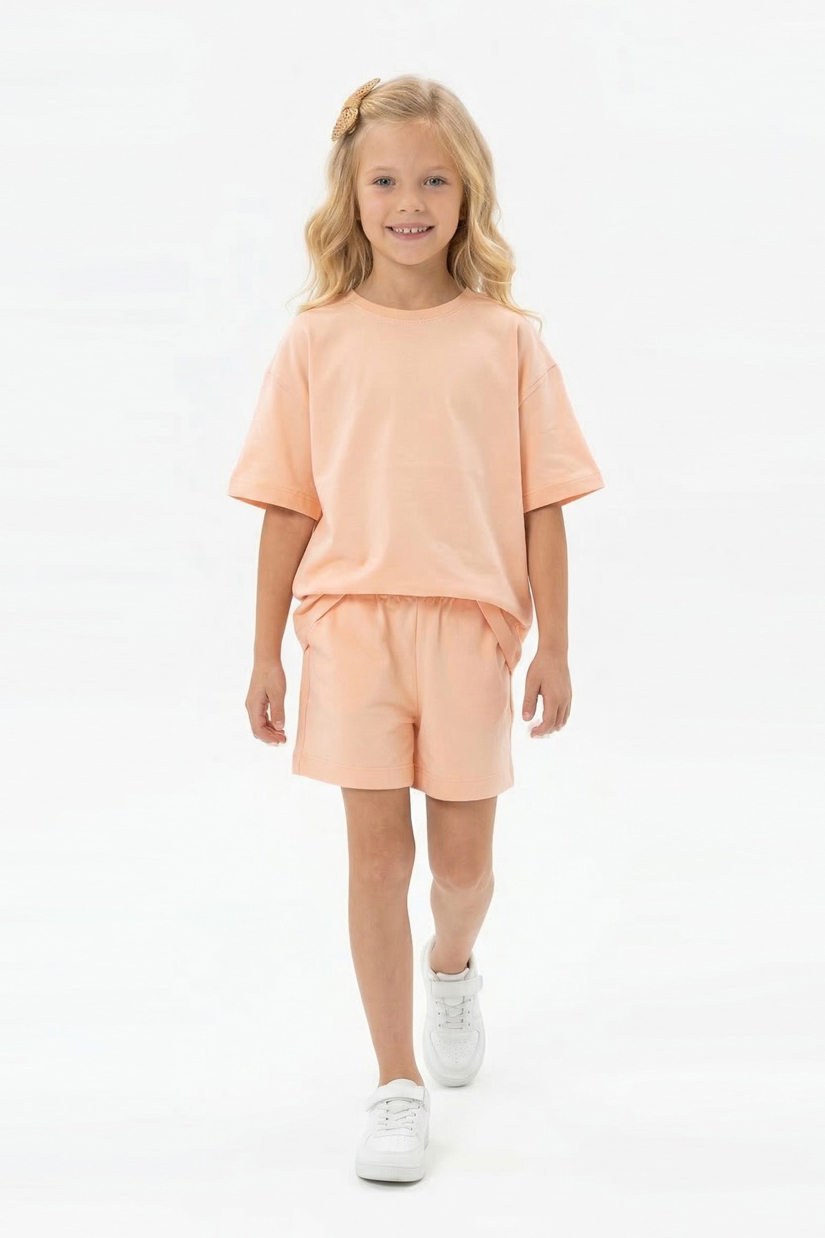 Kız Çocuk %100 Pamuk Reaktif Boyama Süprem Kumaş Kısa Kollu Şortlu Takım
