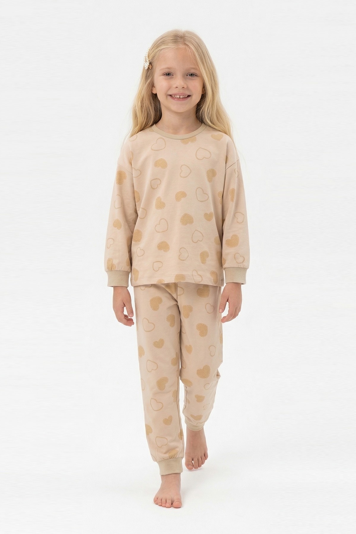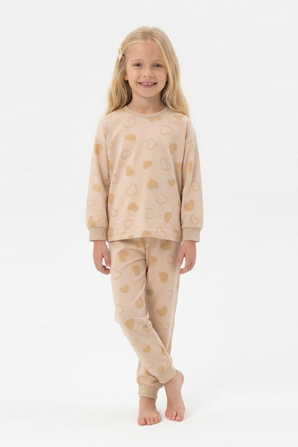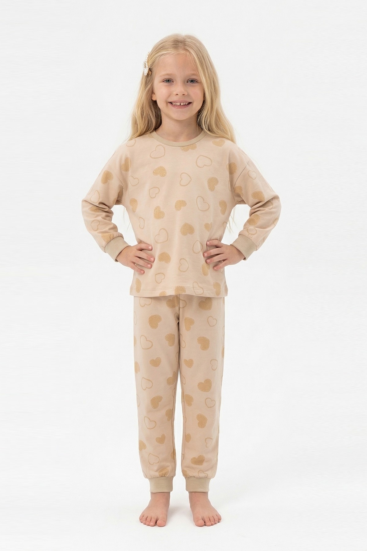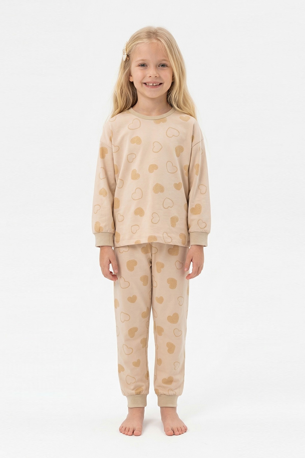 Kız Çocuk Desenli %100 Pamuk Reaktif Boyalı Süprem Kumaş Uzun Kollu Pijama Takımı