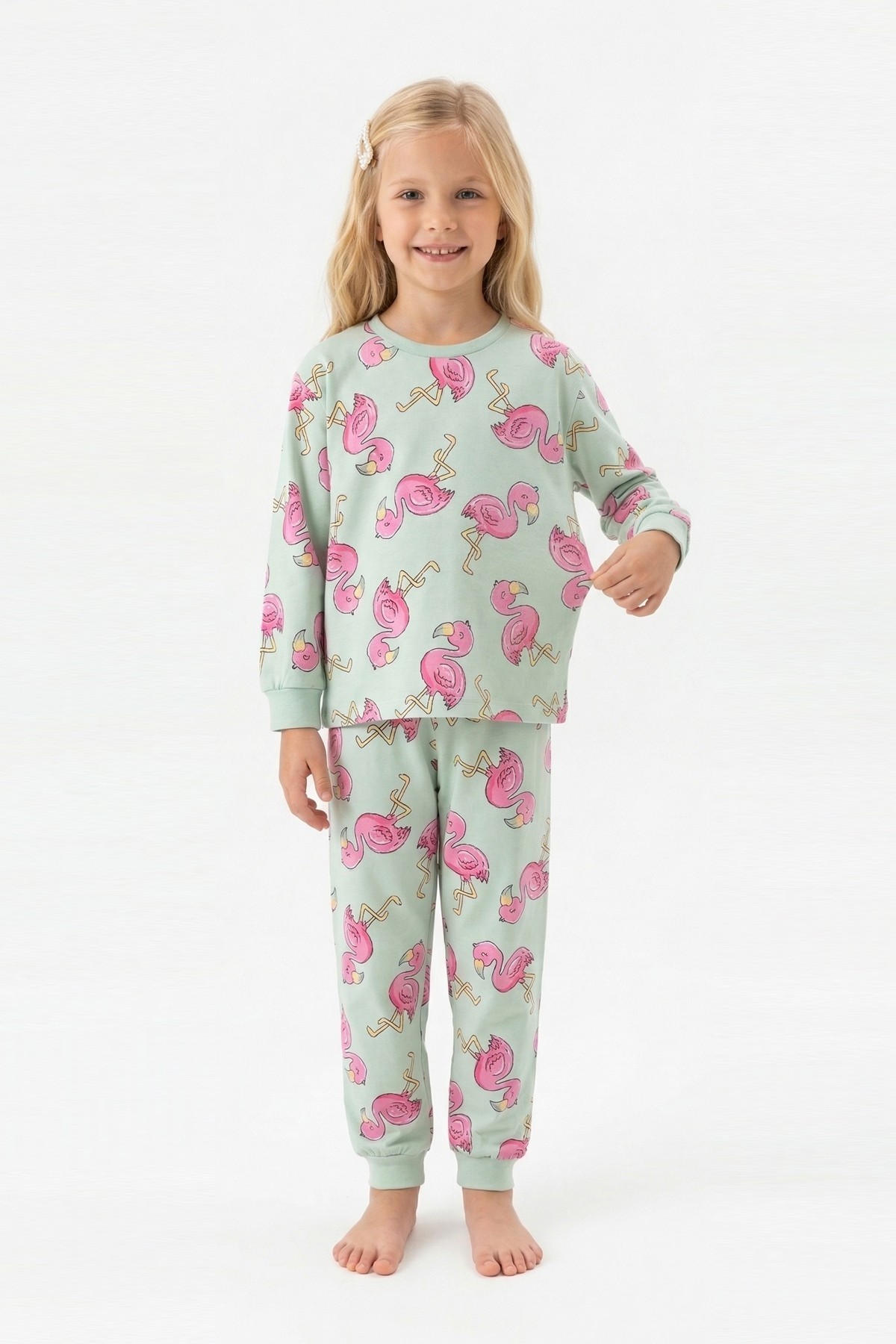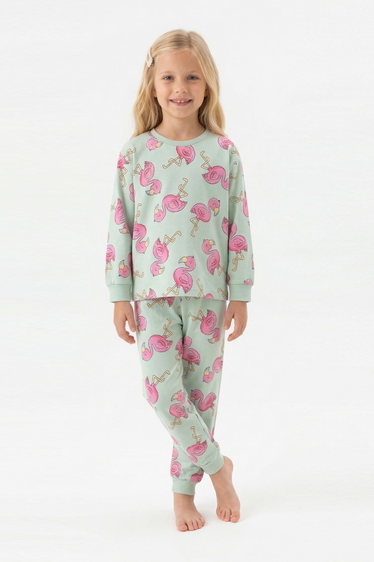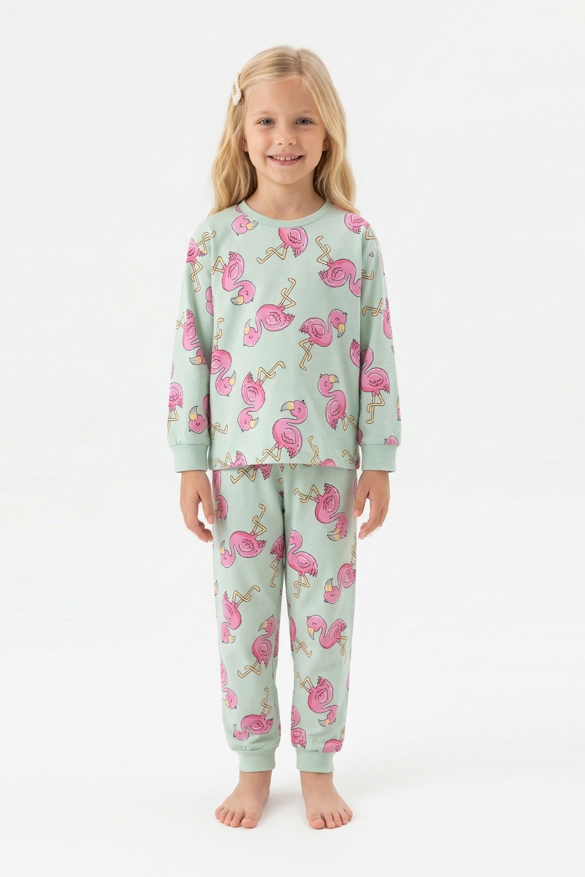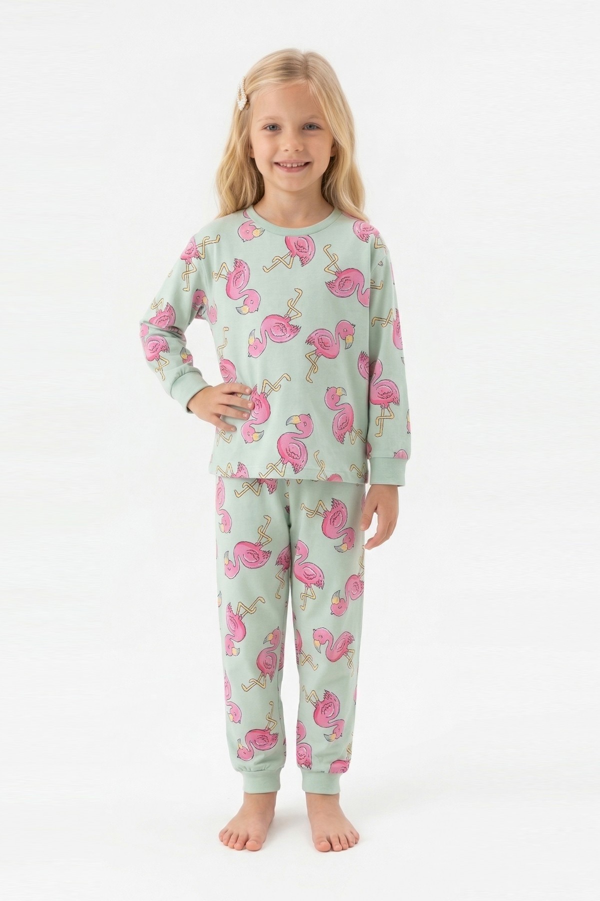 Kız Çocuk Desenli %100 Pamuk Reaktif Boyalı Süprem Kumaş Uzun Kollu Pijama Takımı