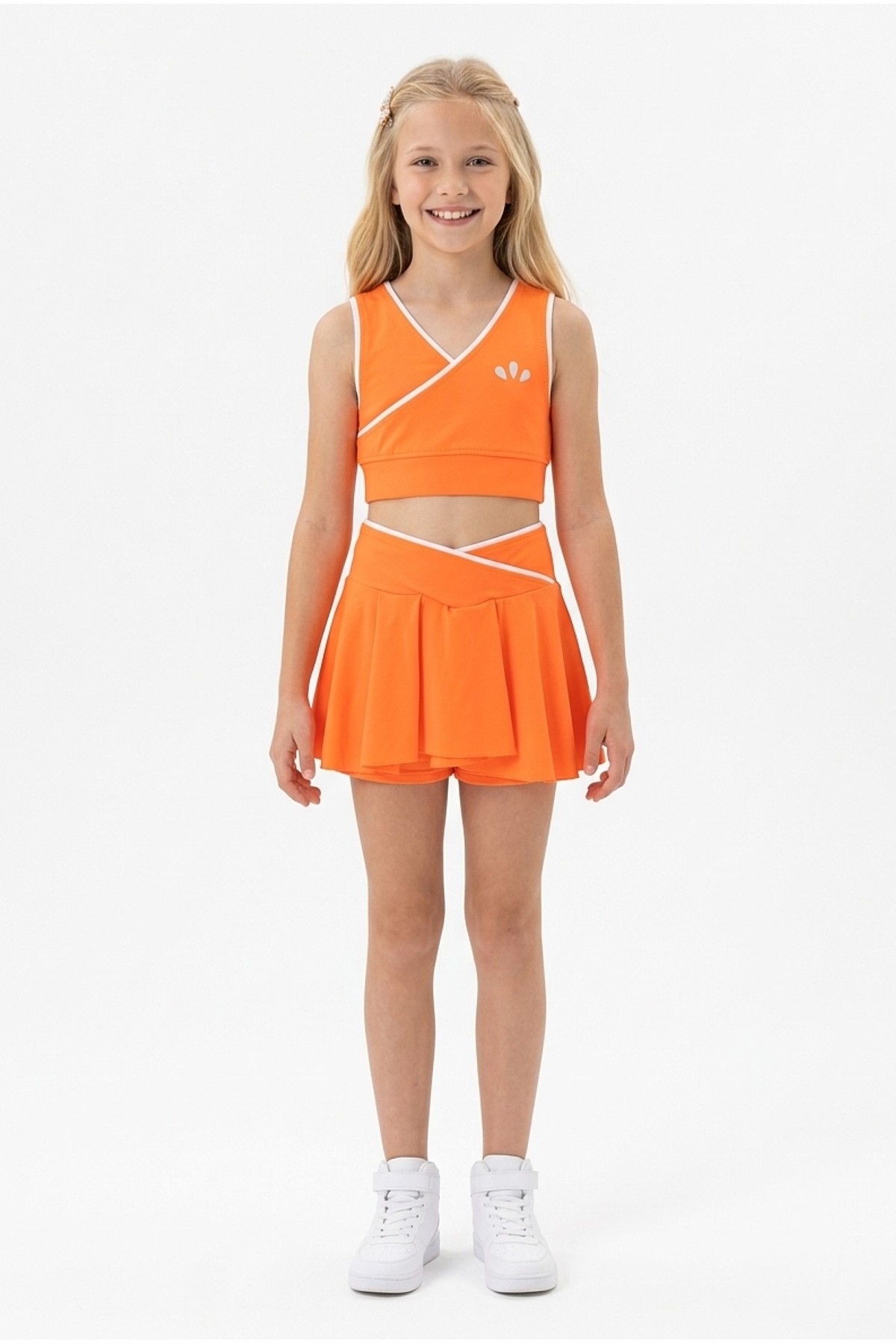 Kız Çocuk Polyester + Elastan V Yaka Kruvaze Spor Crop Pileli Şort Etek Sporcu Takım
