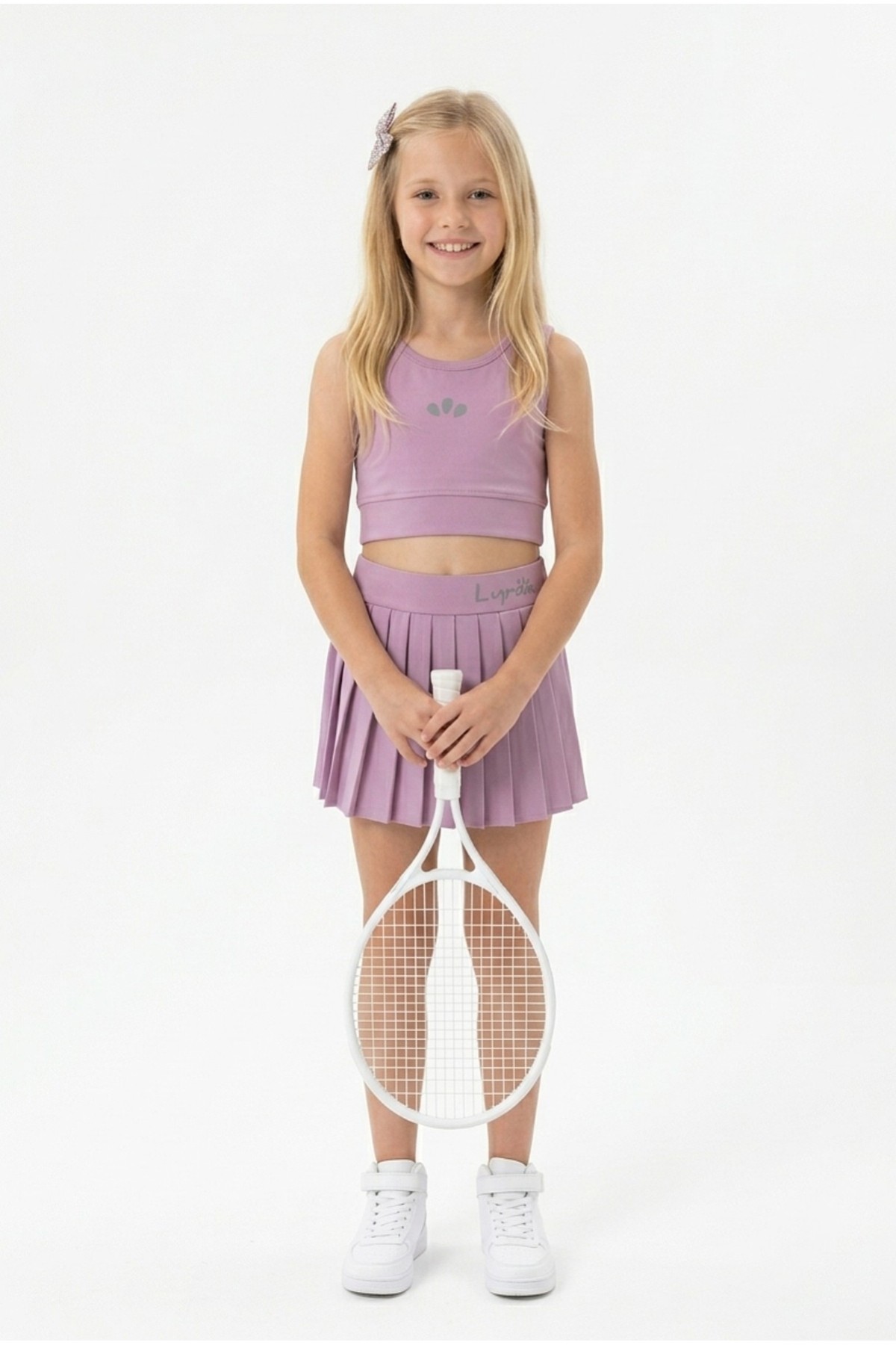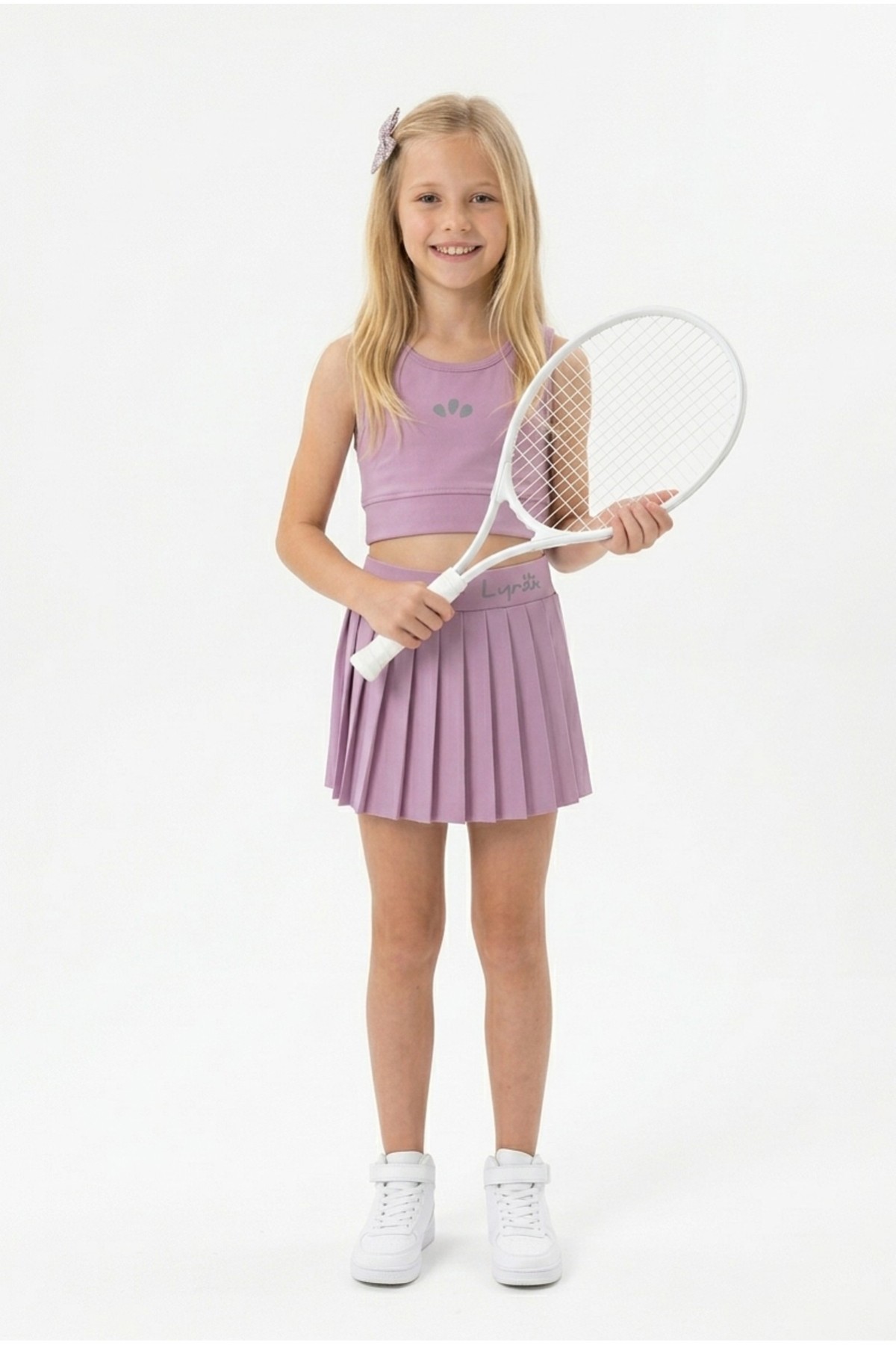 Kız Çocuk Polyester + Elastan Spor Crop Atlet ve Pileli Şort Etek Sporcu Takım