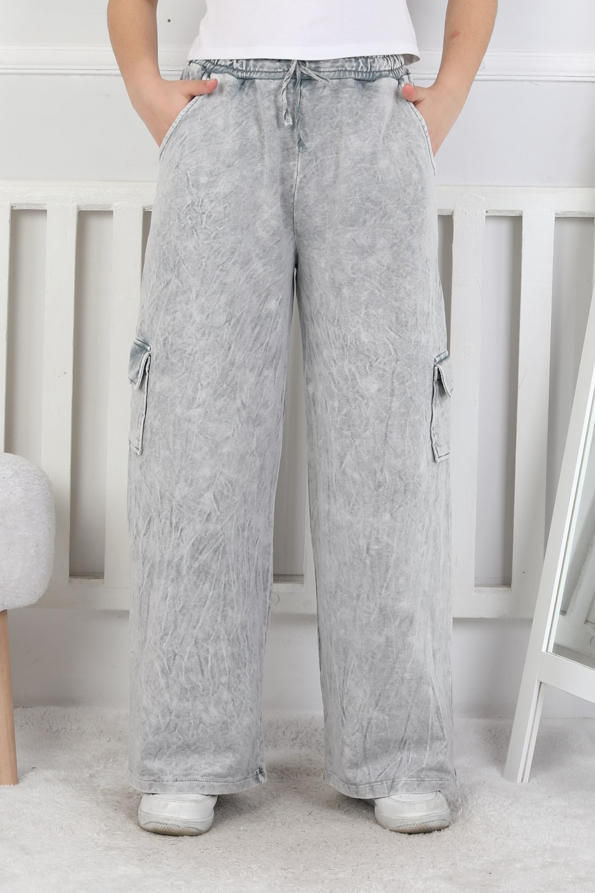 İki İplik Yıkamalı Kargo Çepli Kız Çocuk Eşofman Altı