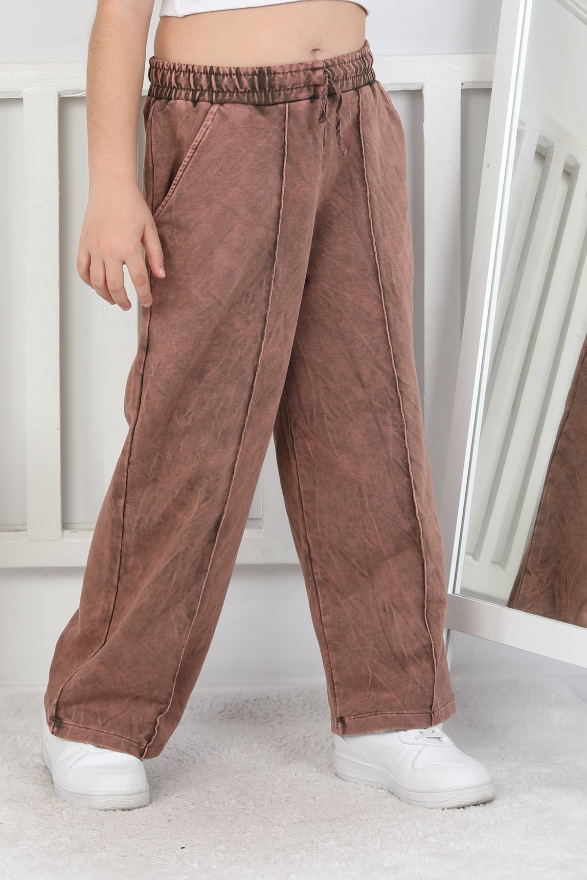 İki İplik Önü Çizgi Detaylı Yıkamalı Kız Çocuk Eşofman Altı