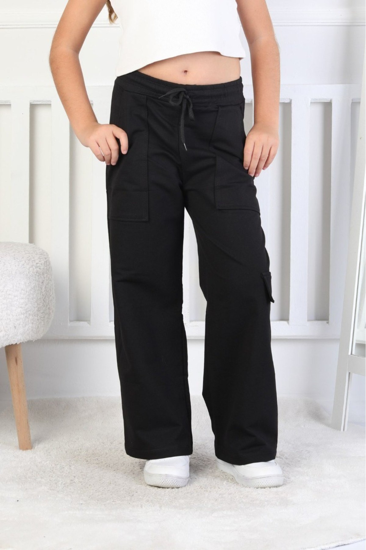 İki İplik Tek Paçası Kargo Çepli Kız Çocuk Eşofman Altı