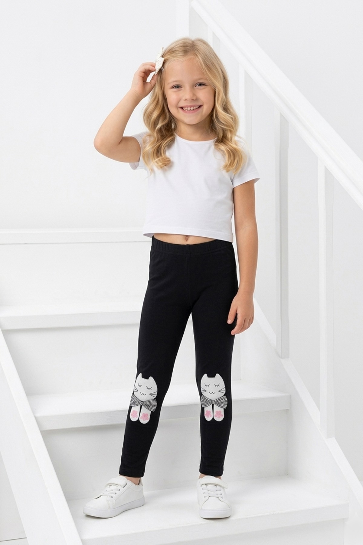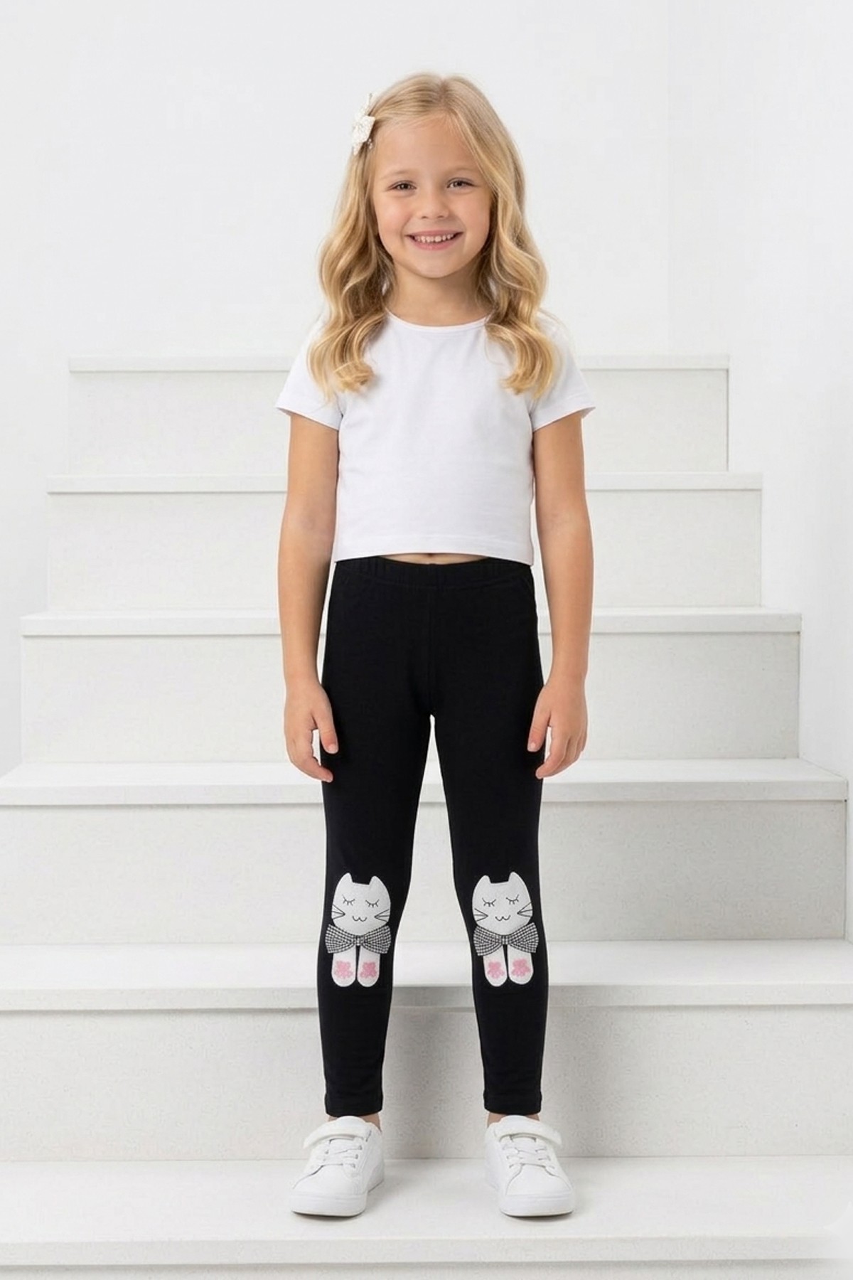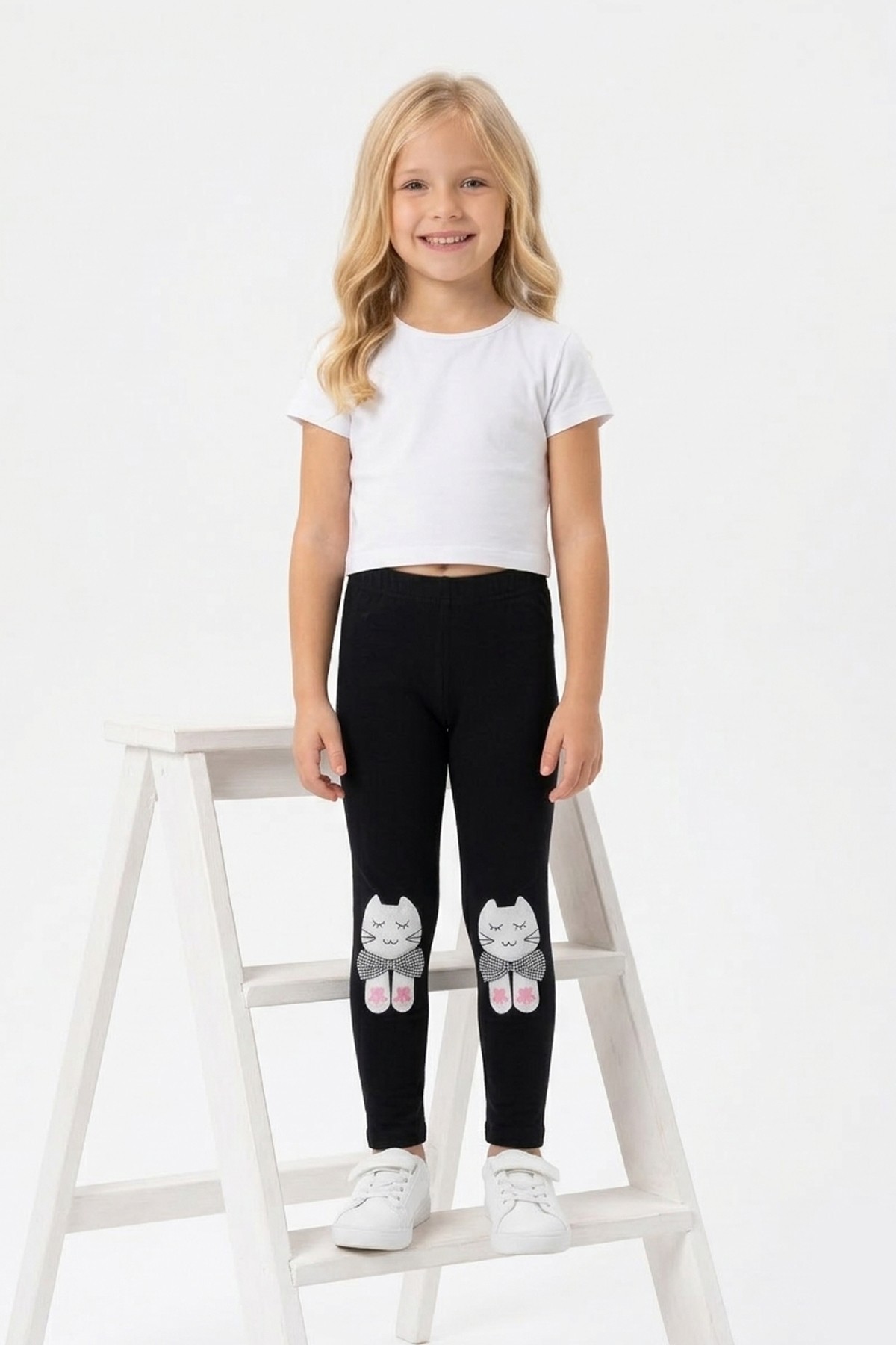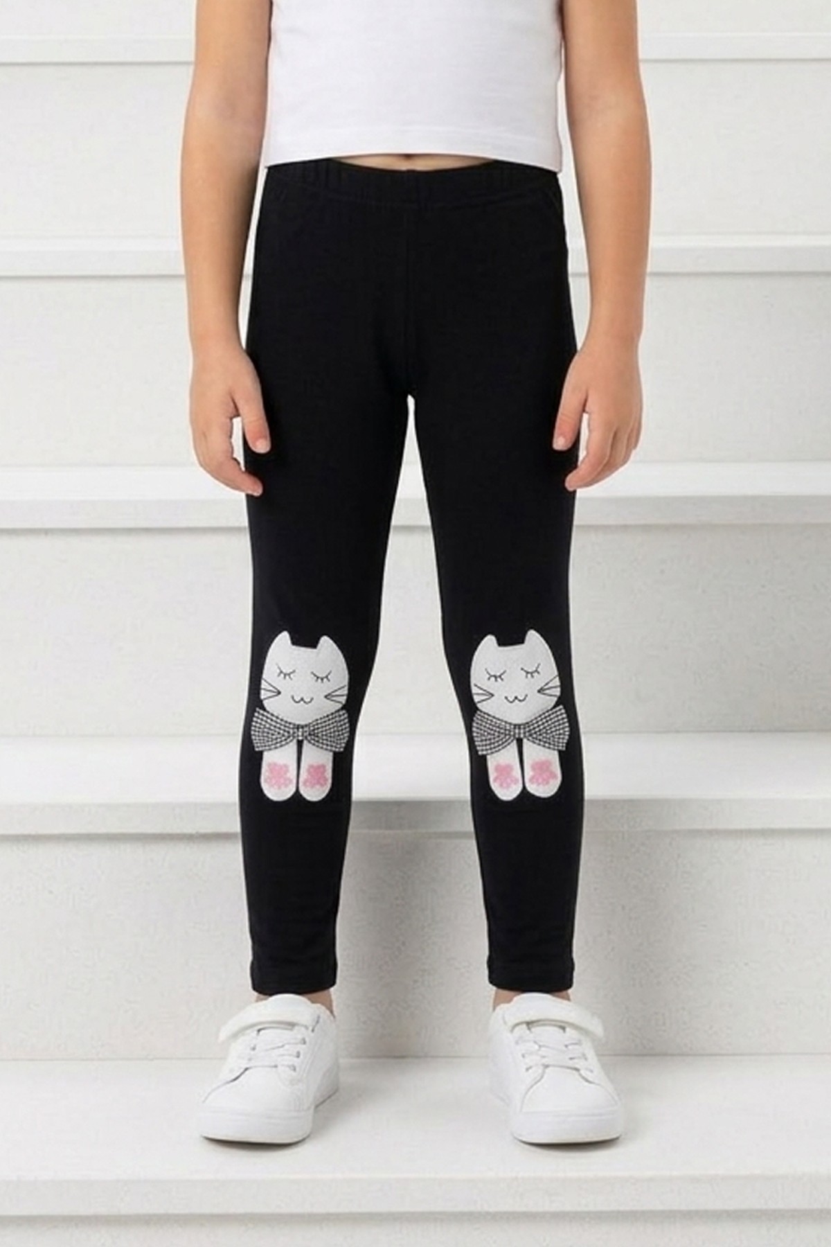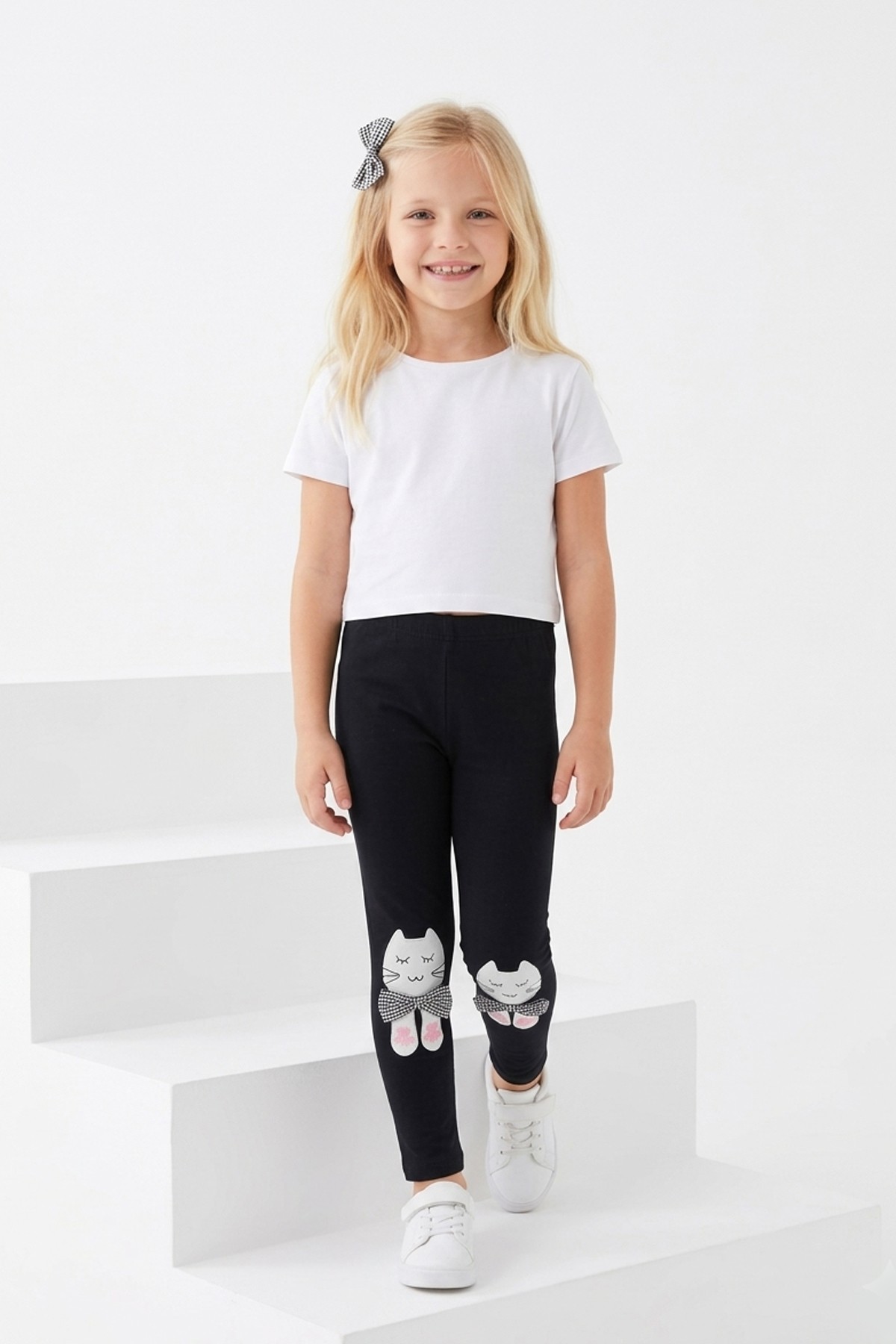 Kız Çocuk Kedi Nakışlı Ve Fiyonk Detaylı Esnek Pamuklu Tayt