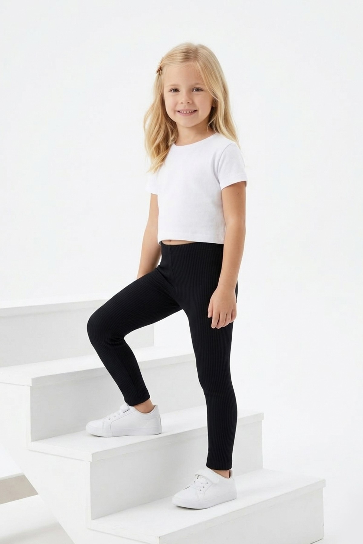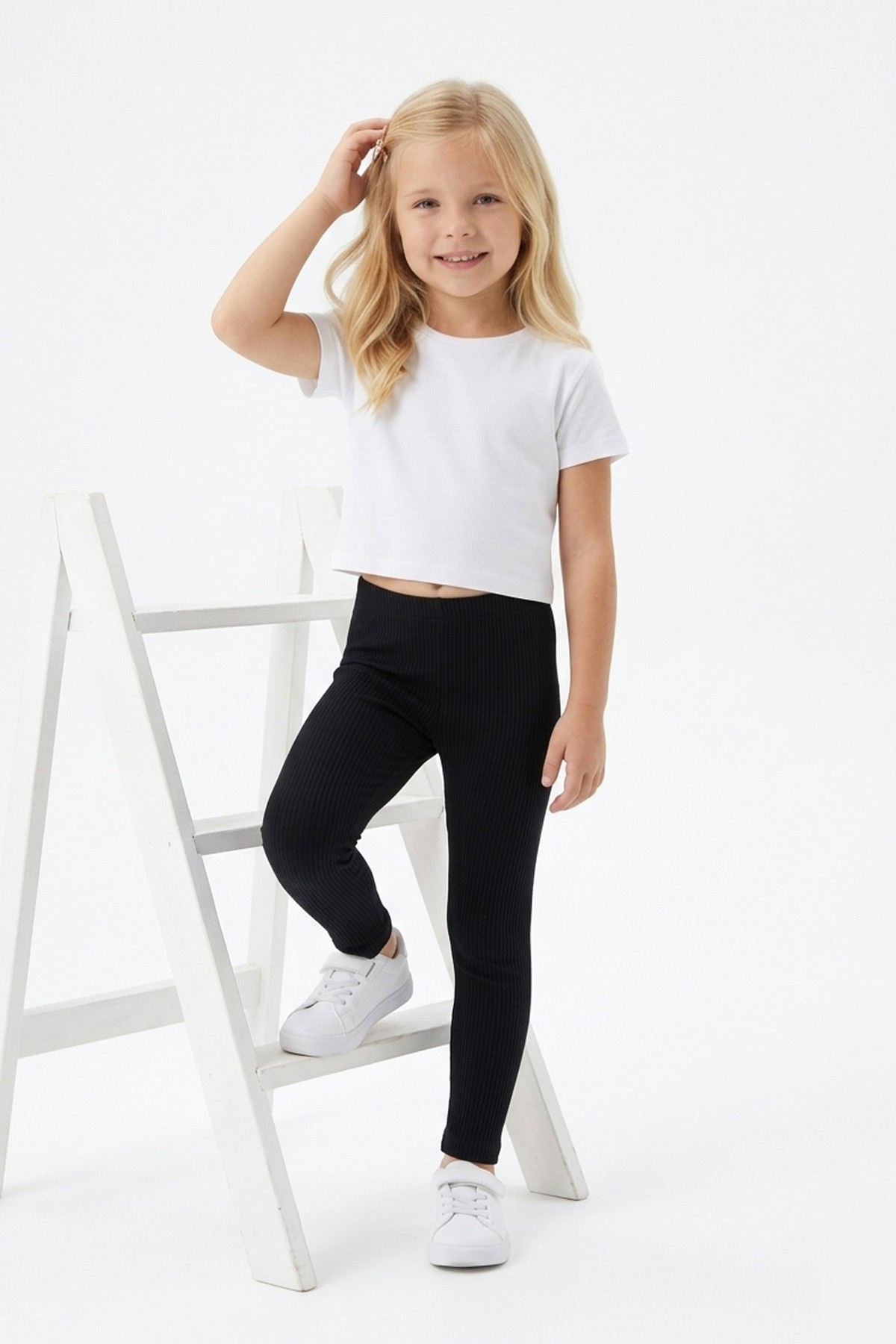 Kız Çocuk Fitilli Kaşkorse Esnek ve Rahat Günlük Kullanım Beli Lastikli Tayt