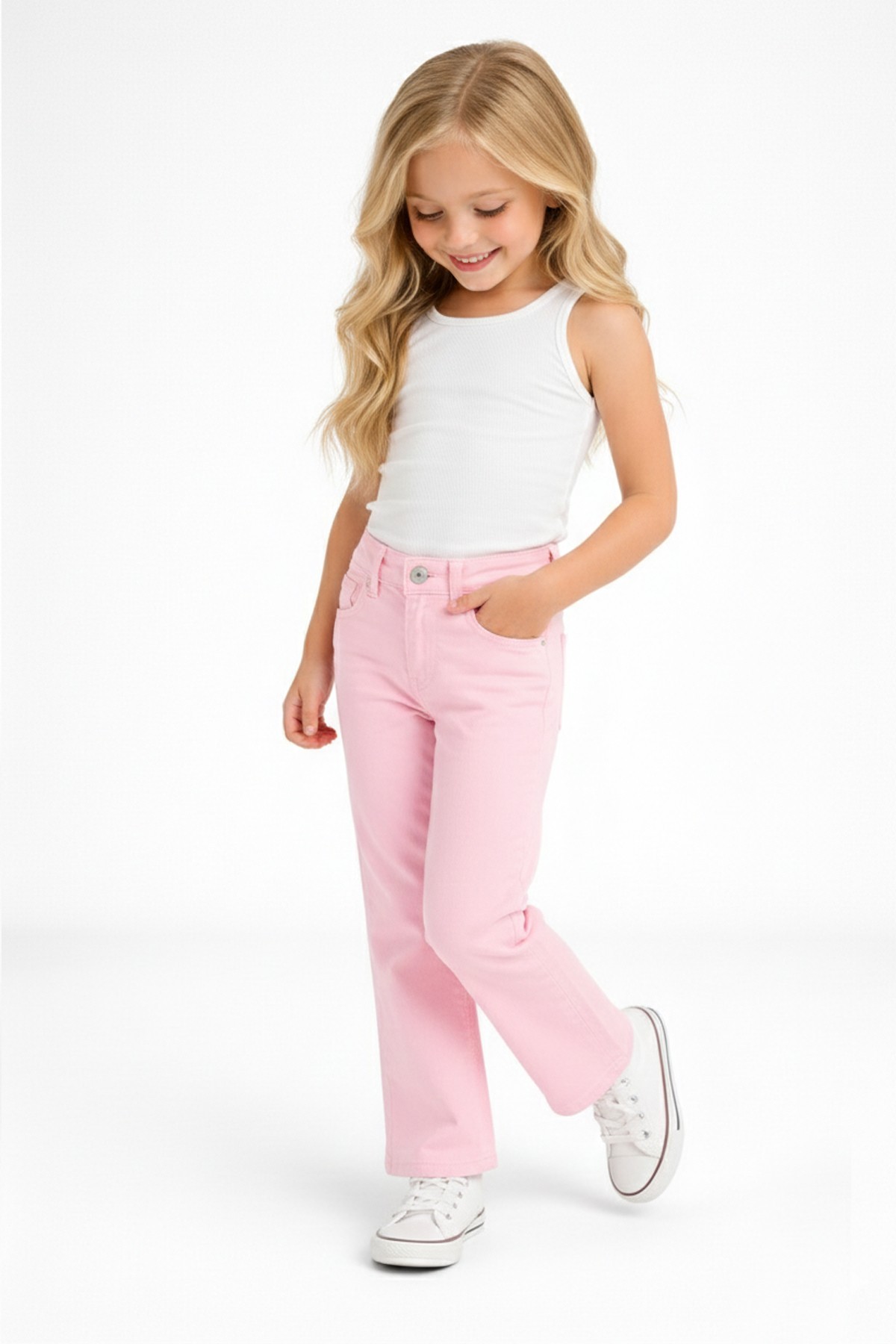 Kız Çocuk İspanyol Paça Gabardin Kumaş Esnek Kot Pantolon