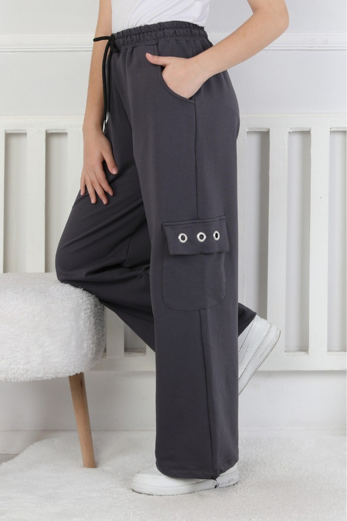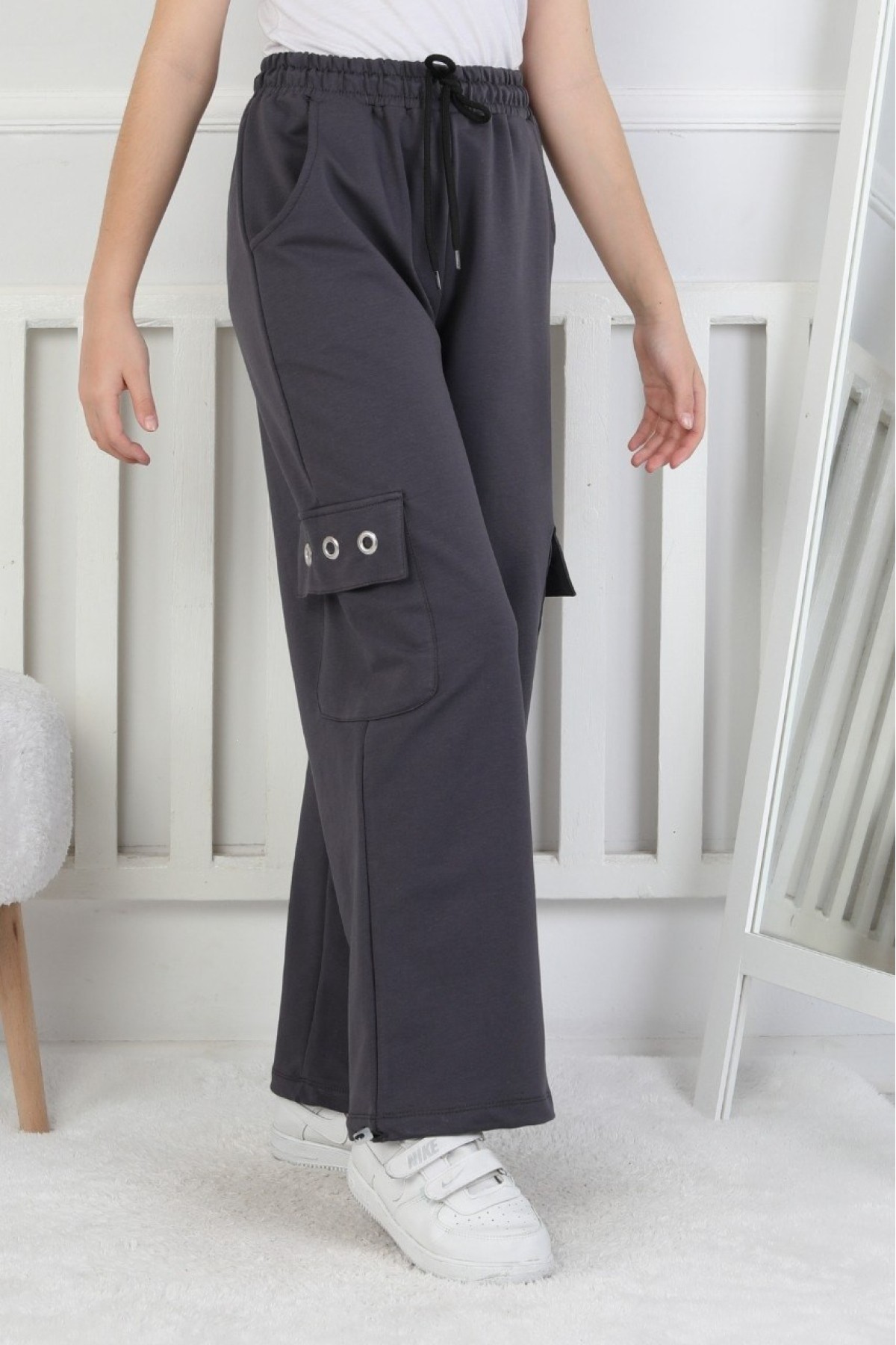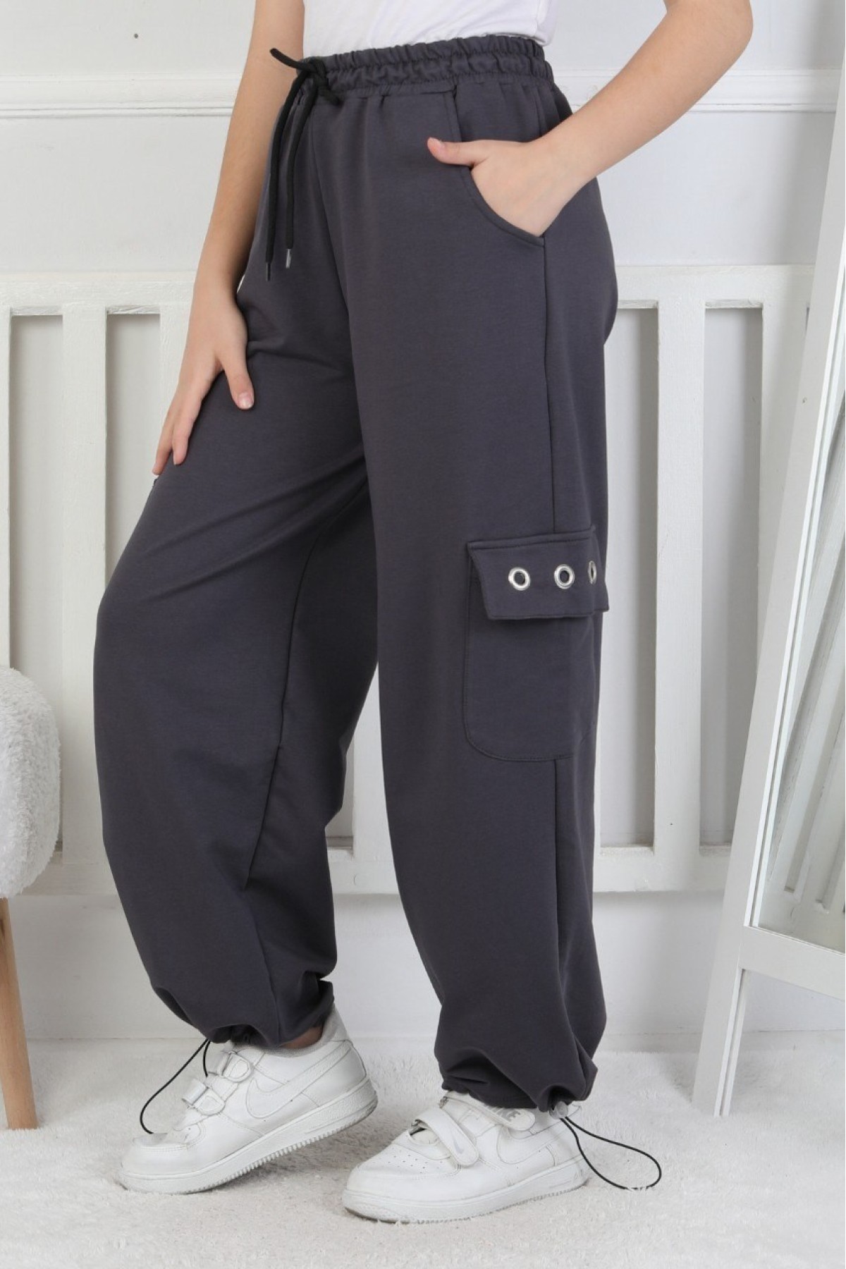İki İplik Baskılı Kargo Çepli Kız Çocuk Eşofman Altı