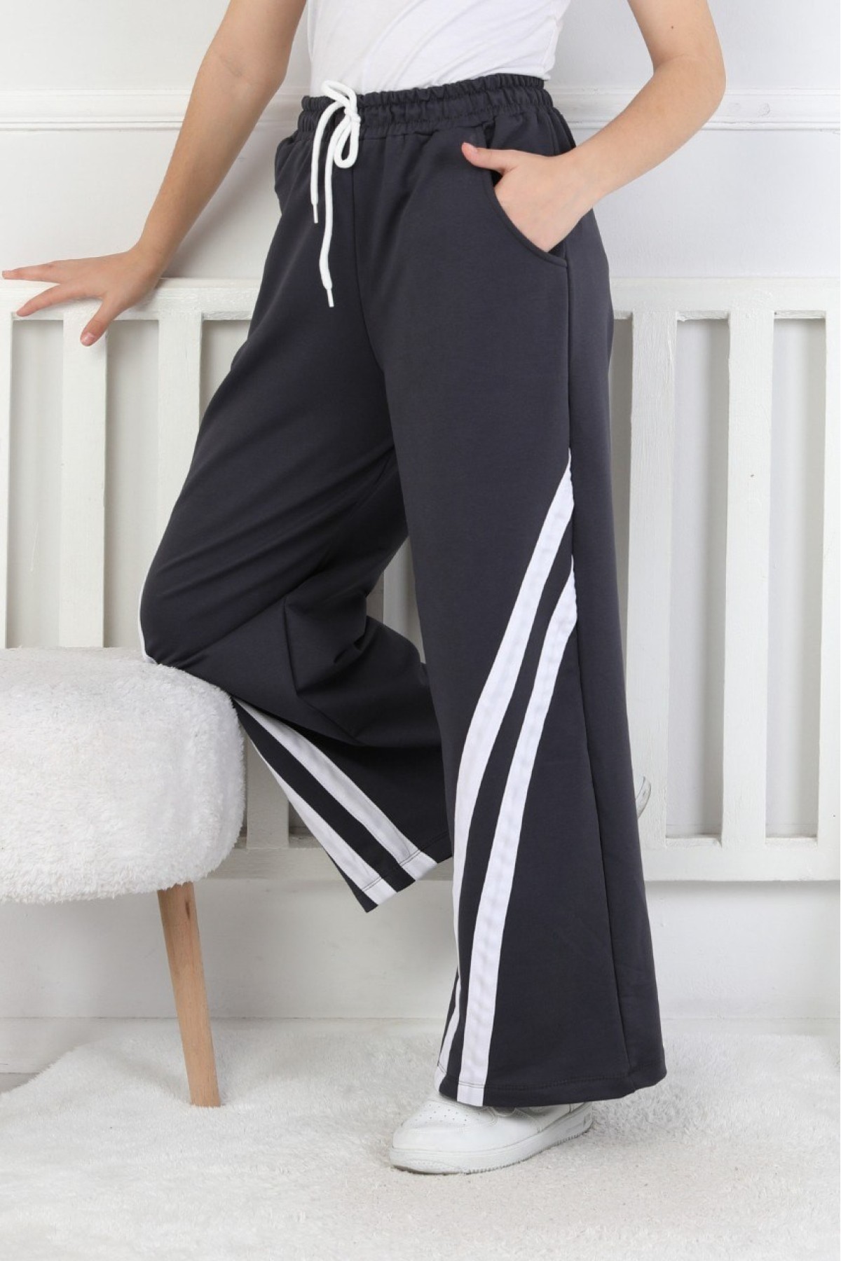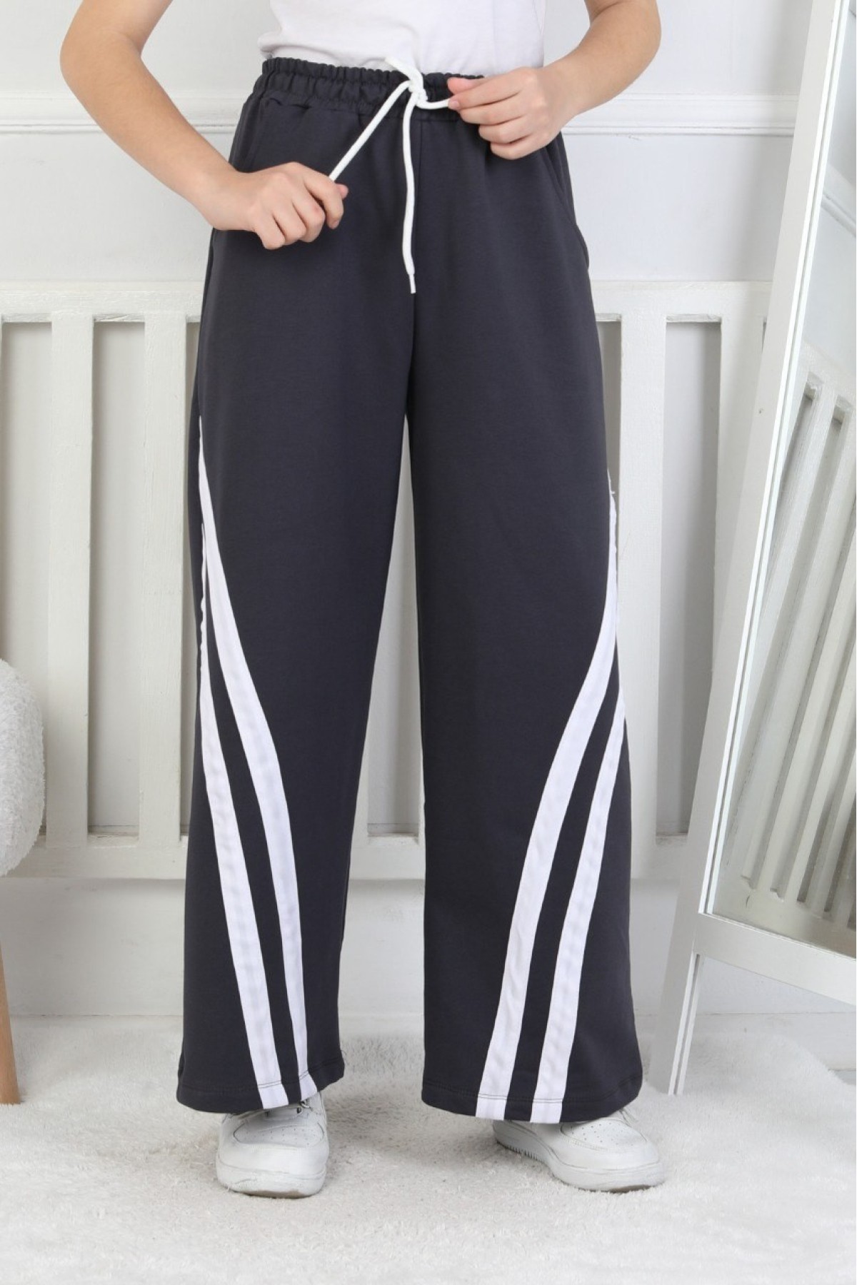 İki İplik Çapraz Çizgili Kız Çocuk Eşofman Altı