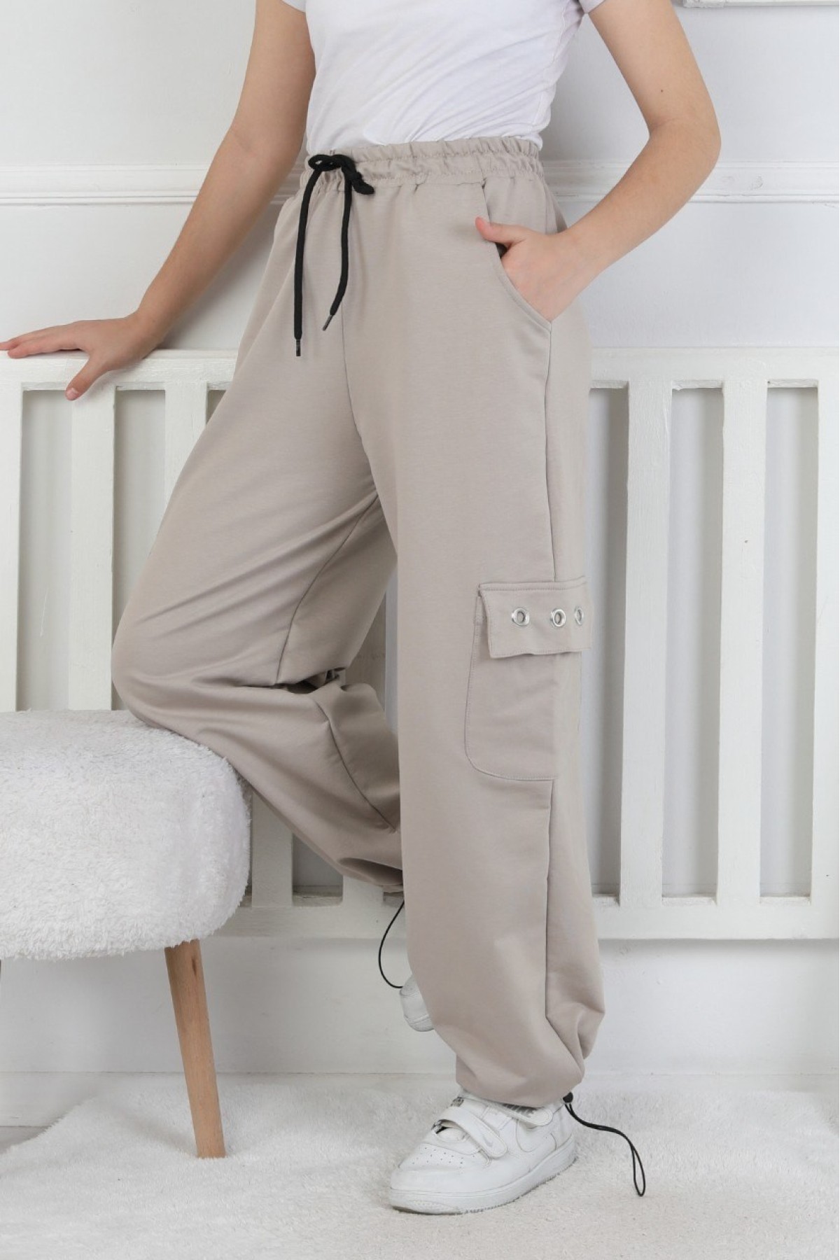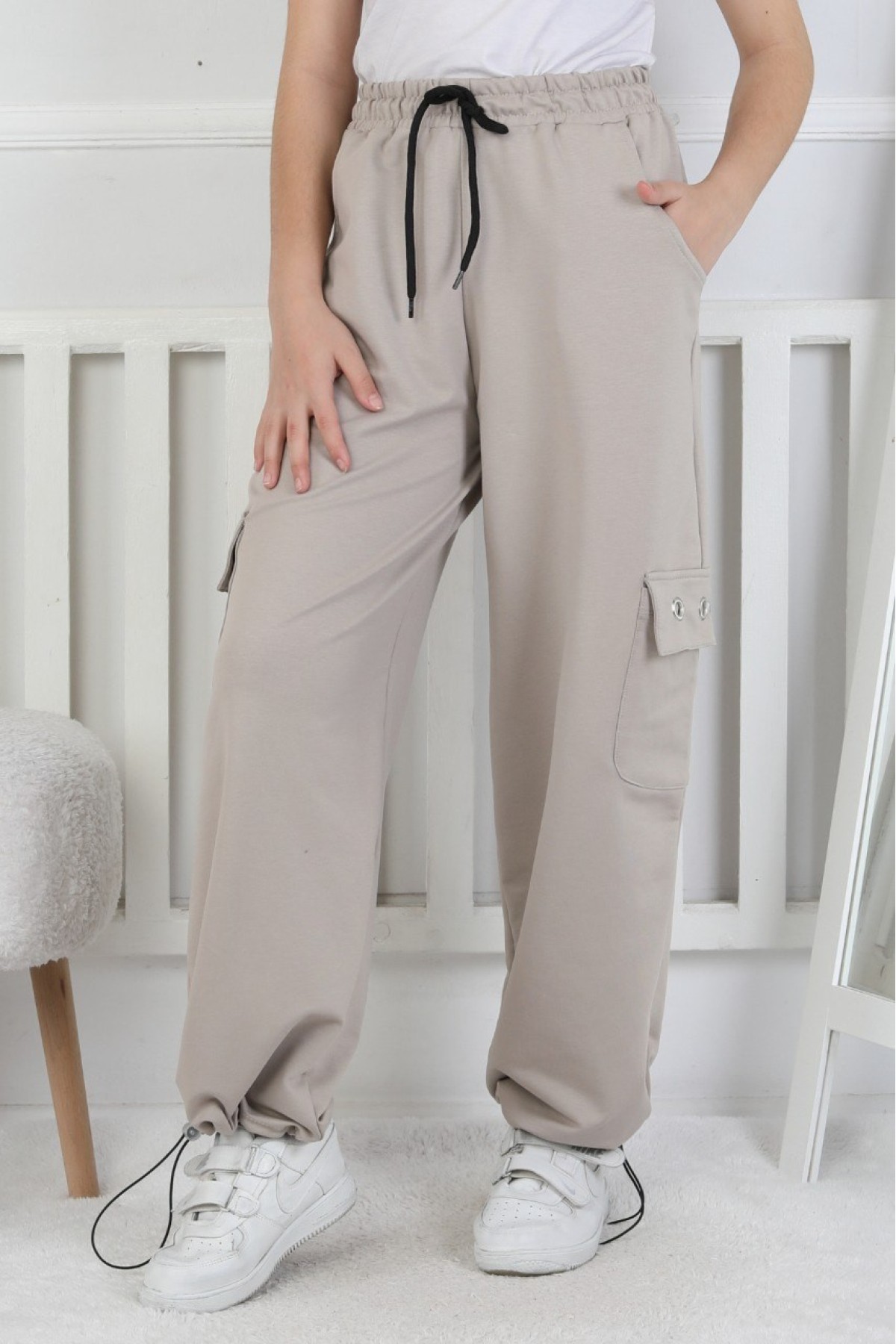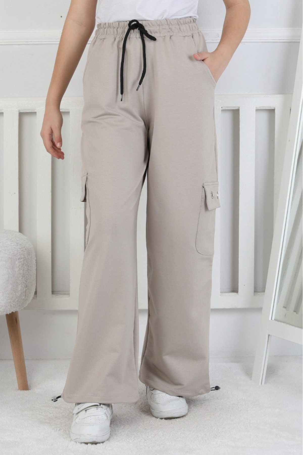 İki İplik Baskılı Kargo Çepli Kız Çocuk Eşofman Altı