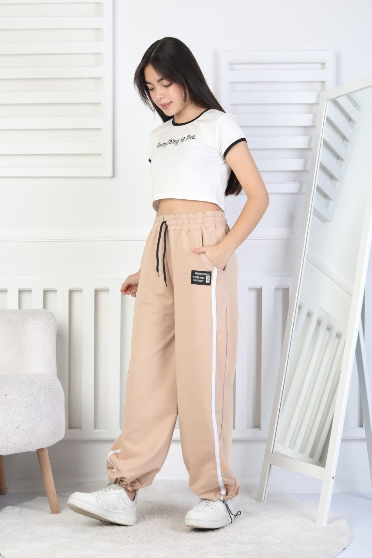 İki İplik Çizgili Kız Çocuk Eşofman Altı